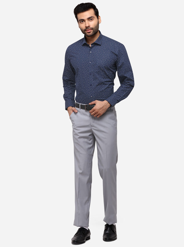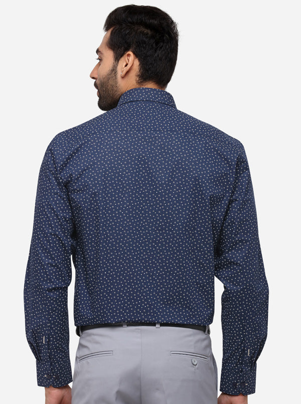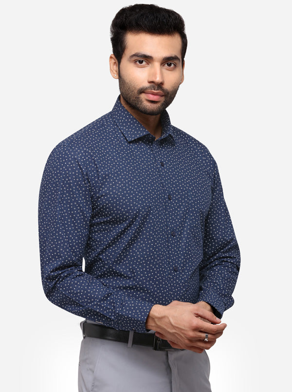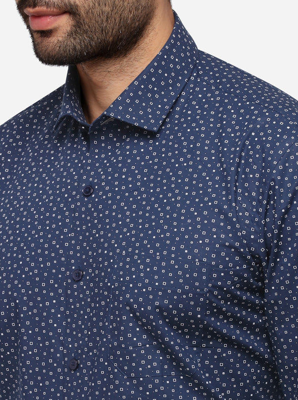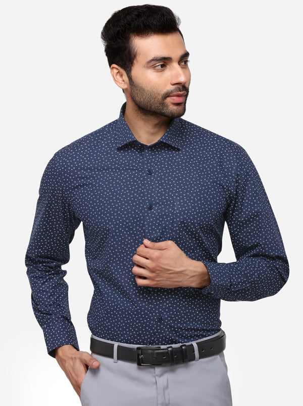 Navy Blue Printed Regular Fit Formal Shirt | Greenfibre