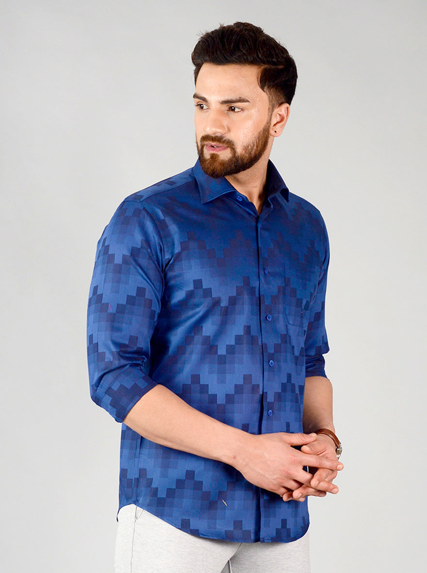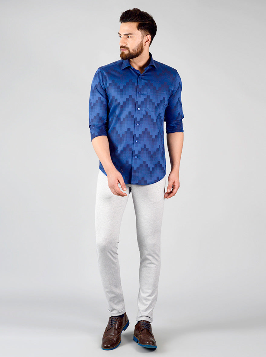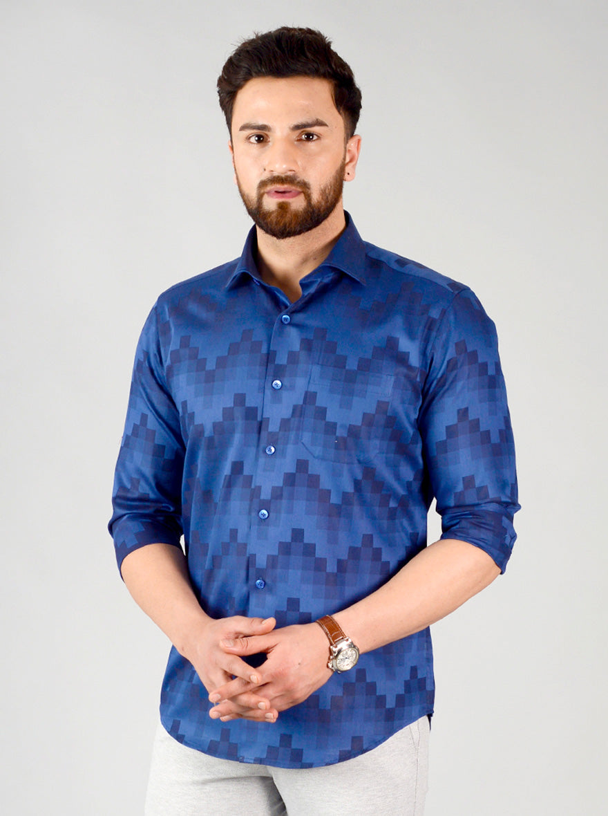 Details: This blue evening wear shirt by Metal will raise your style stakes instantly. Made from cotton fabric, this self design shirt features chest pocket, shirt collar and front buttons fastening. This slim fit shirt is a must-buy for fashion conscious men.