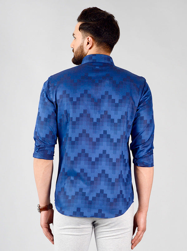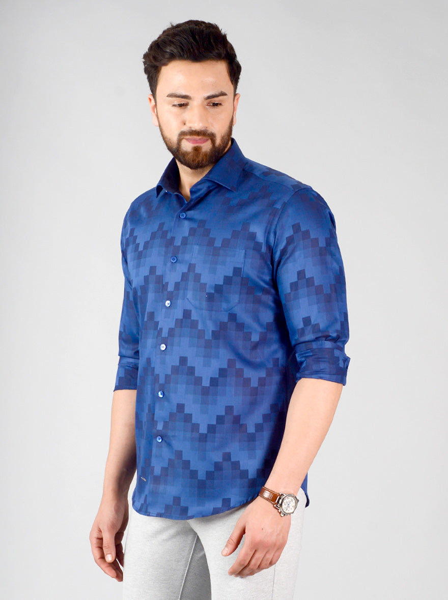 Navy Blue Self Design Slim Fit Evening Wear Shirt | Metal
