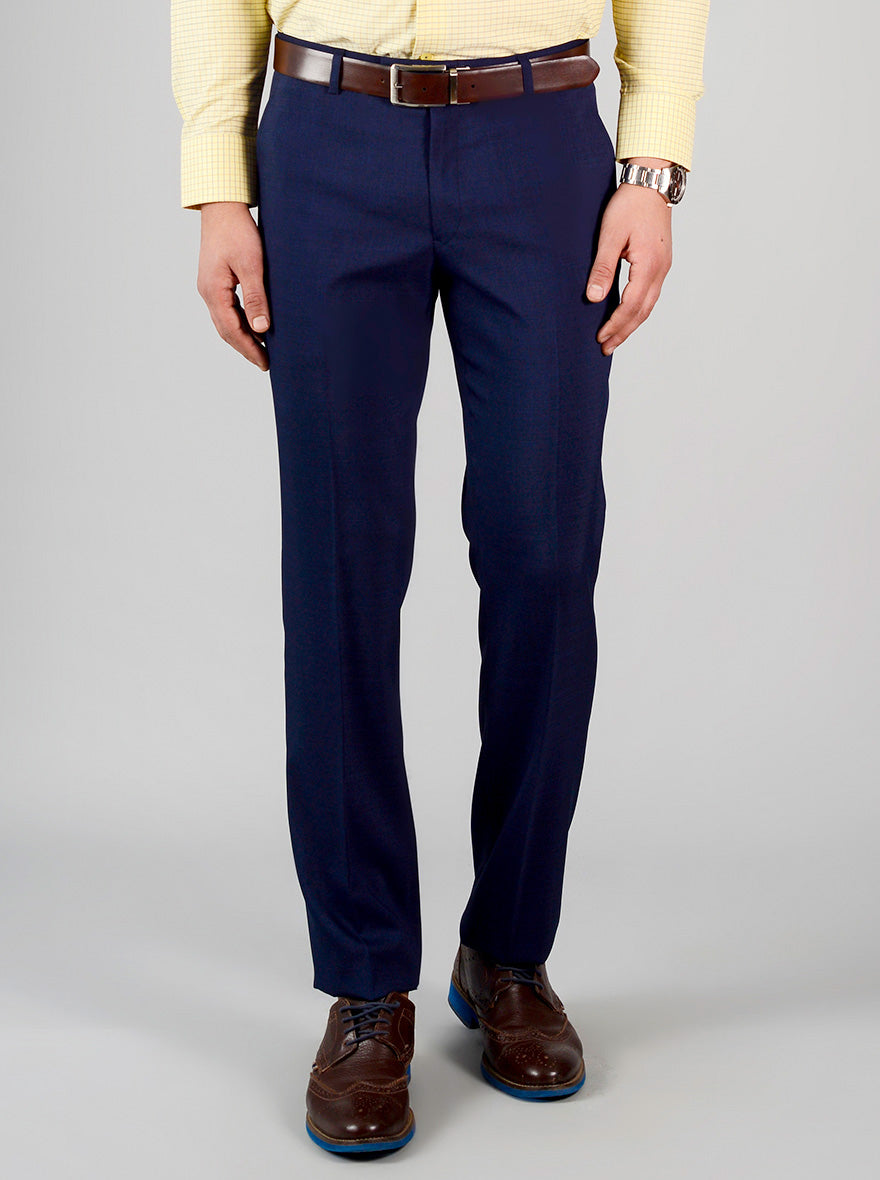 Navy Blue Self Textured Slim Fit Formal Trouser | JadeBlue