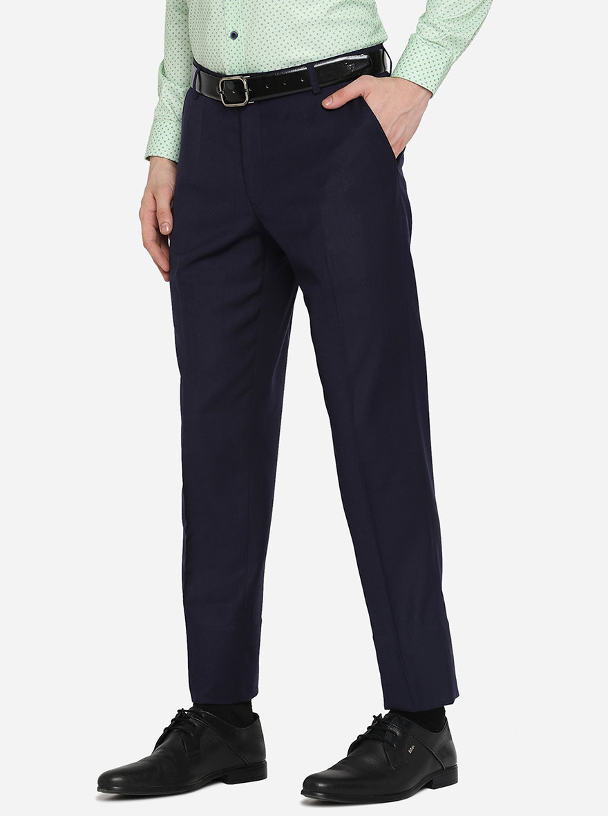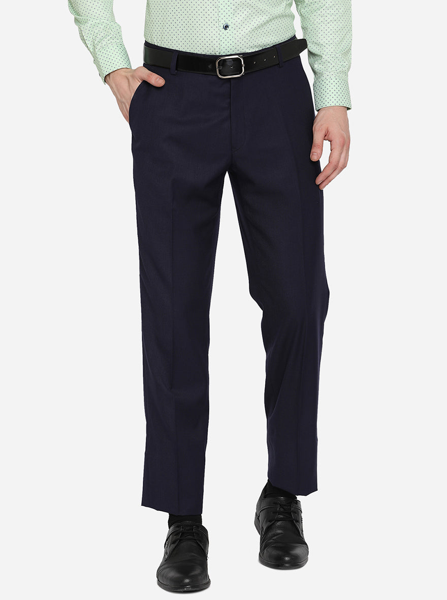 Navy Blue Solid Classic Fit Formal Trouser | JadeBlue