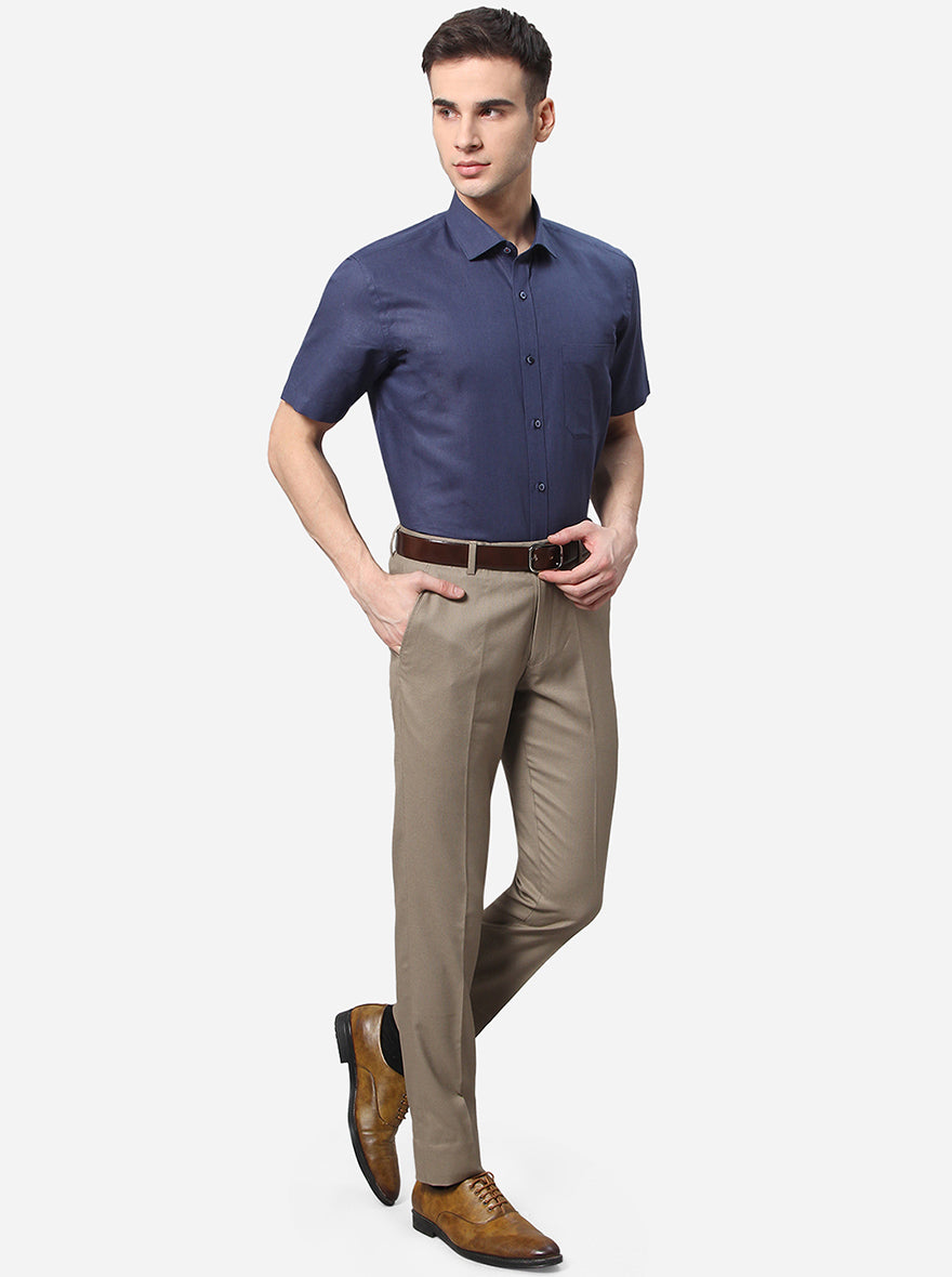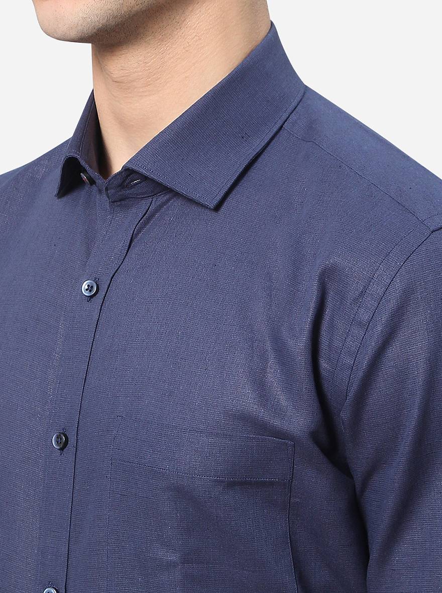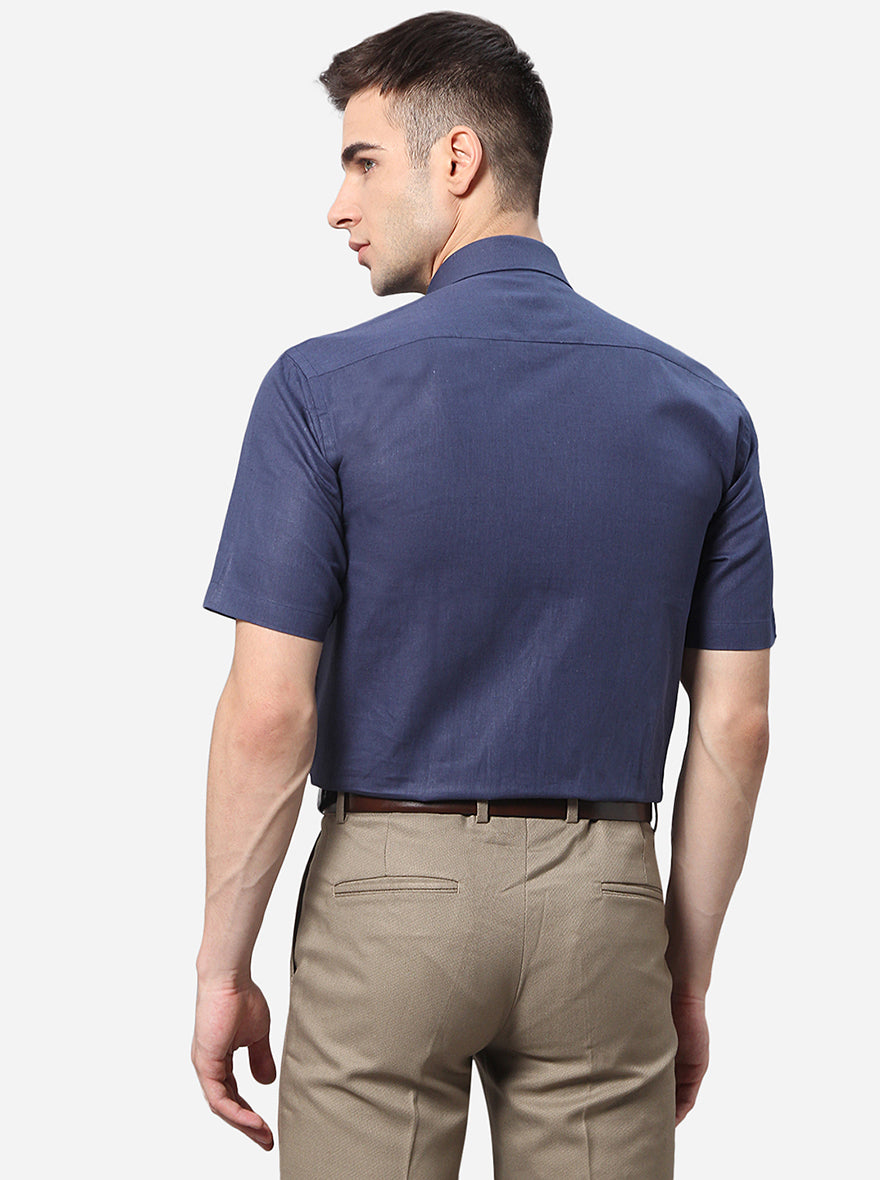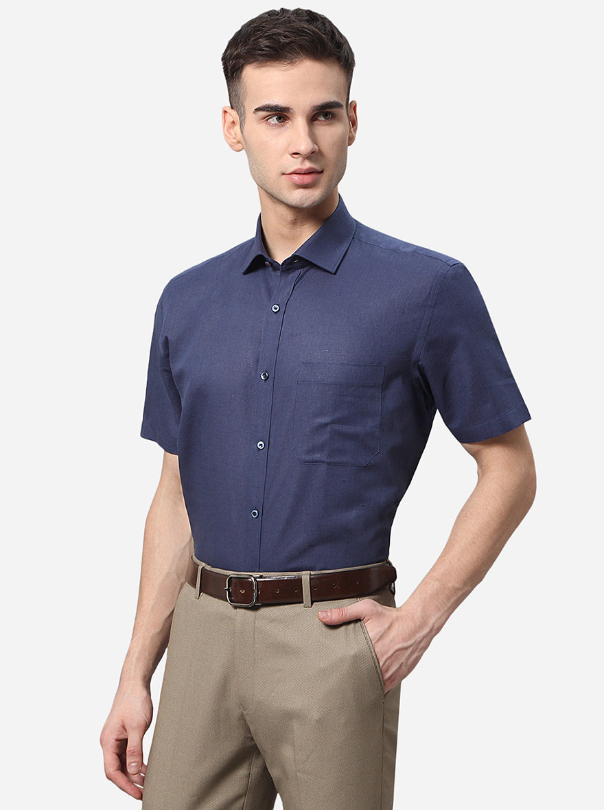 Navy Blue Solid Regular Fit Formal Shirt | Greenfibre