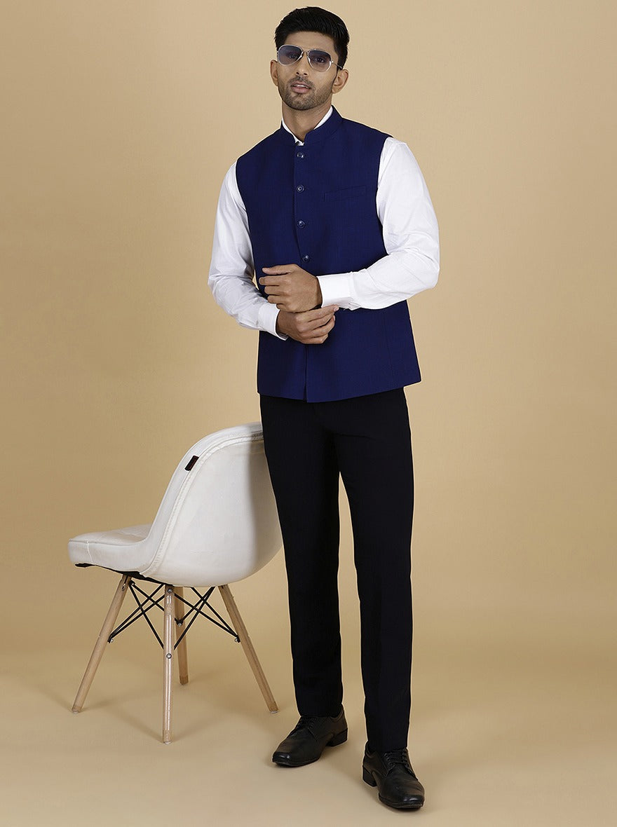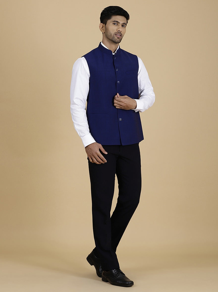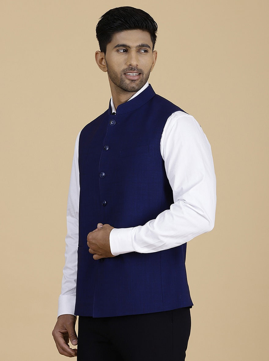 Navy Blue Solid Regular Fit Modi Jacket | JadeBlue