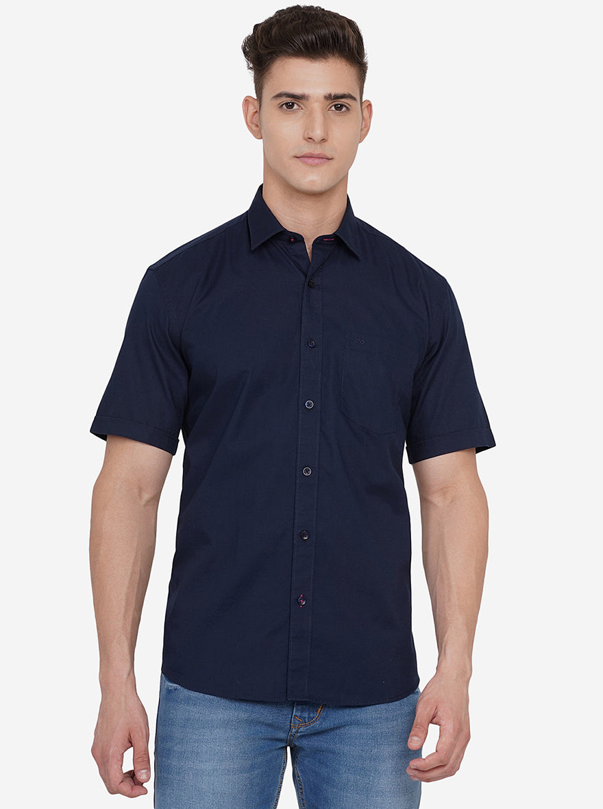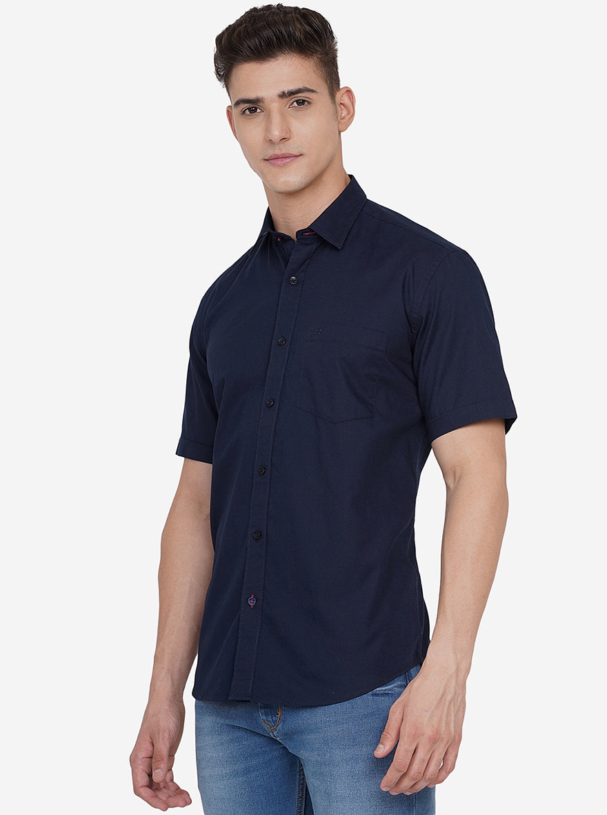 Navy Blue Solid Slim Fit Casual Shirt | JadeBlue