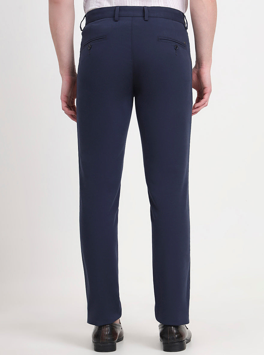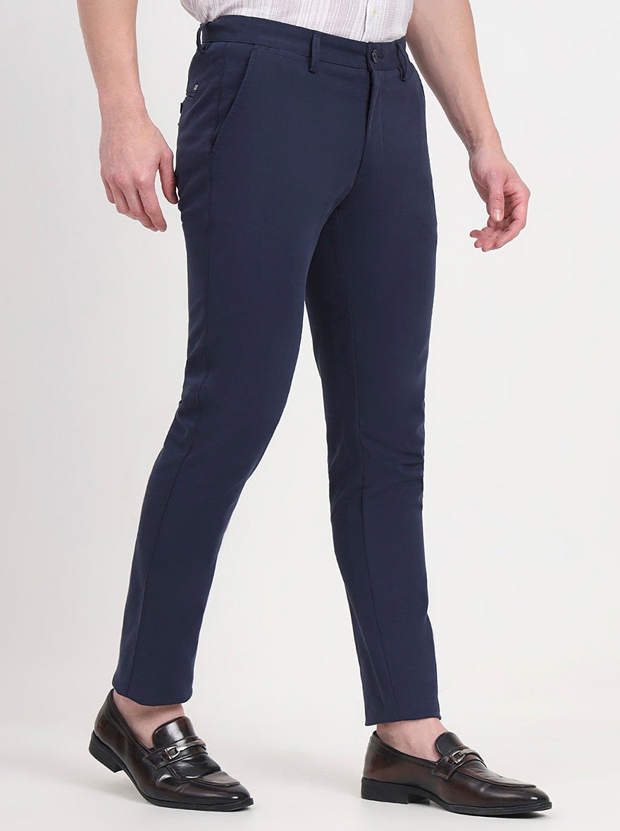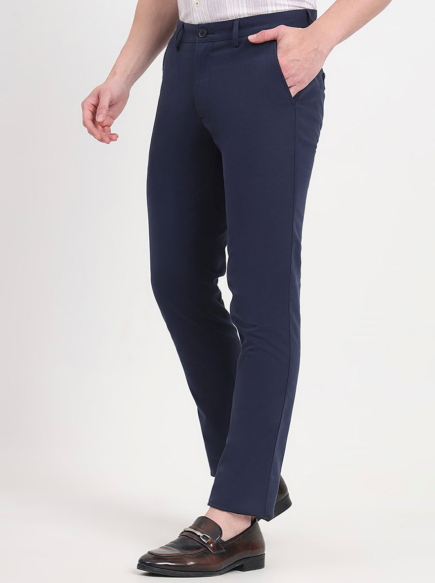 Navy Blue Solid Slim Fit Casual Trouser | JadeBlue