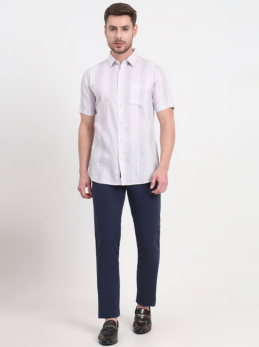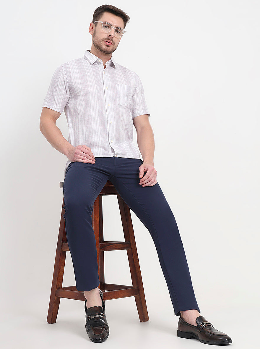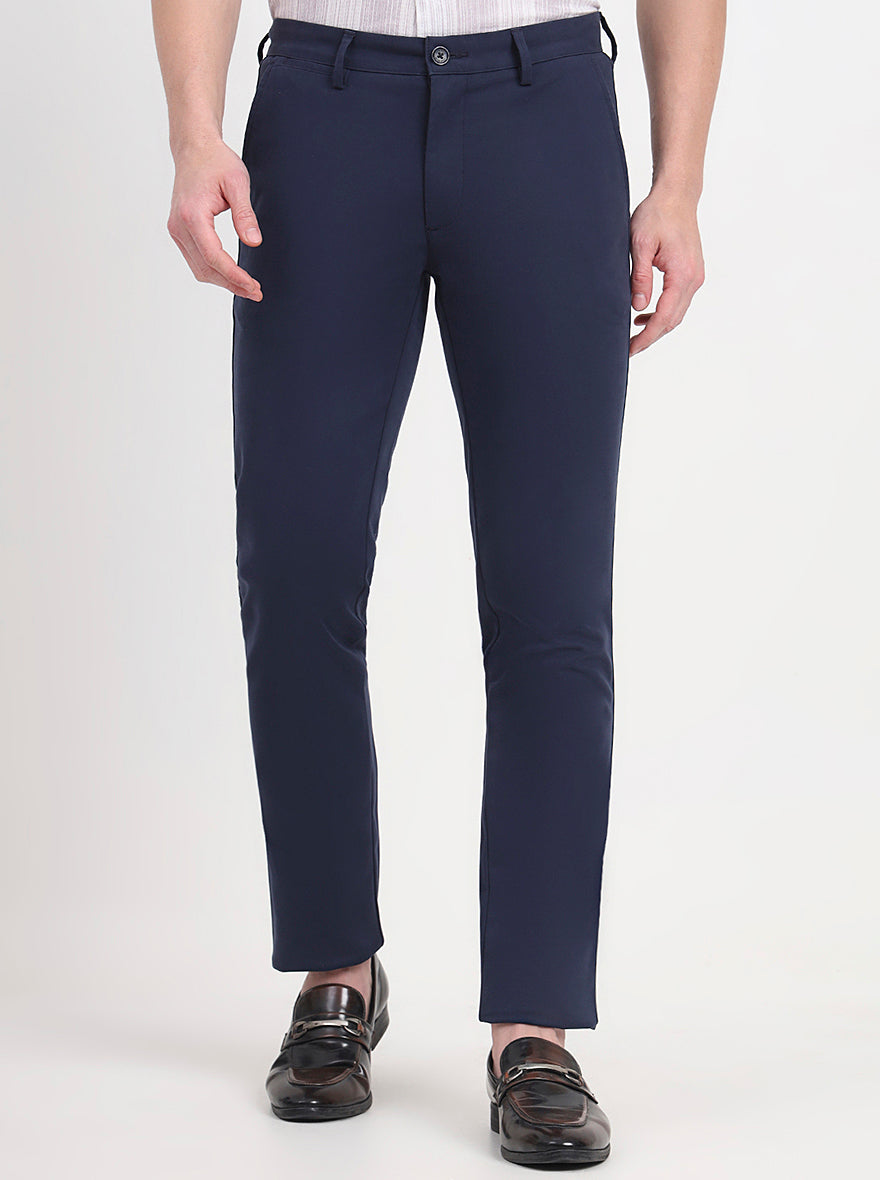 Navy Blue Solid Slim Fit Casual Trouser | JadeBlue