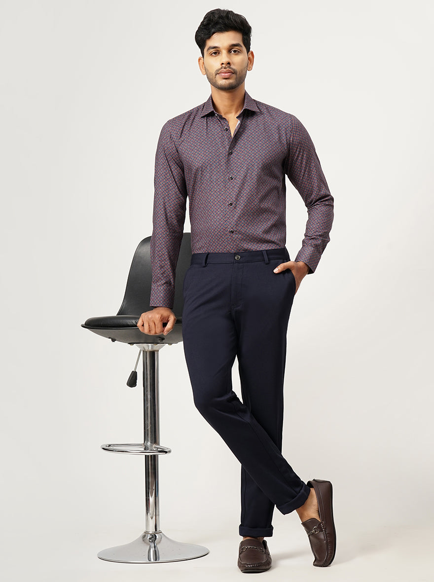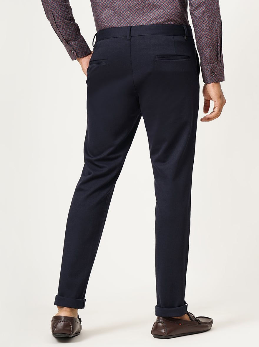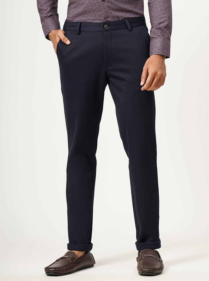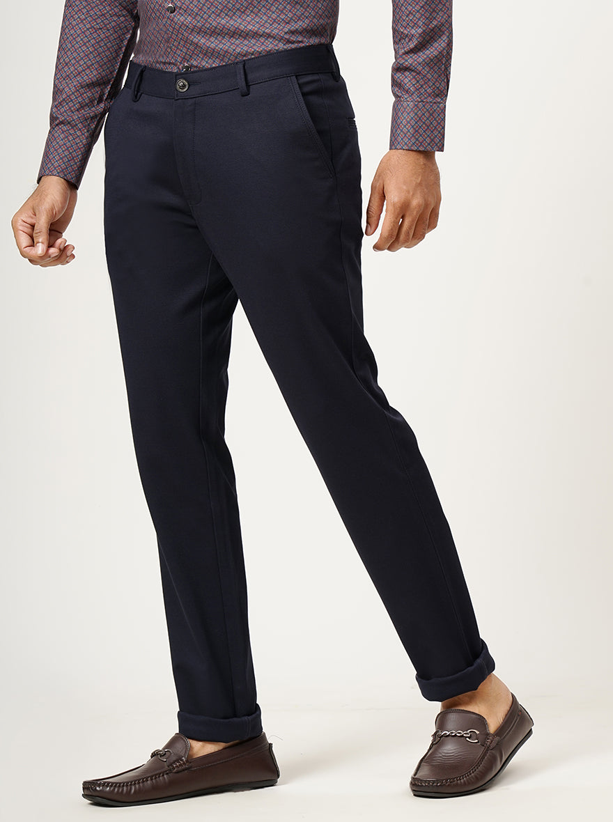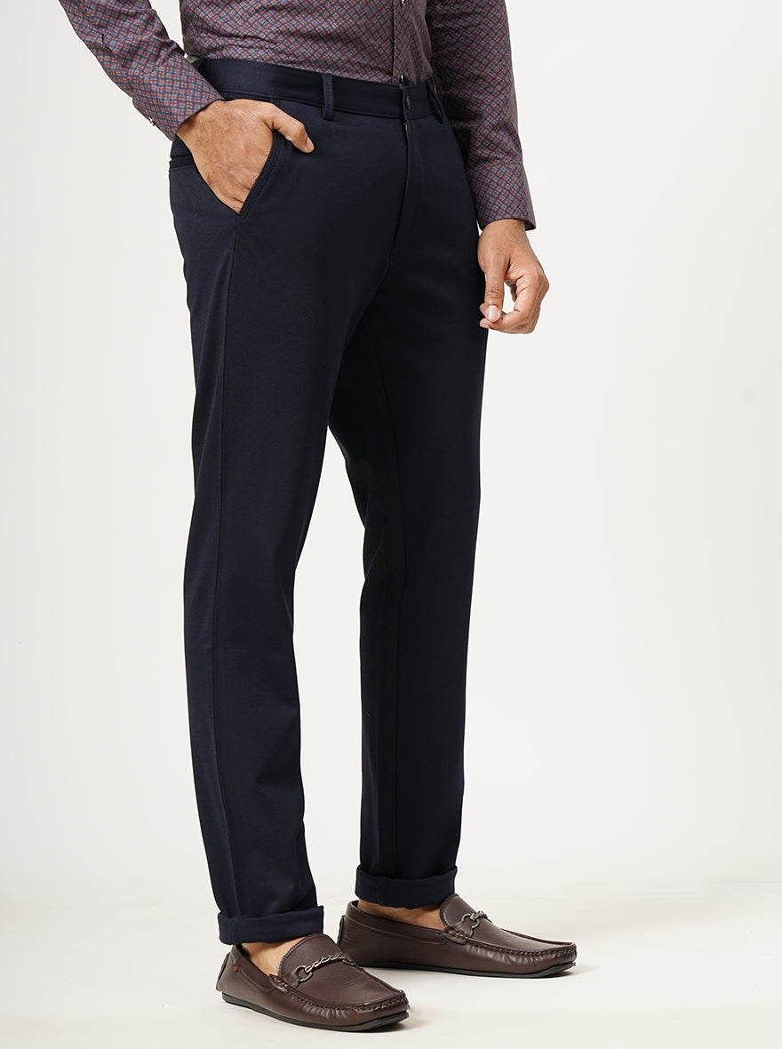 Navy Blue Solid Slim Fit Club Wear Trouser | JB Studio
