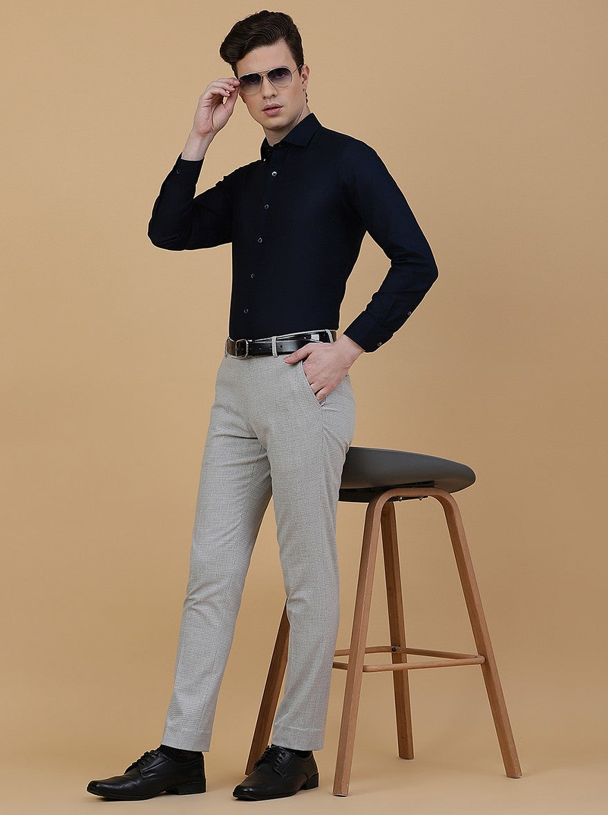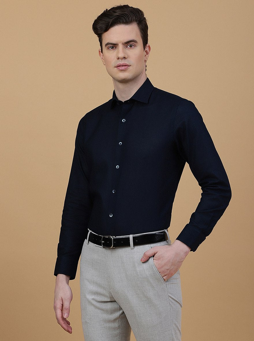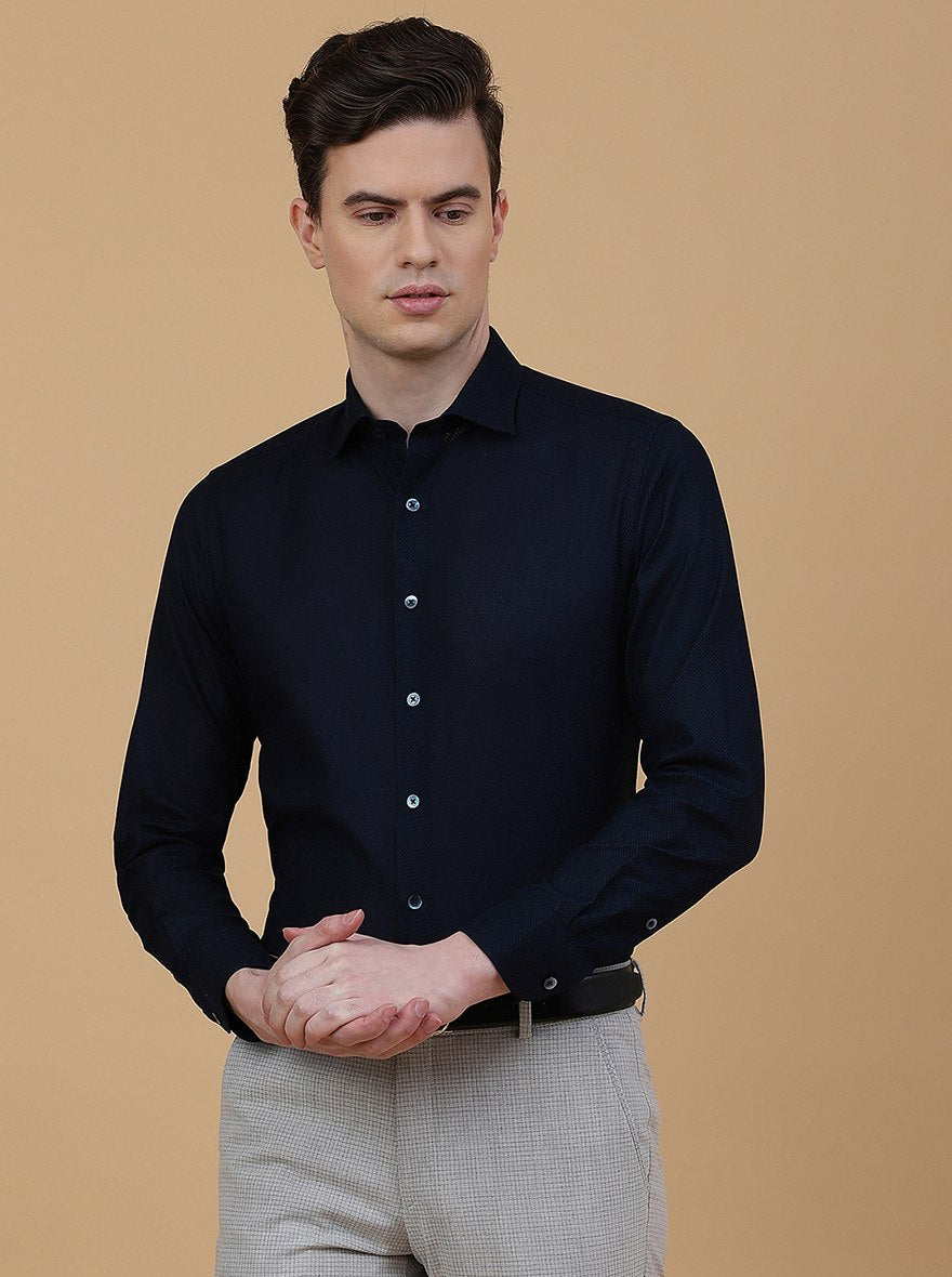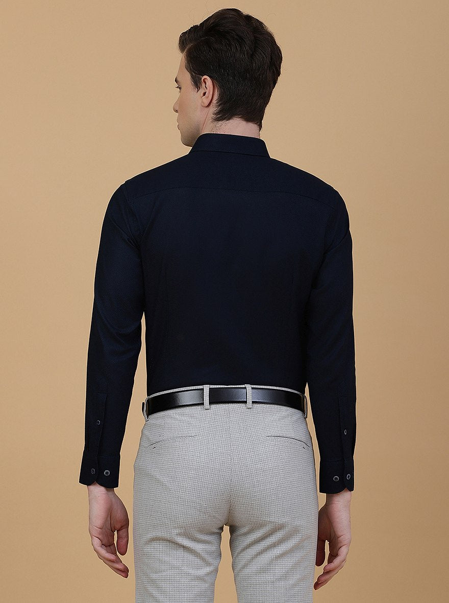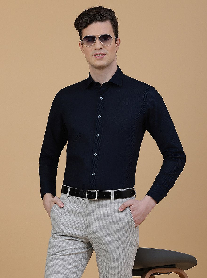 Navy Blue Solid Slim Fit Formal Shirt | Metal