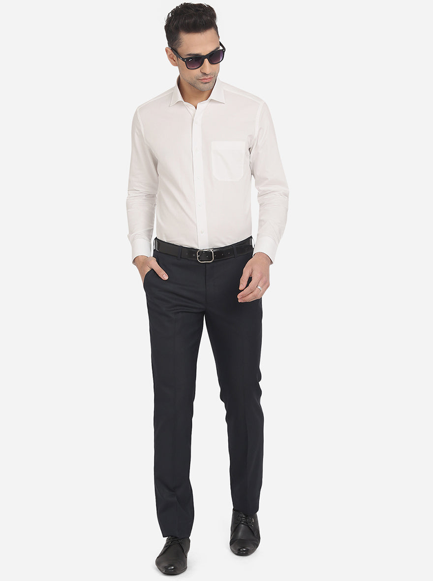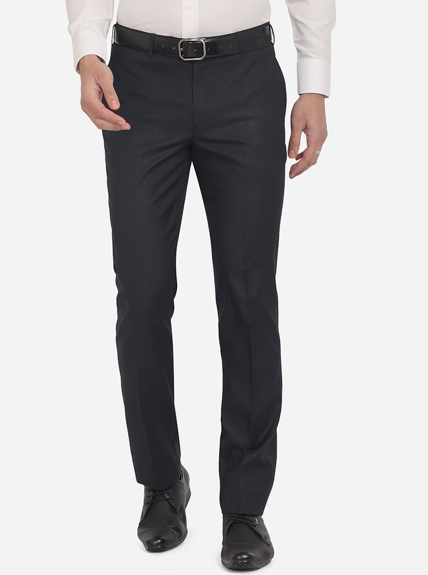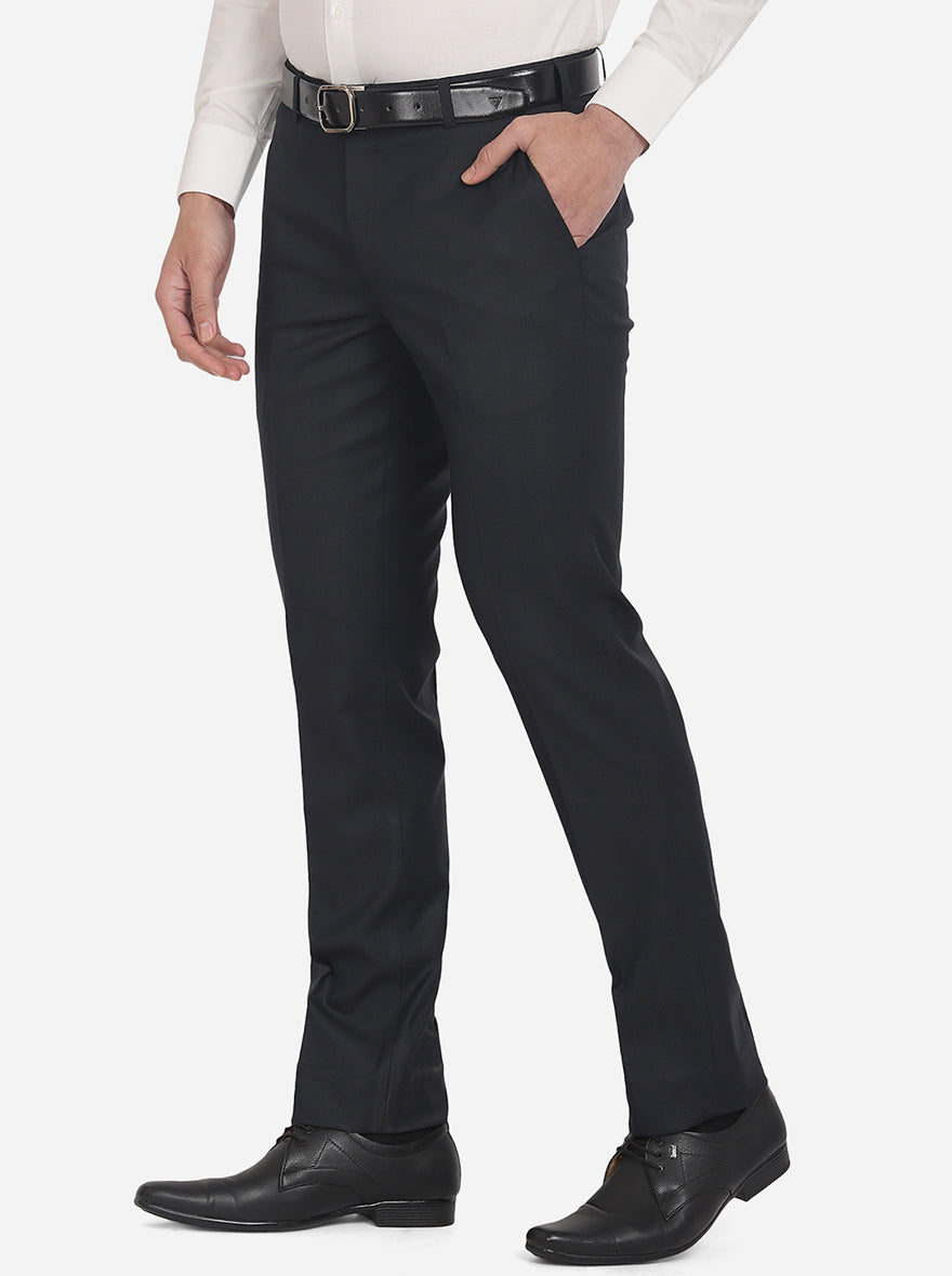 Navy Blue Solid Slim Fit Formal Trouser | Greenfibre