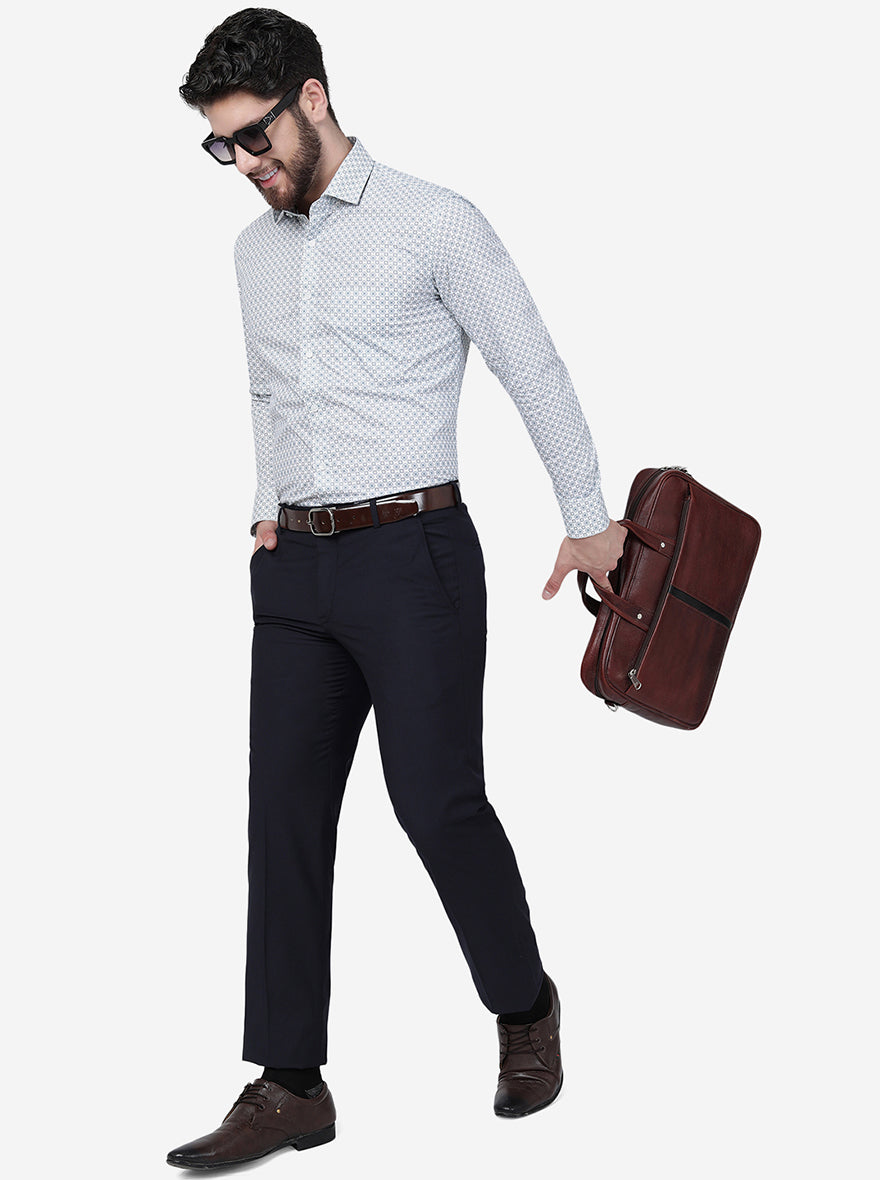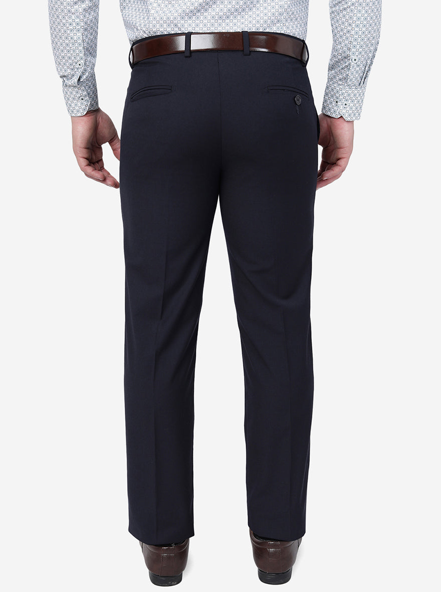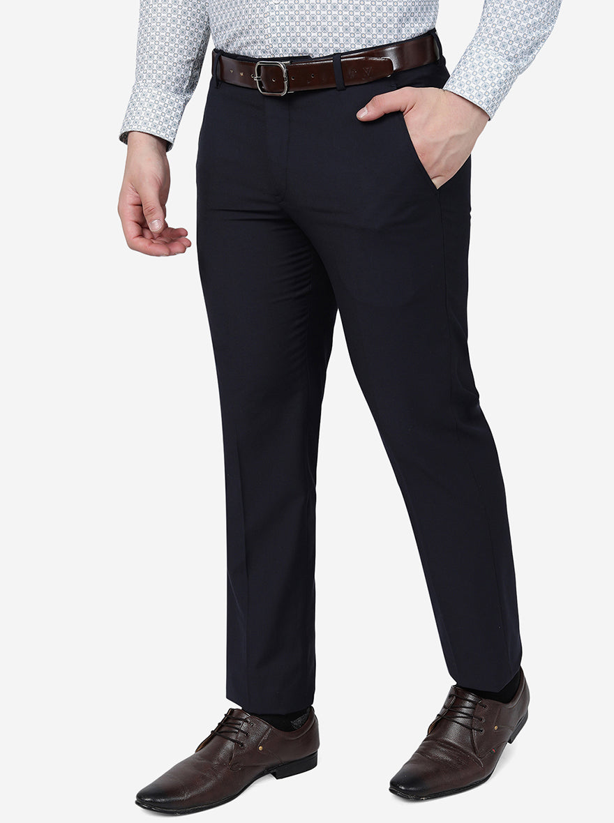 Navy Blue Solid Slim Fit Formal Trouser | Greenfibre