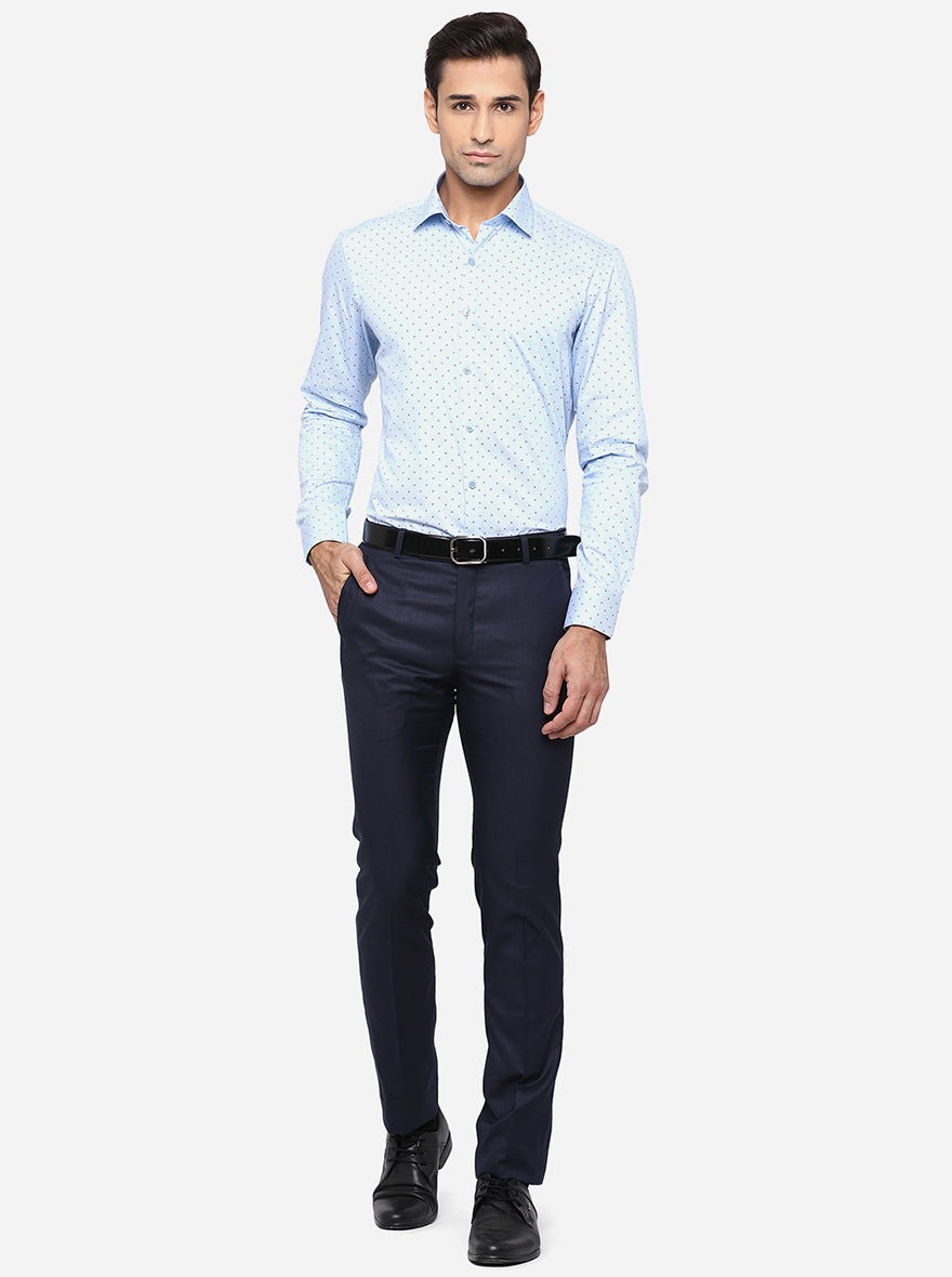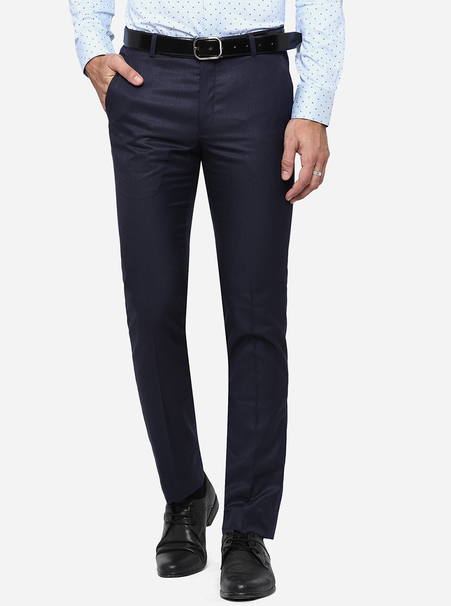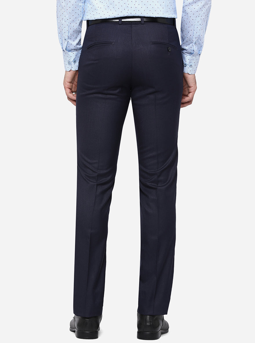 Navy Blue Solid Slim Fit Formal Trouser | Greenfibre
