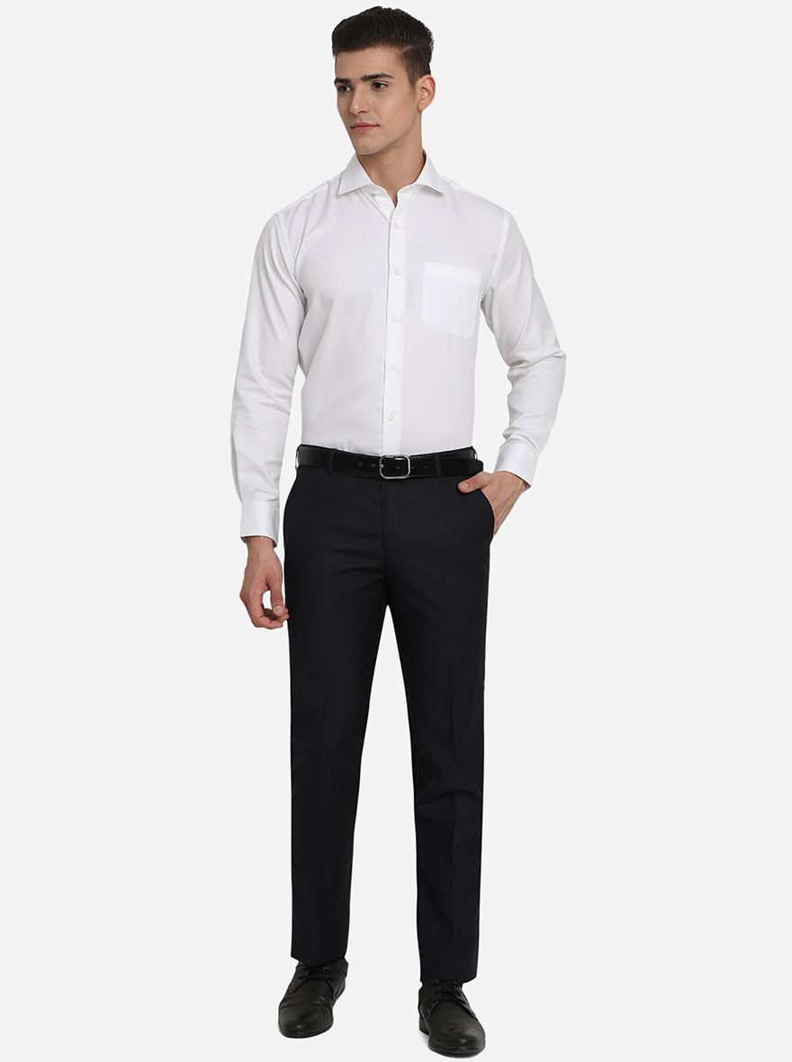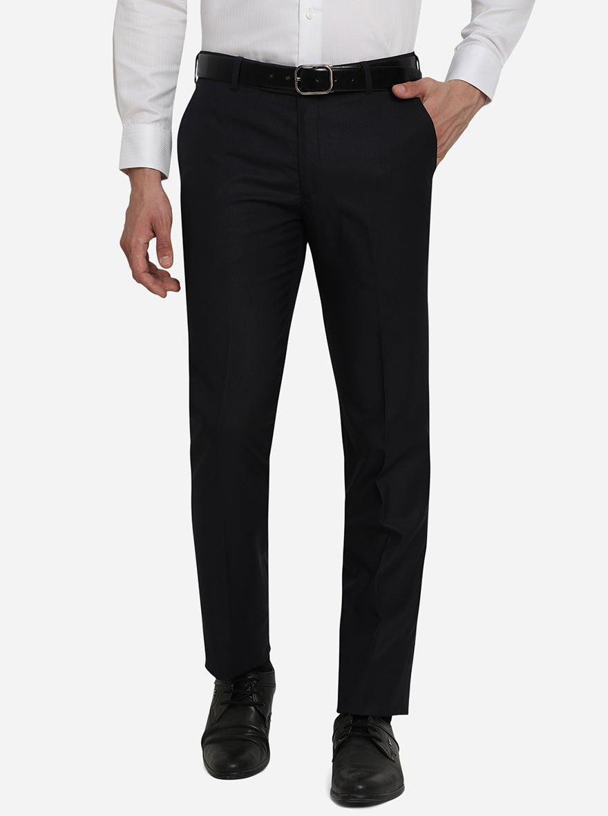 Navy Blue Solid Slim Fit Formal Trouser | Greenfibre