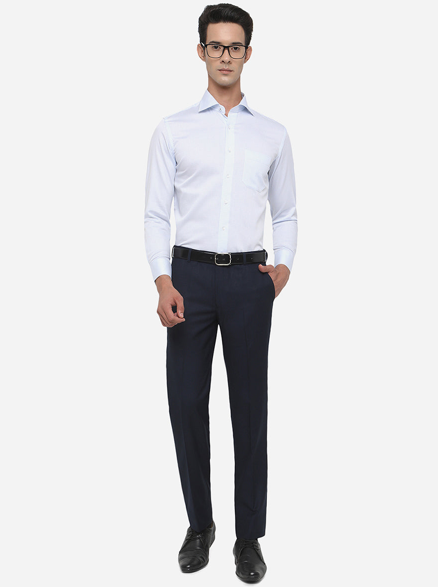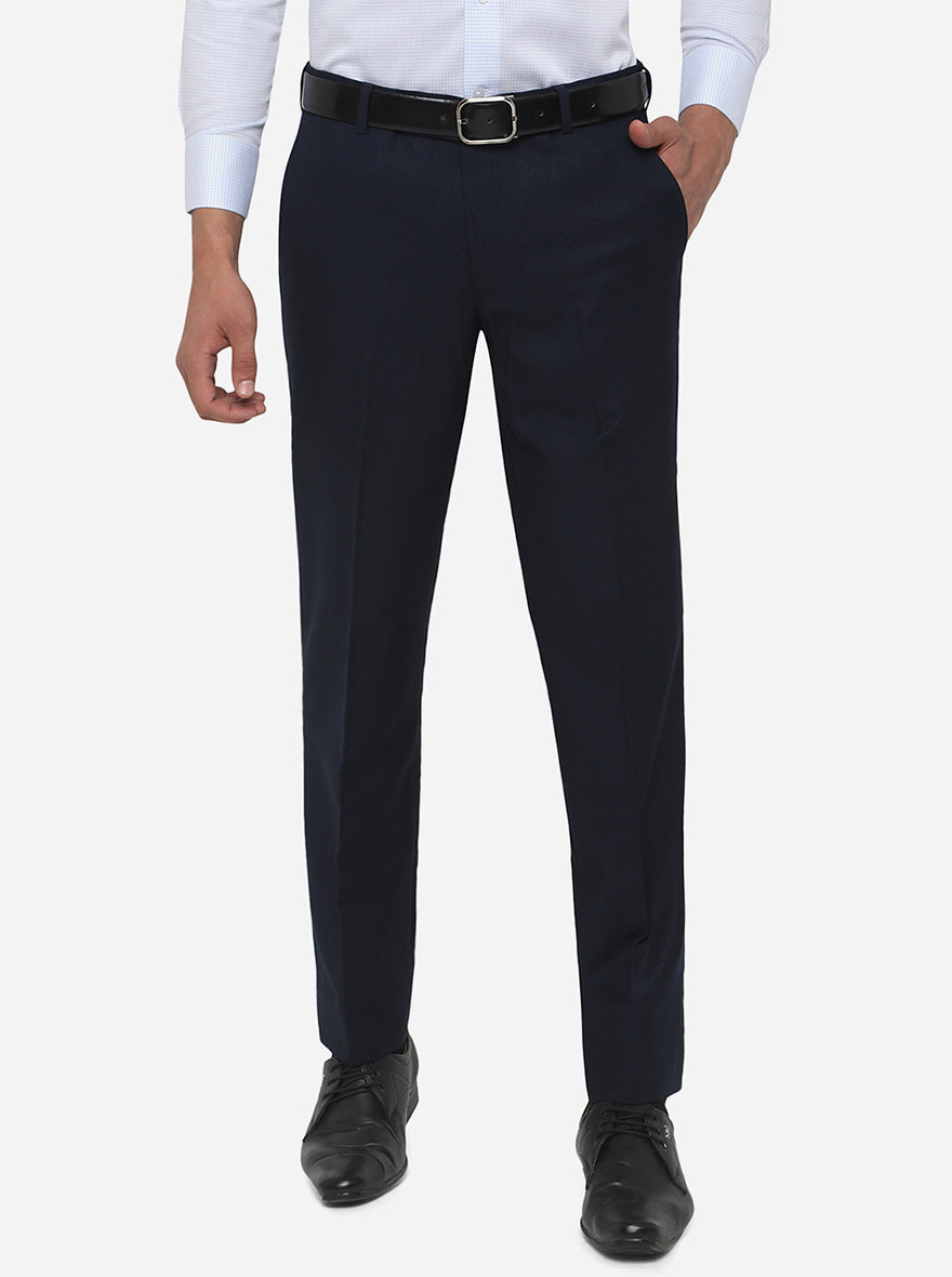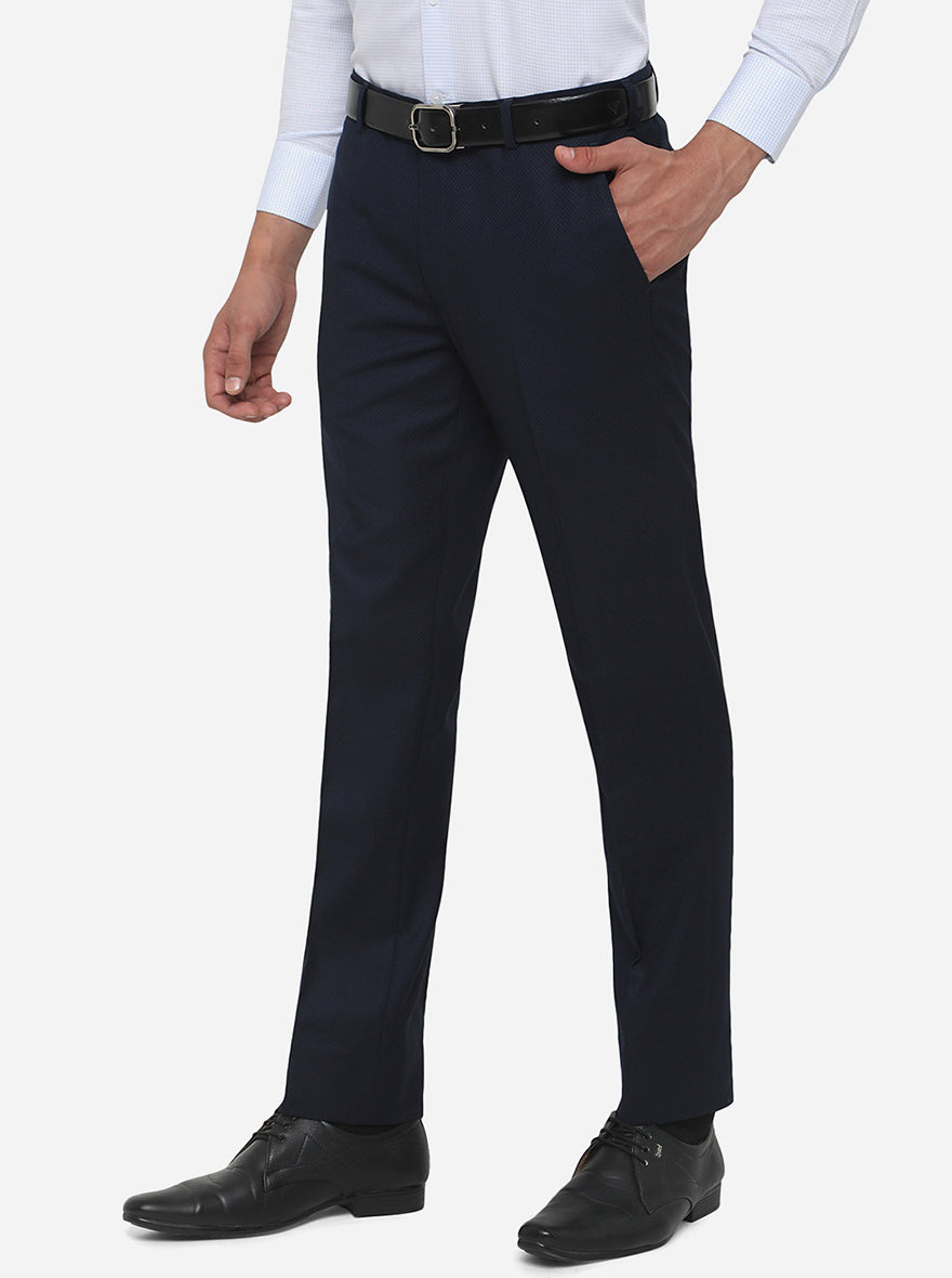 Navy Blue Solid Slim Fit Formal Trouser | Metal