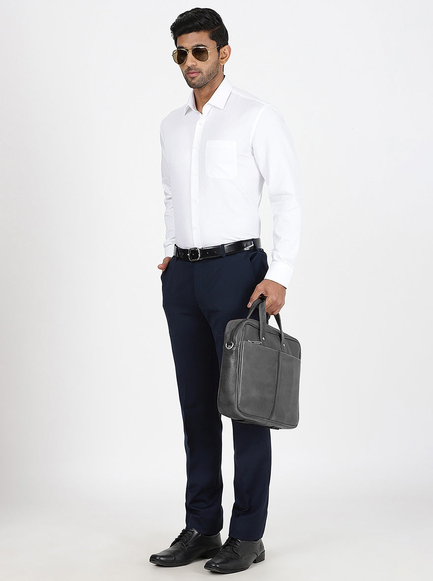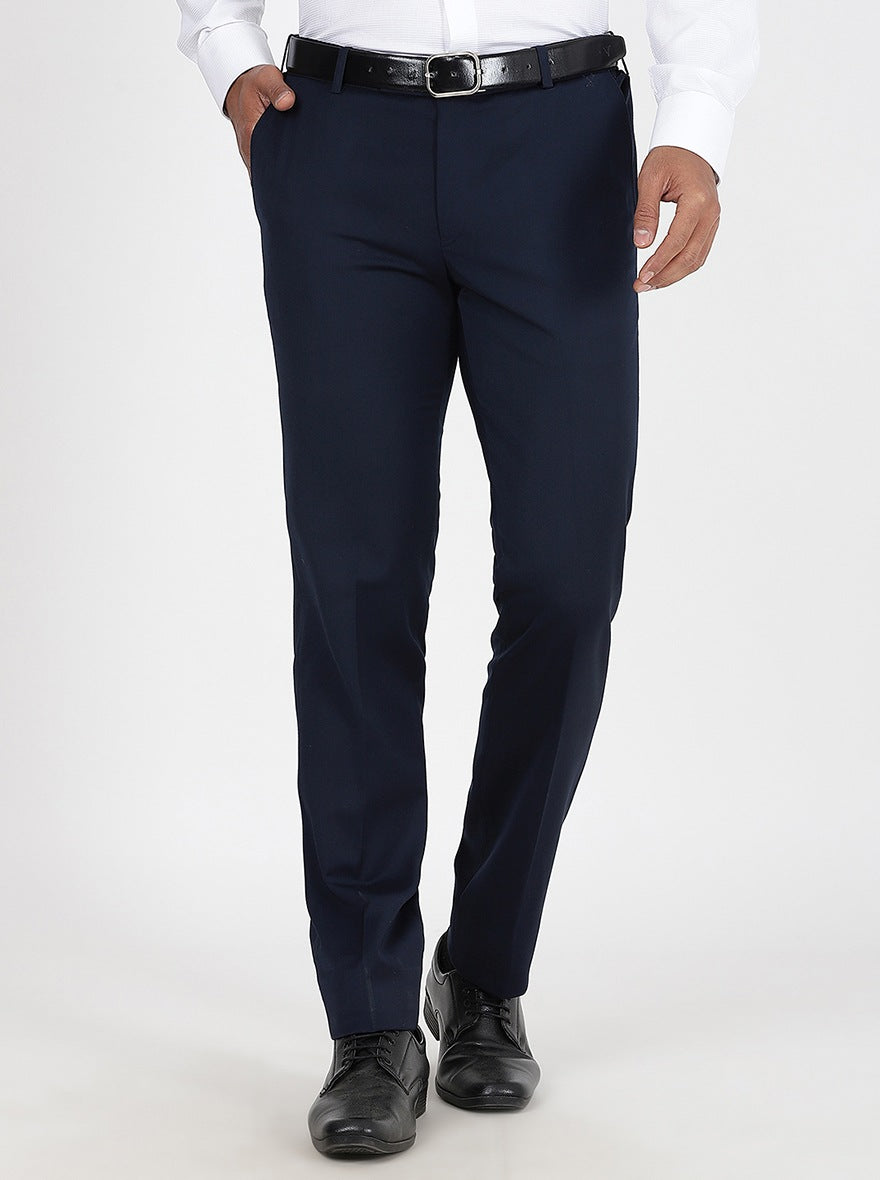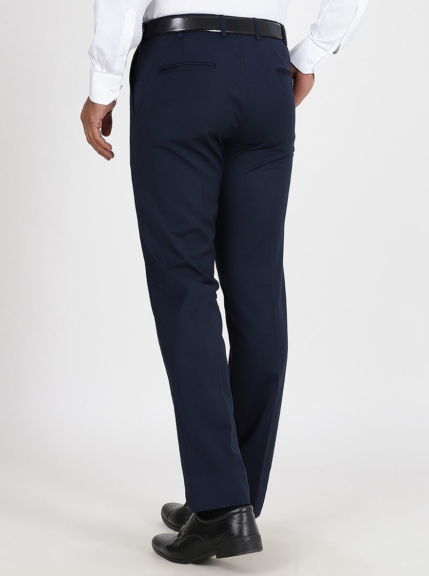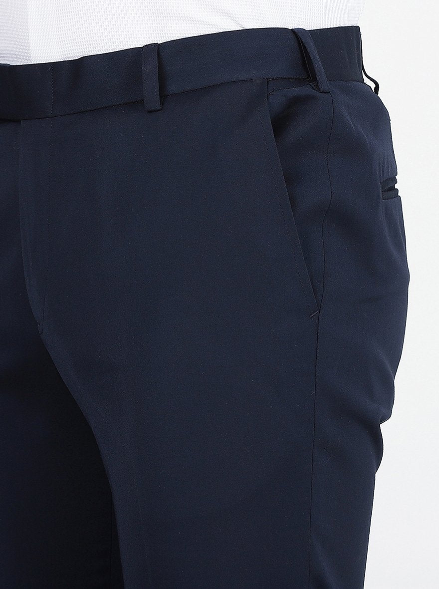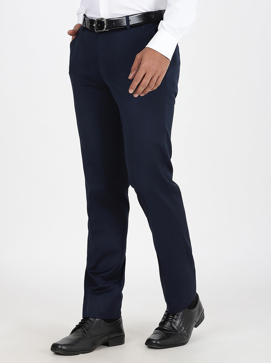 Navy Blue Solid Slim Fit Formal Trouser | Metal