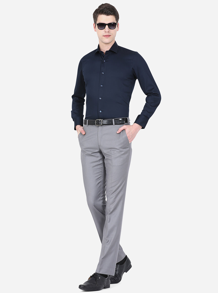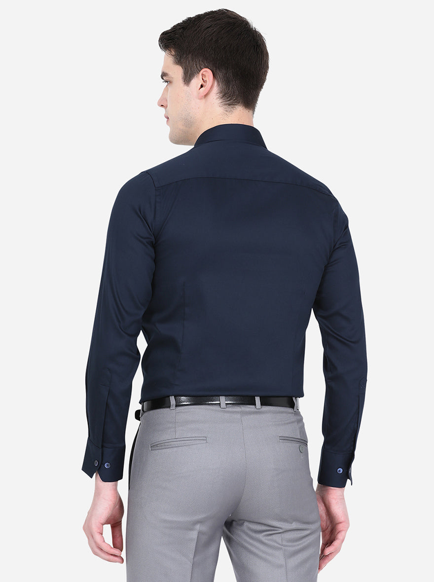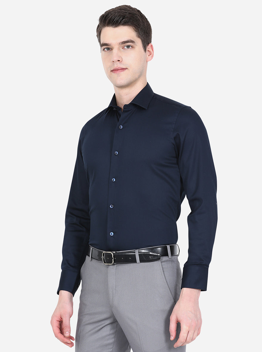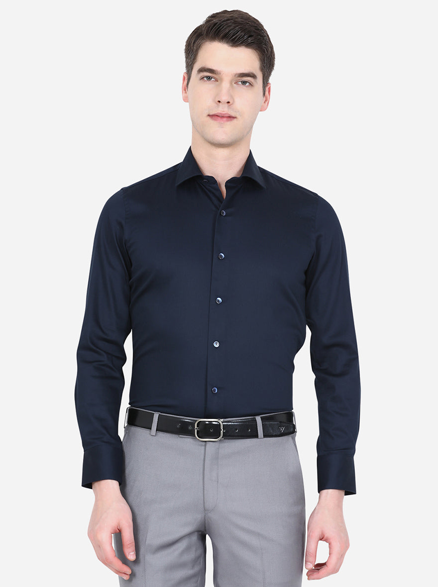 Navy Blue Solid Slim Fit Party Wear Shirt | Wyre
