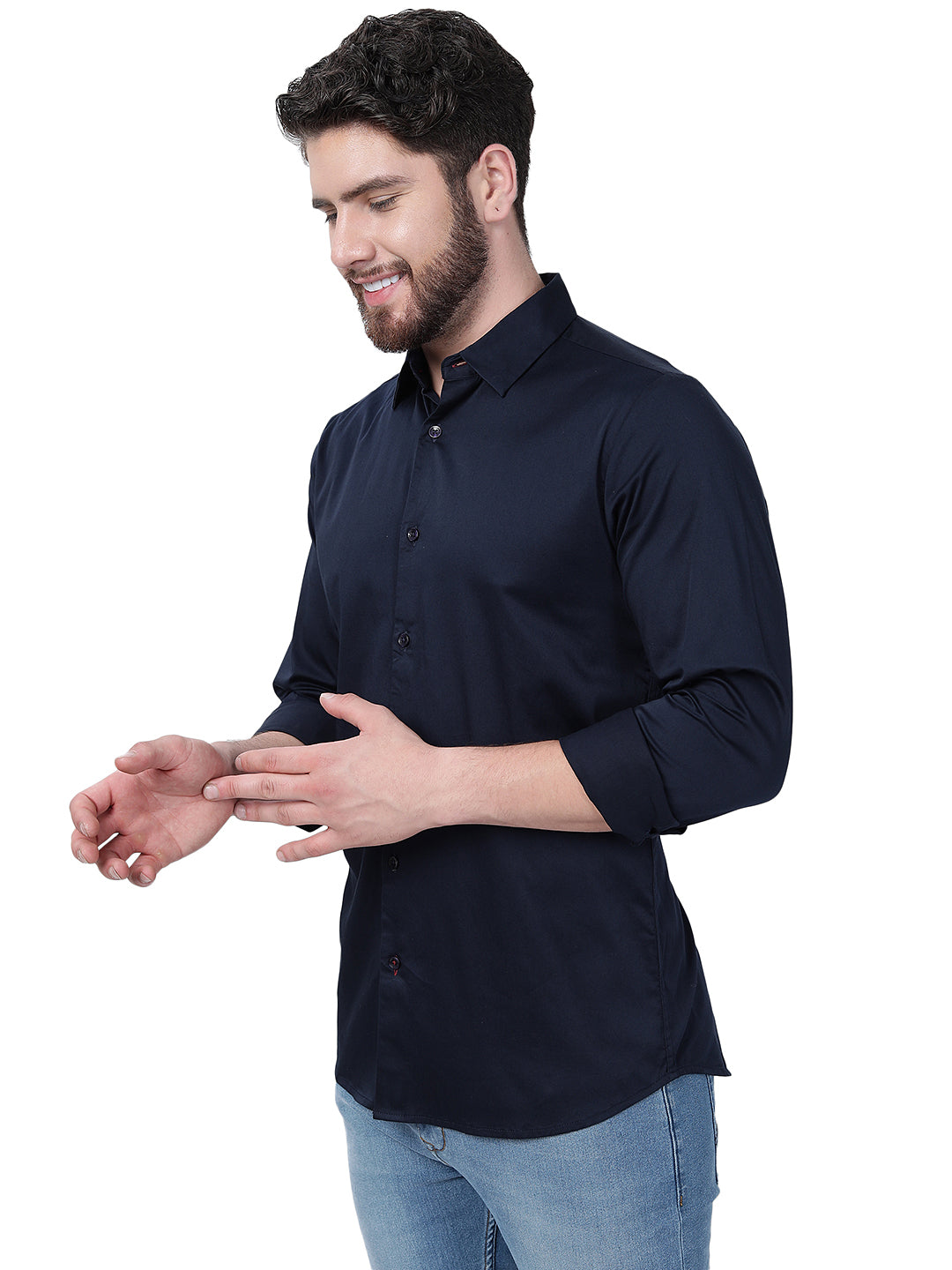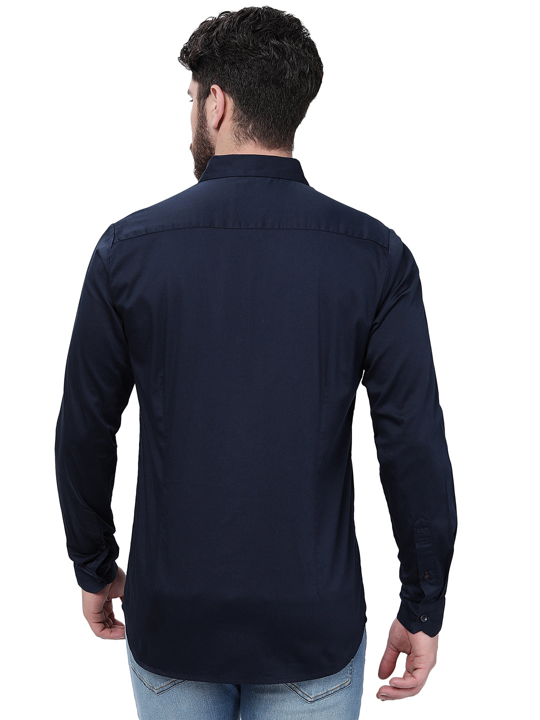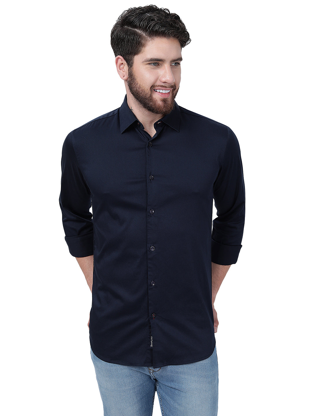 Navy Blue Solid Slim Fit Semi Casual Shirt | JadeBlue