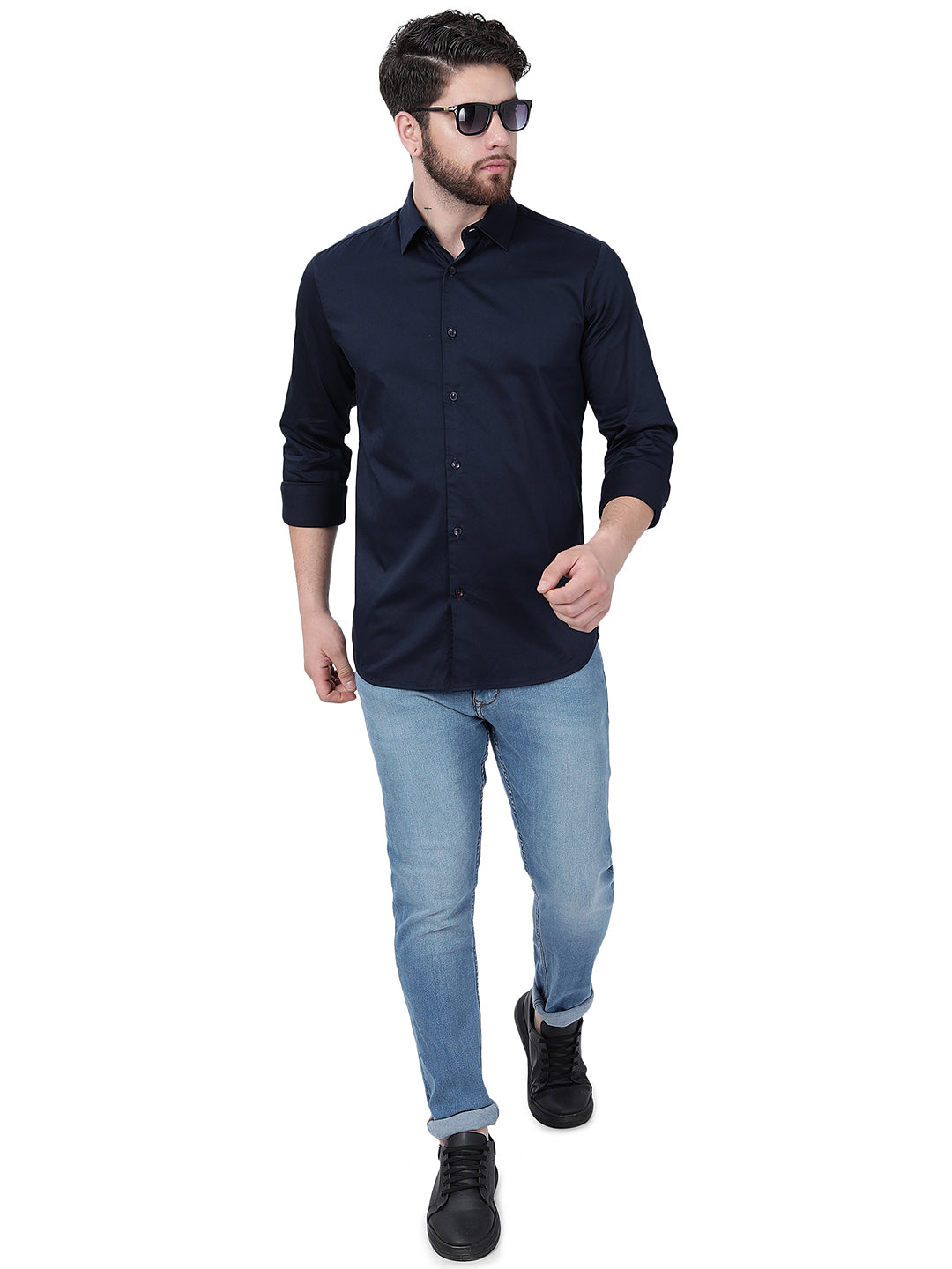 Details: Most loved shirt of all time is here with this Navy Blue 100% Cotton Semi Casual Shirt from JadeBlue. Fabricated with 100% Cotton promises a comfortable and breathable wearing experience. Offers a slim fit for a sleek look that has been elevated with a solid pattern. Feature full sleeves, and a regular shirt collar. Match it with the well-fitted trousers of your choice and a pair of oxford shoes and you are ready to go.