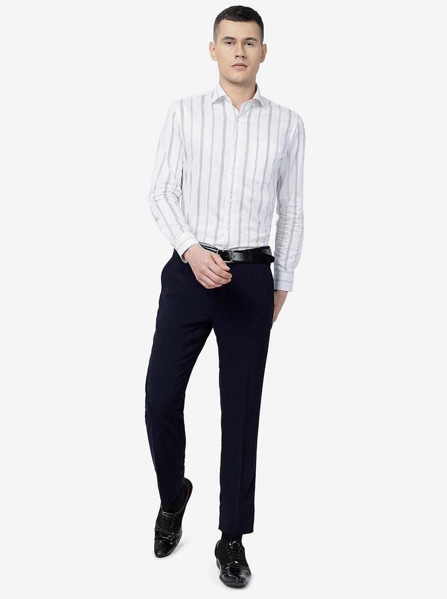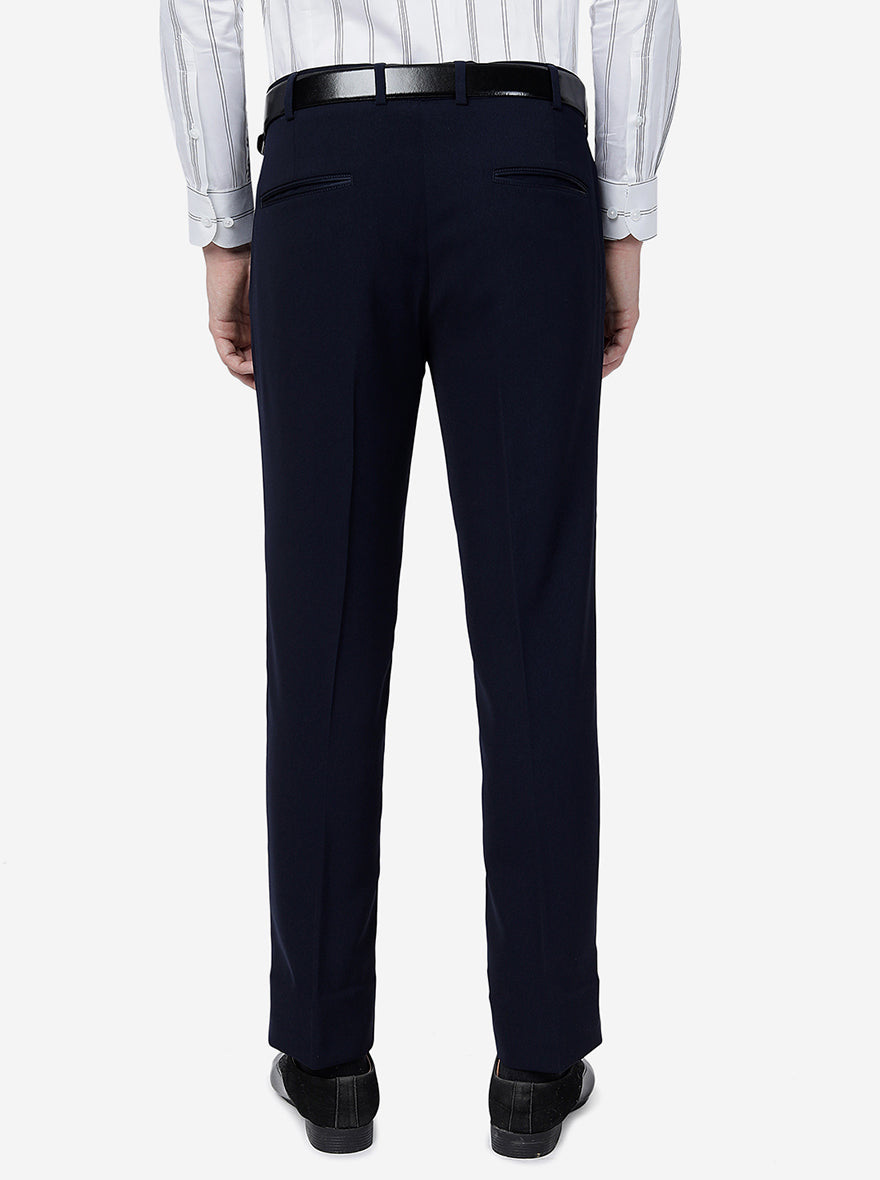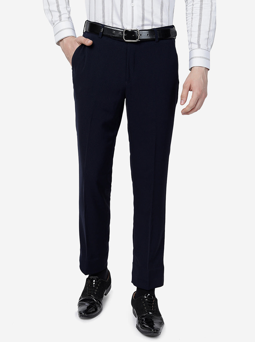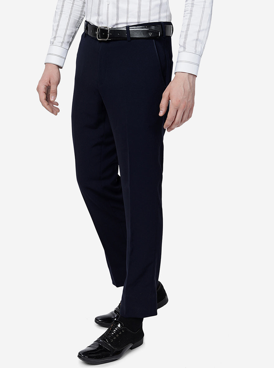 Navy Blue Solid Slim Fit Formal Trouser | JB Studio
