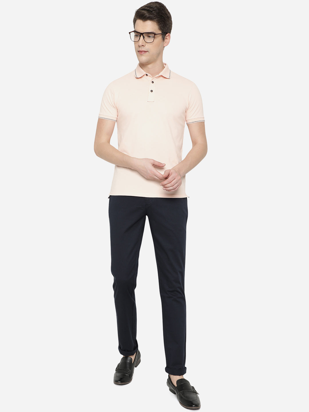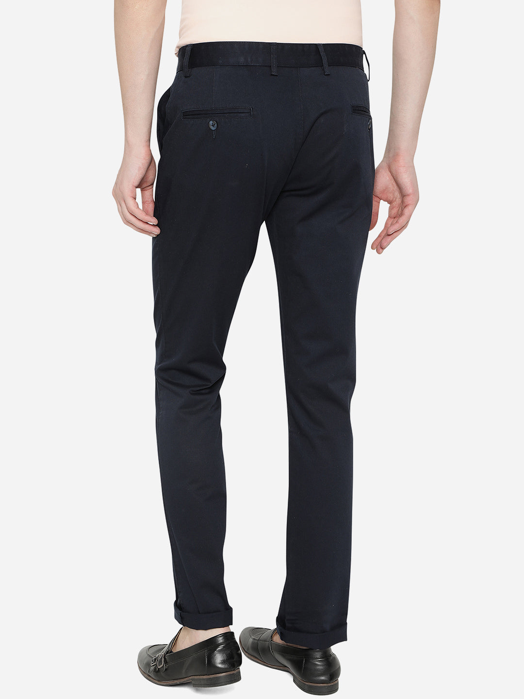Navy Blue Solid Super Slim Fit Casual Trouser | Greenfibre