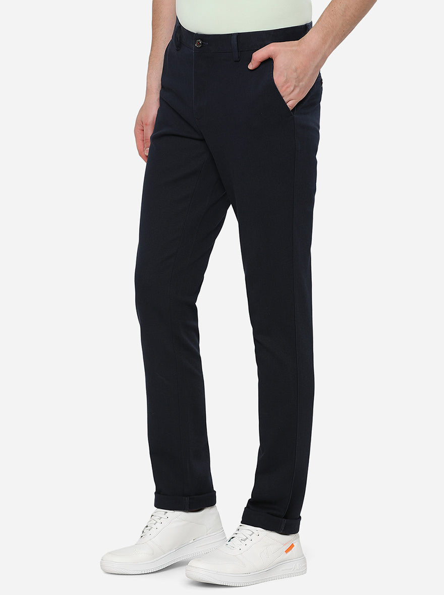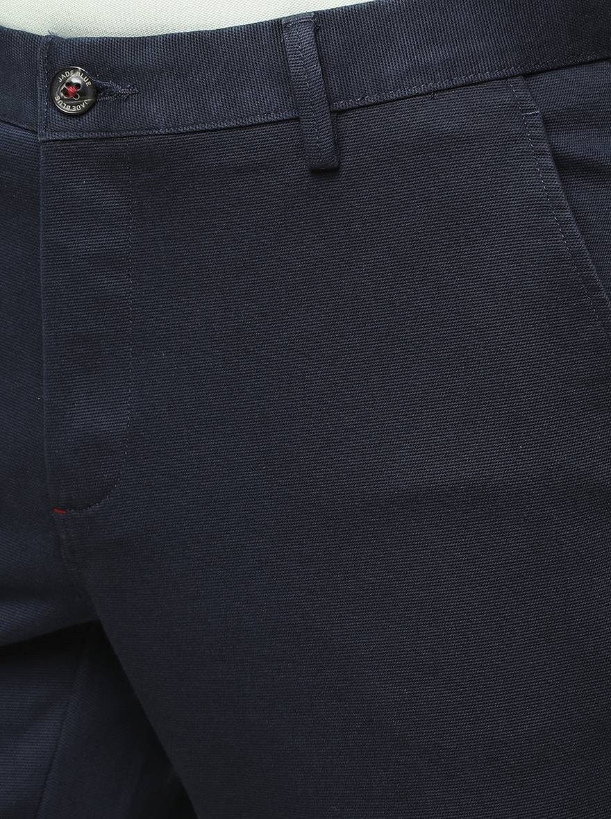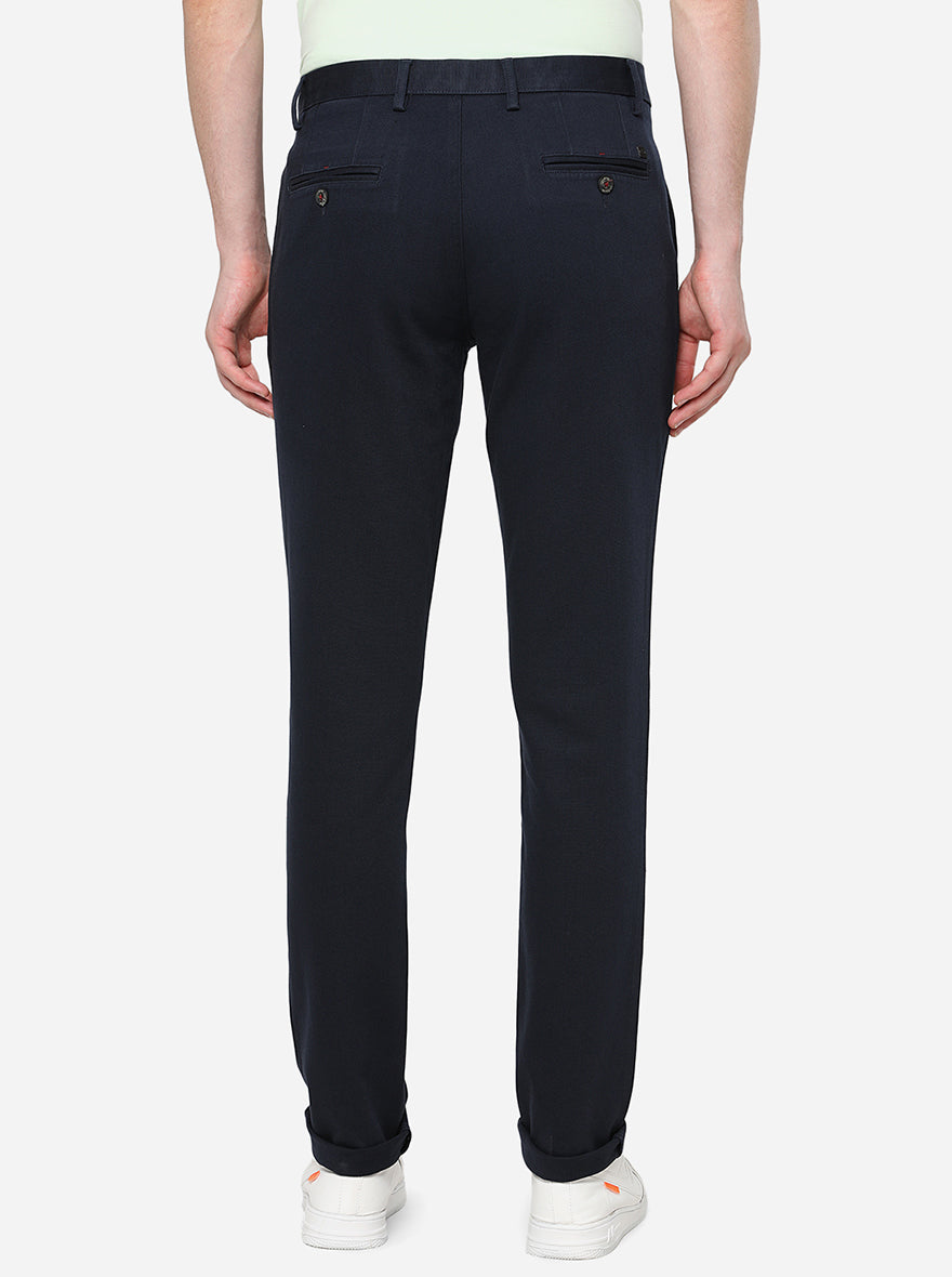 Navy Blue Solid Uno Fit Casual Trouser | JadeBlue