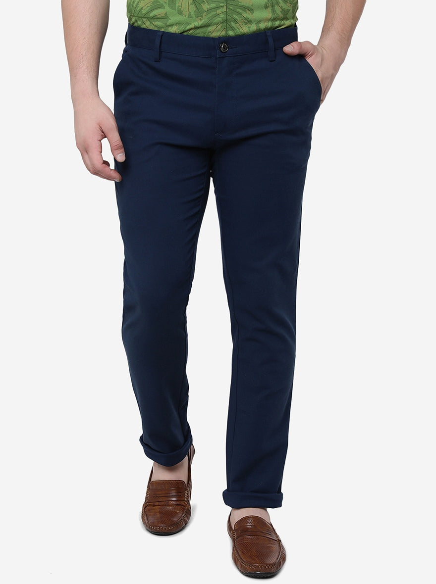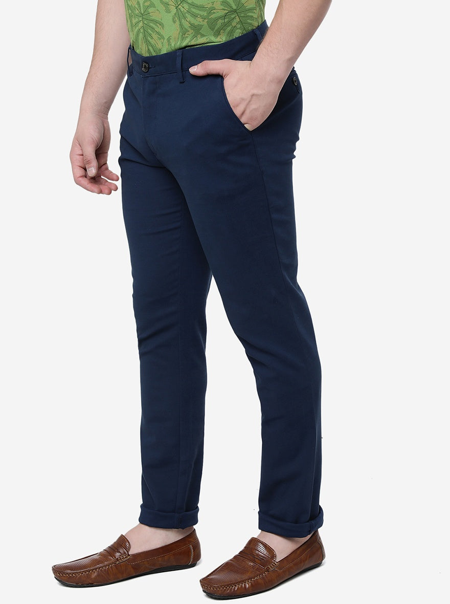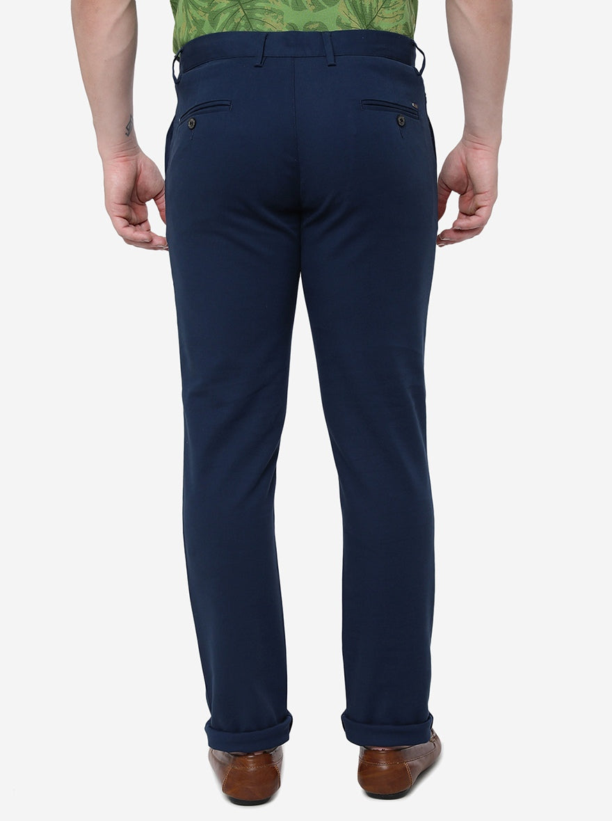Navy Blue Solid Uno Fit Casual Trouser | JadeBlue