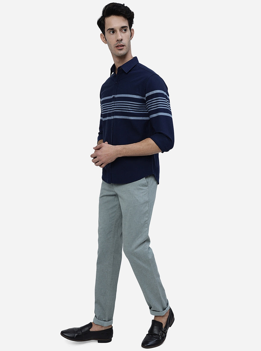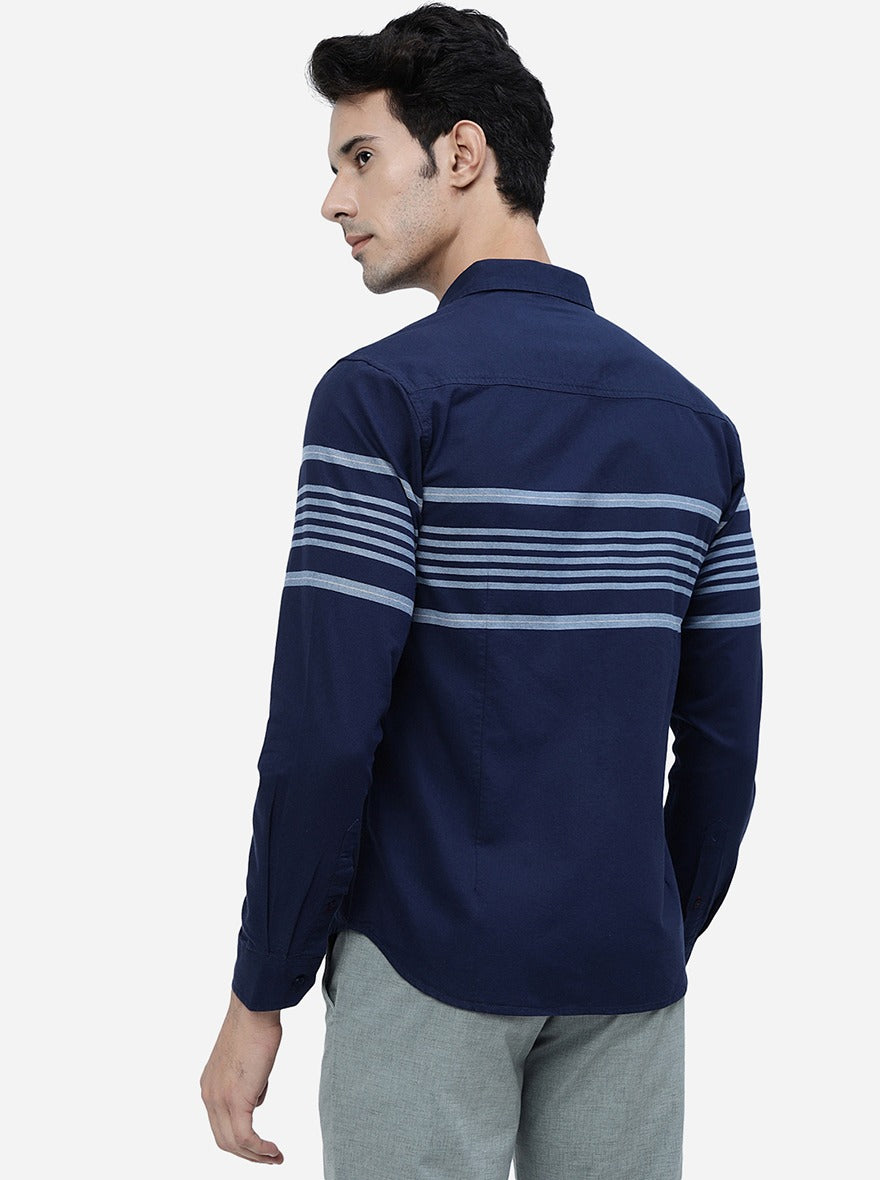 Navy Blue Striped Slim Fit Casual Shirt | Greenfibre