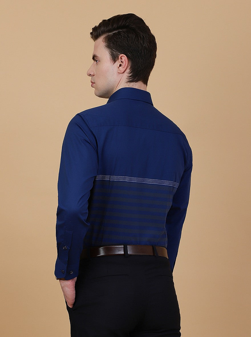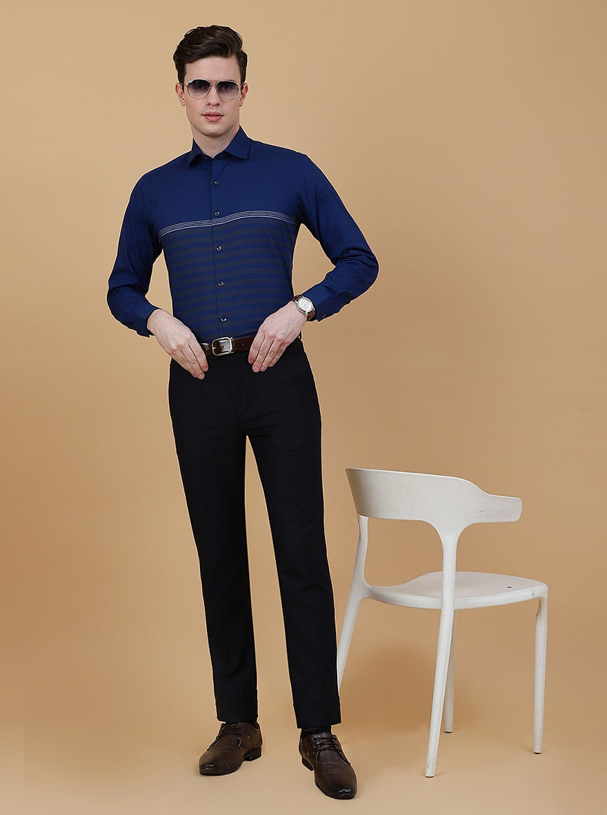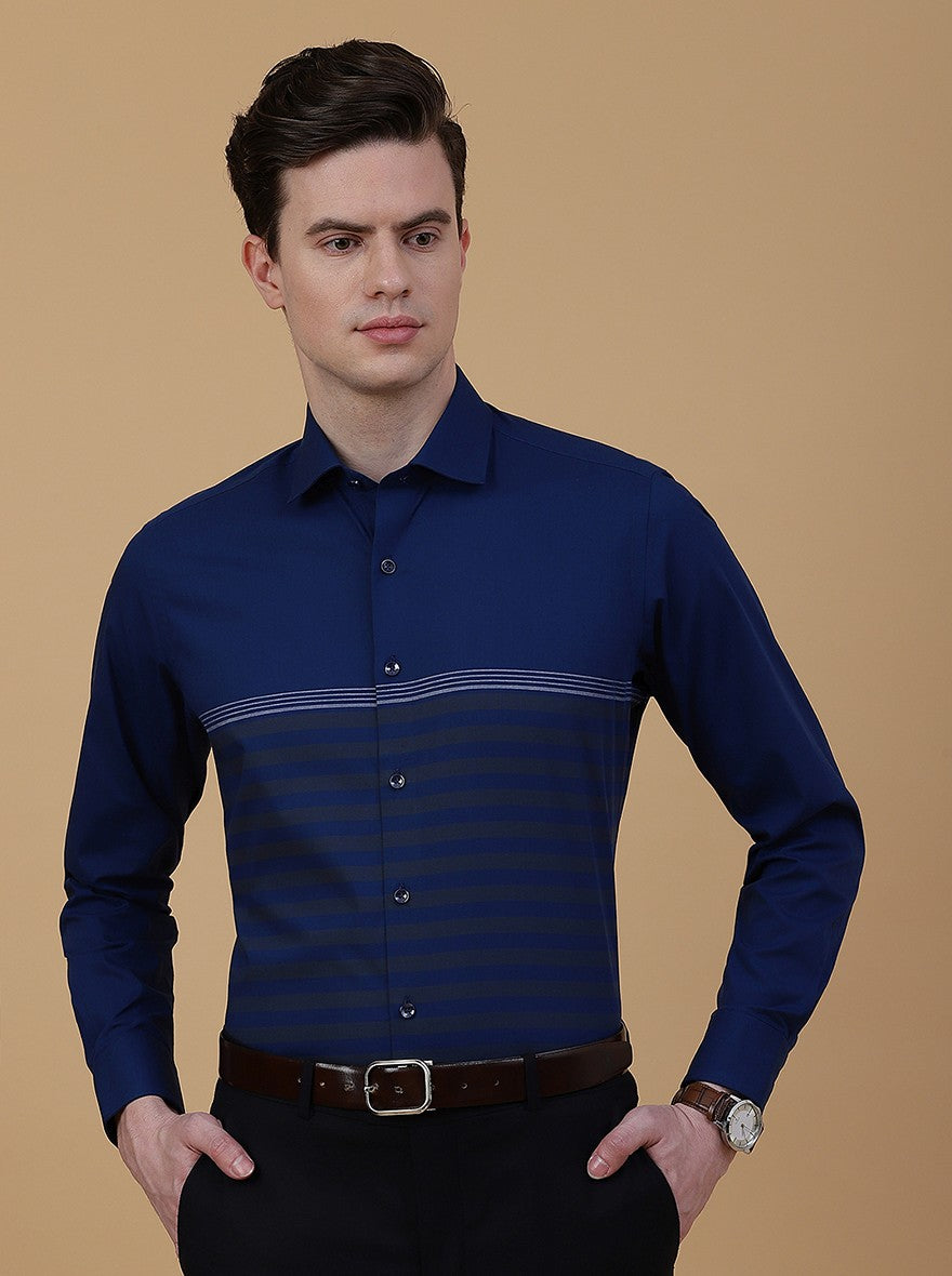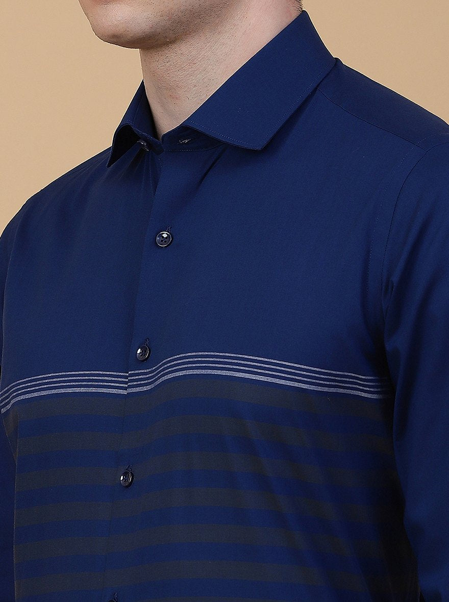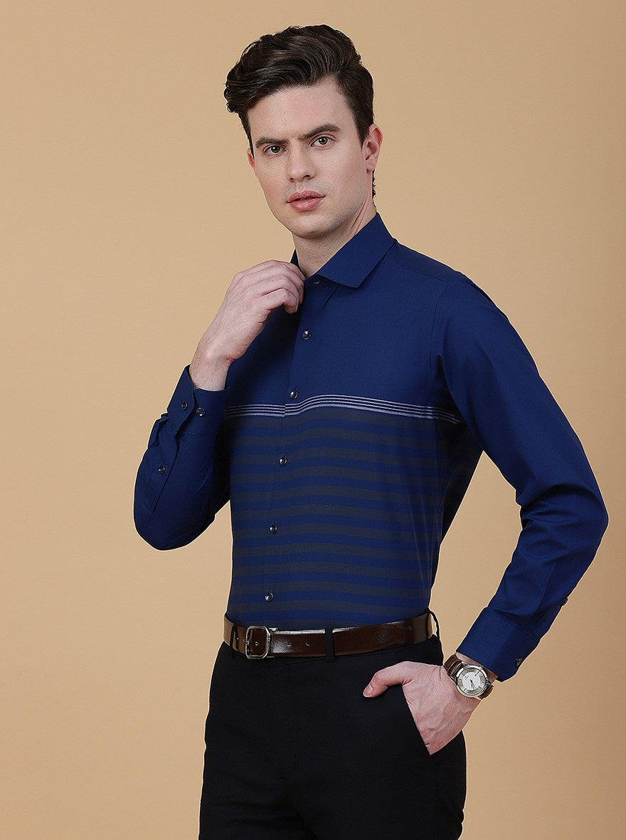 Navy Blue Striped Slim Fit Formal Shirt | Greenfibre