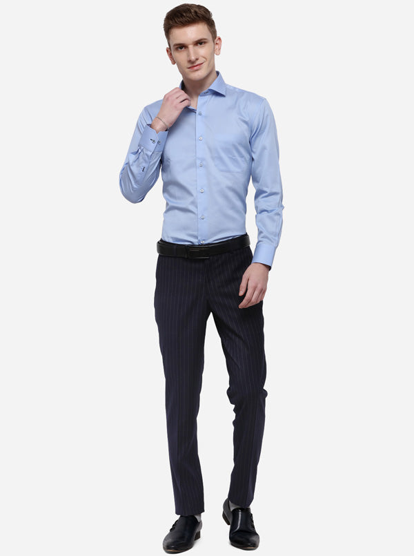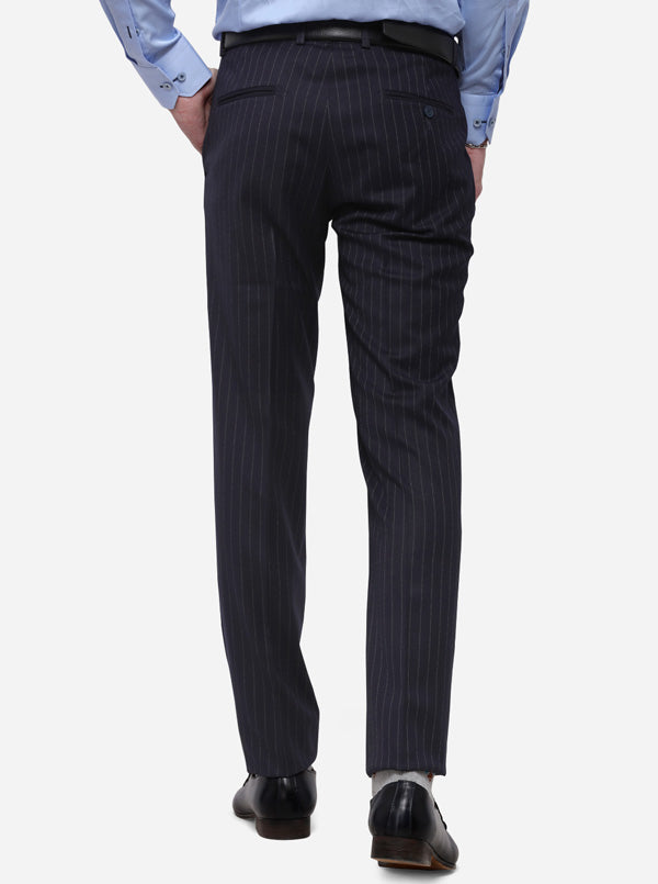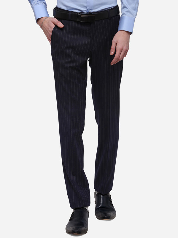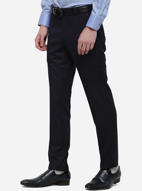Navy Blue Striped Super Slim Fit Formal Trouser | JadeBlue