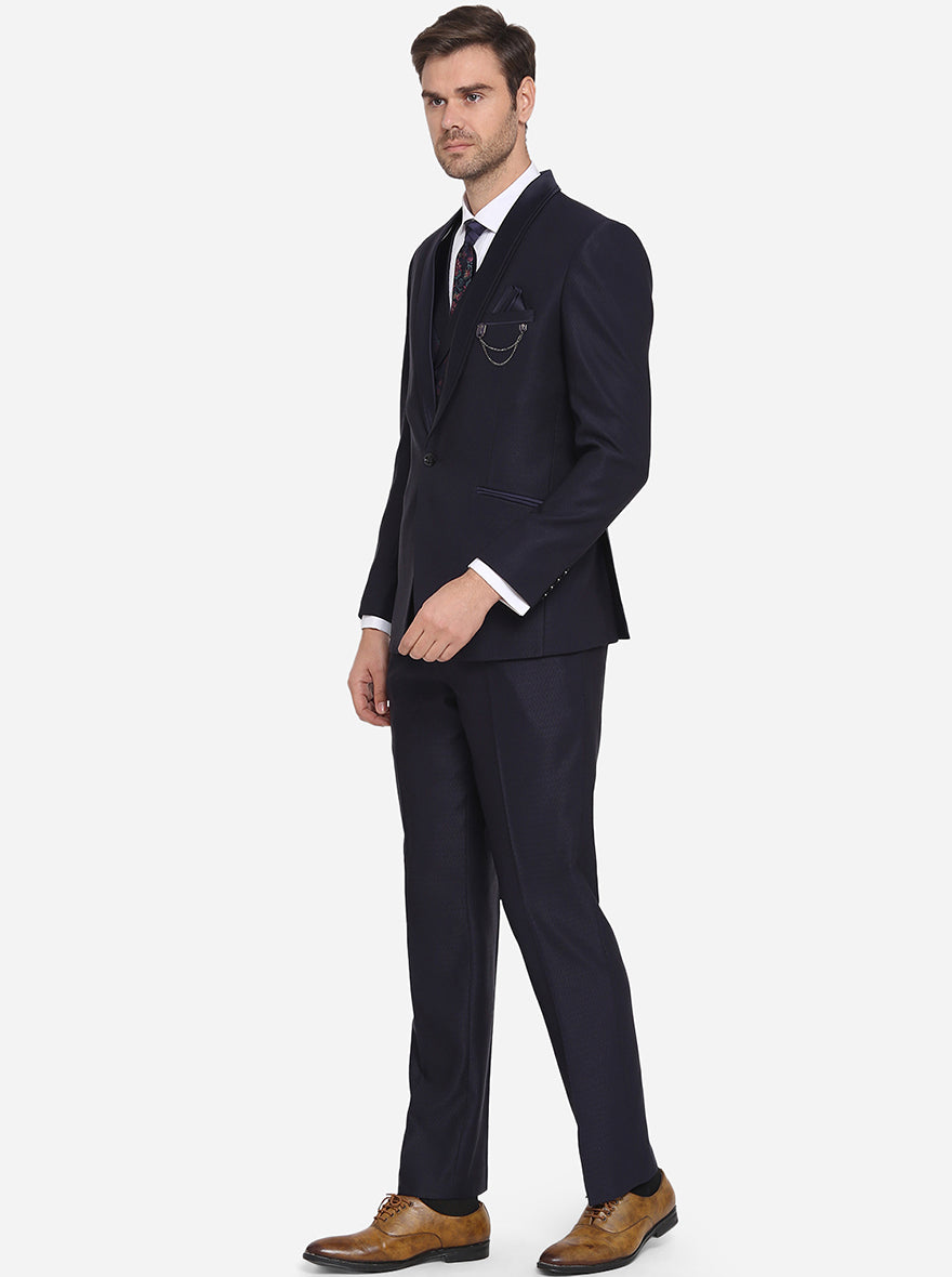 Details: Create a dashing look for your next formal party by getting dressed up in this amazing Navy-Blue suit from the brand JadeBlue. It is a premium suit that includes a shirt, waistcoat, a jacket and a pair of matching pant. Classic single breasted design with a smart printed waistcoat and a solid shirt. Comes with a flat-front trousers which has a hook bar and zip fastening. Offers a regular fit. Crafted with rich Terry Rayon to give a cosy yet comfortable feel wherever you go. Team it with a pair of smart oxford shoes and you are all set to go.