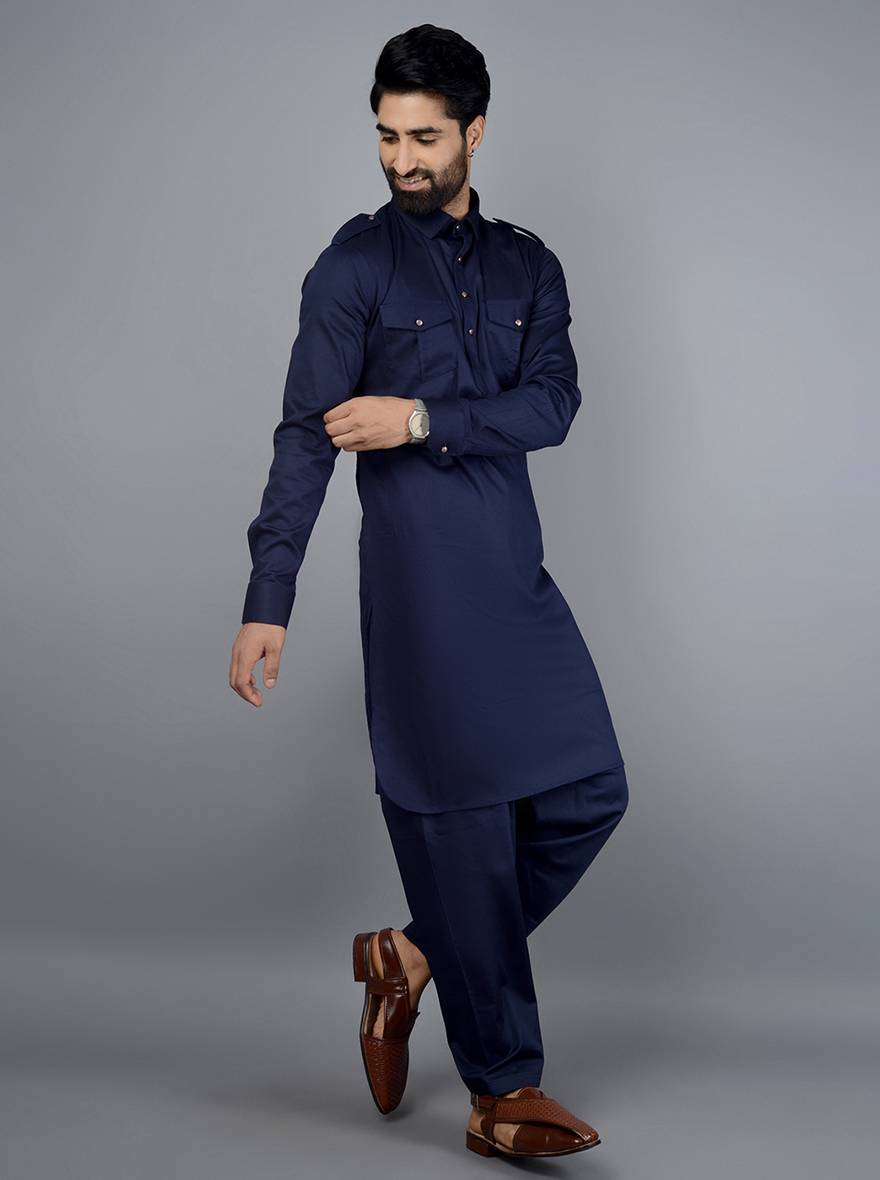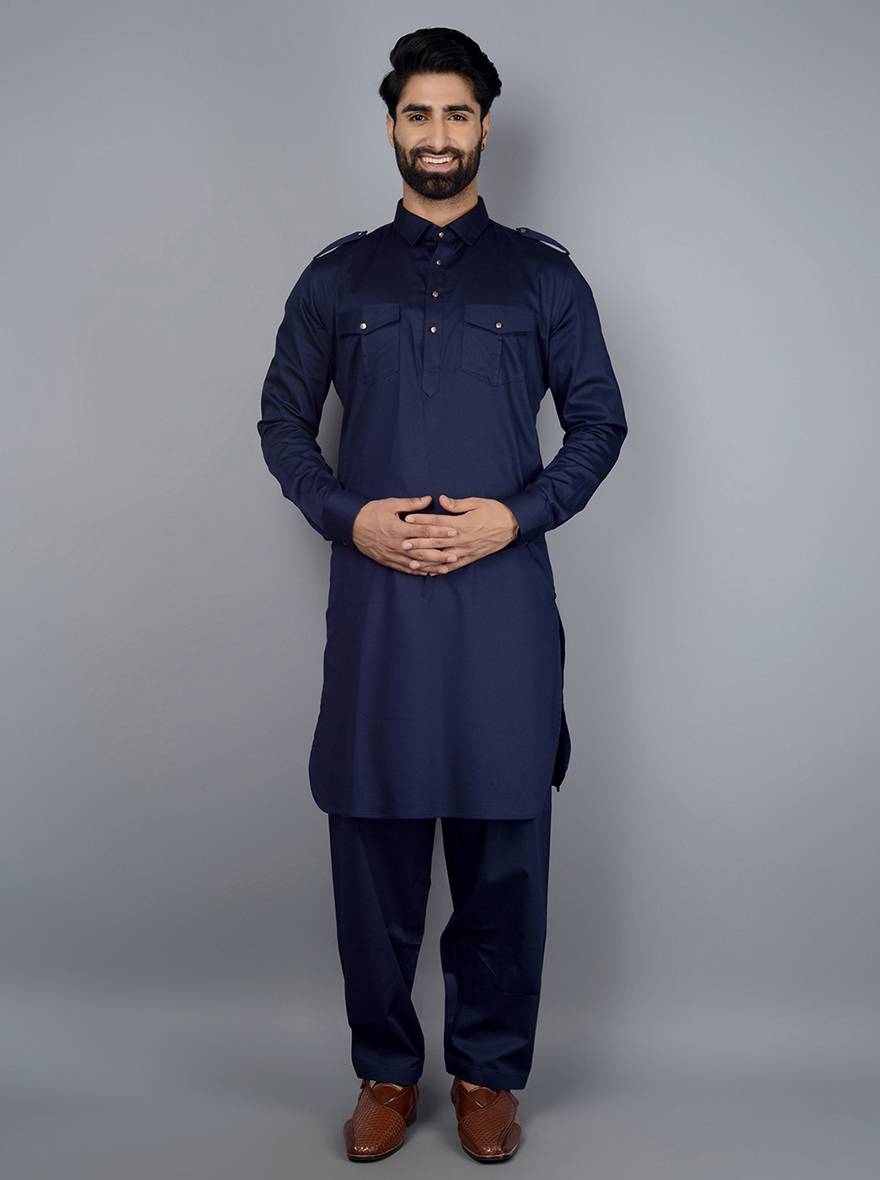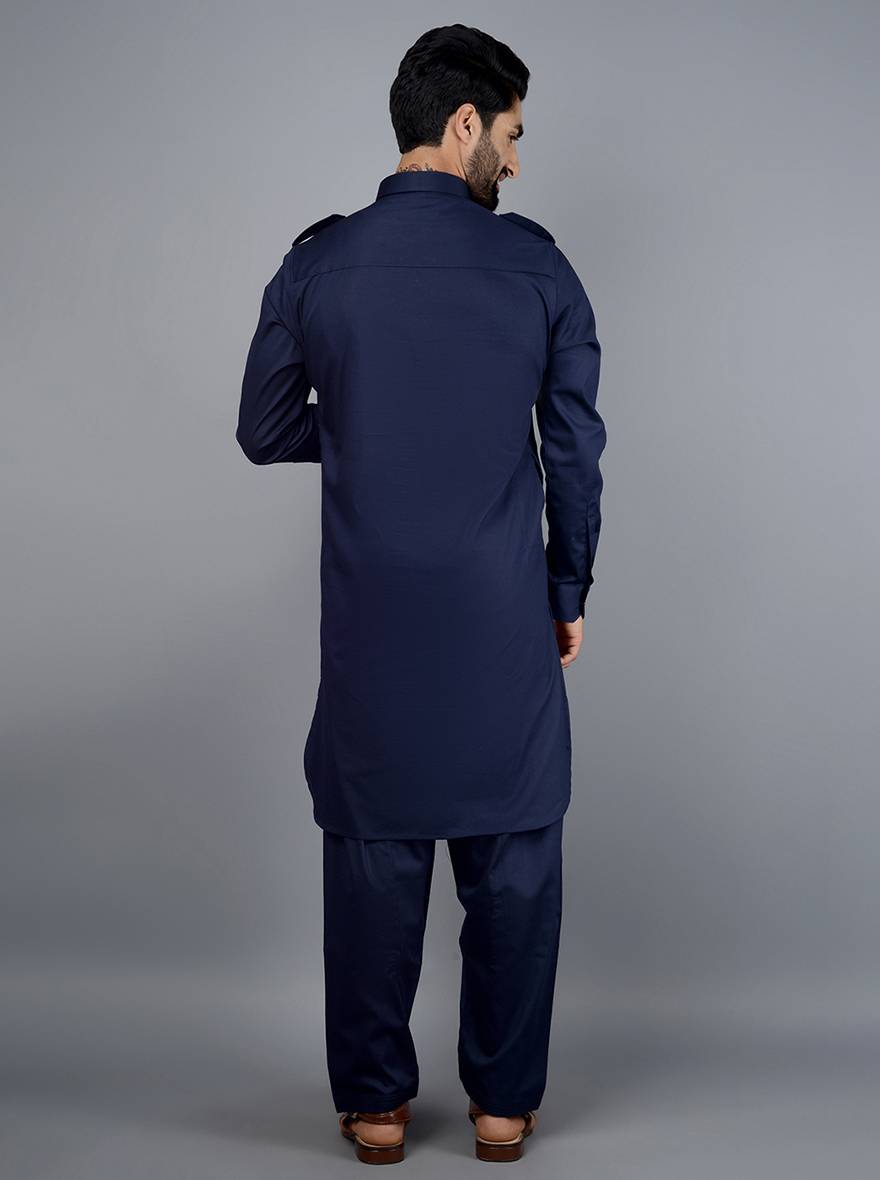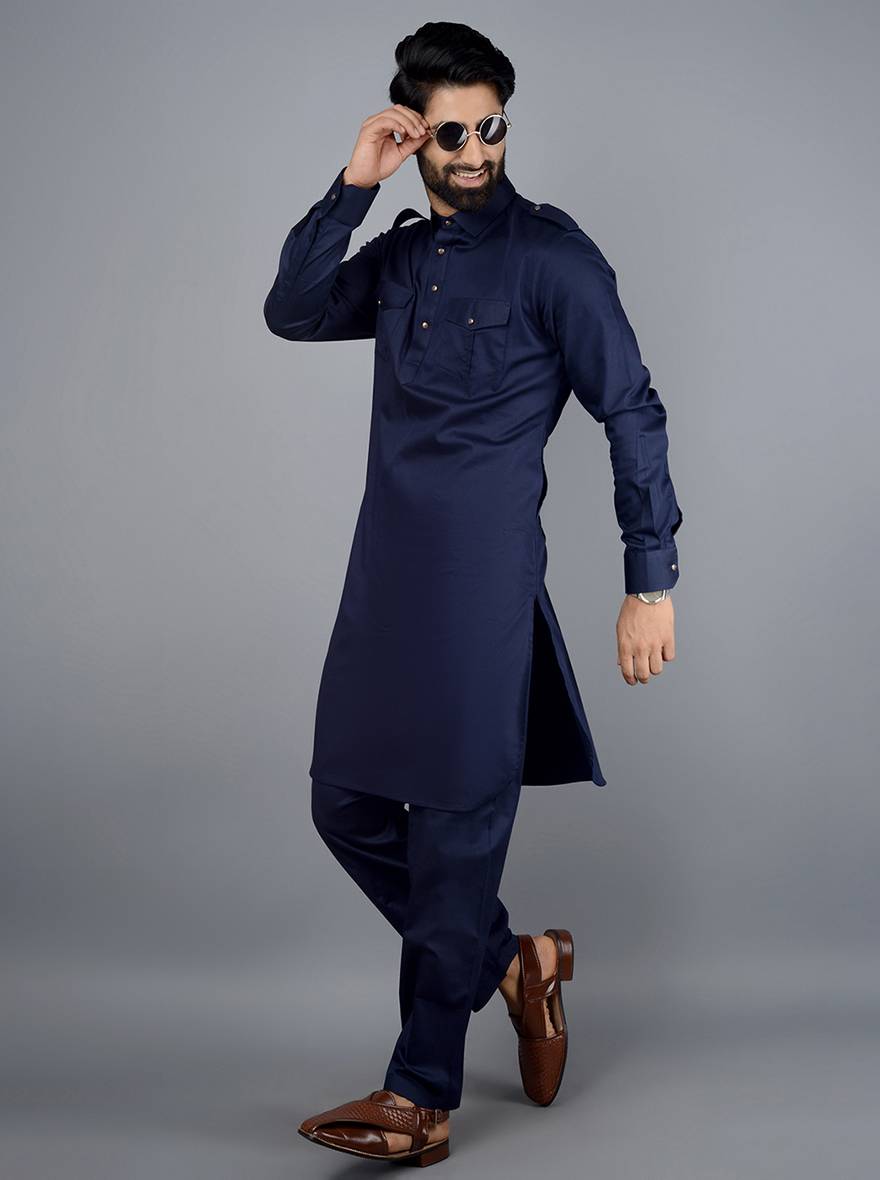 Details: Azania Men's Classic Navy Blue Solid Pathani