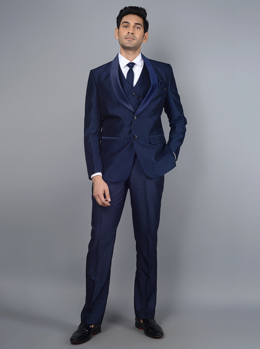 Details: JadeBlue Men's Navy Blue Self Designed Suit