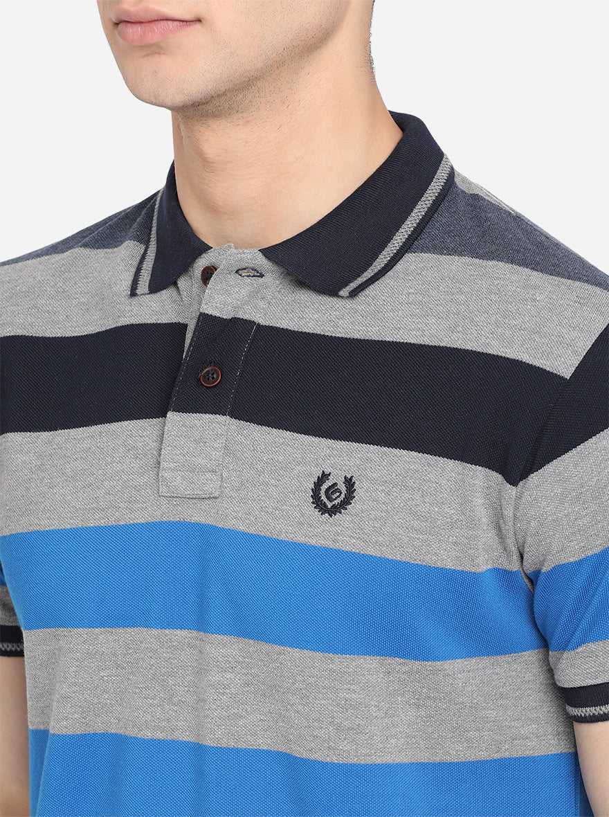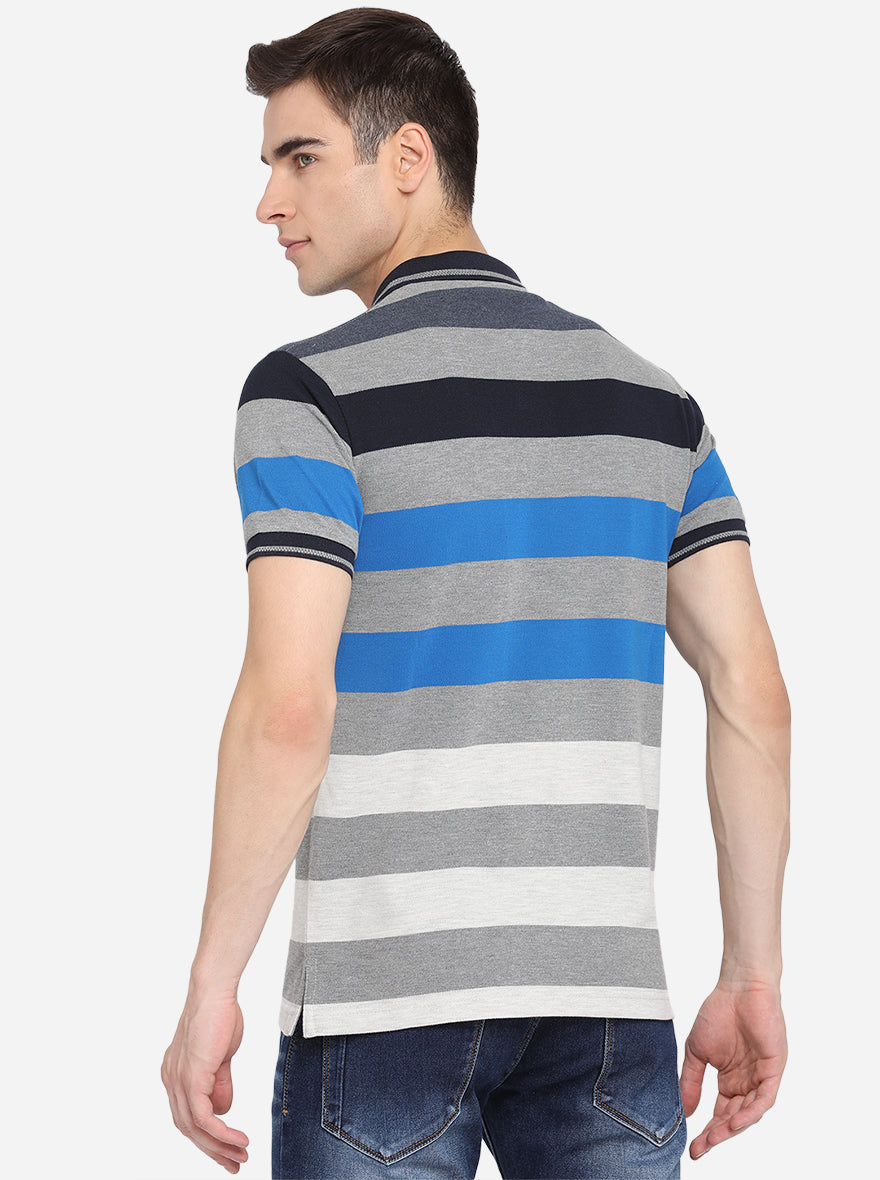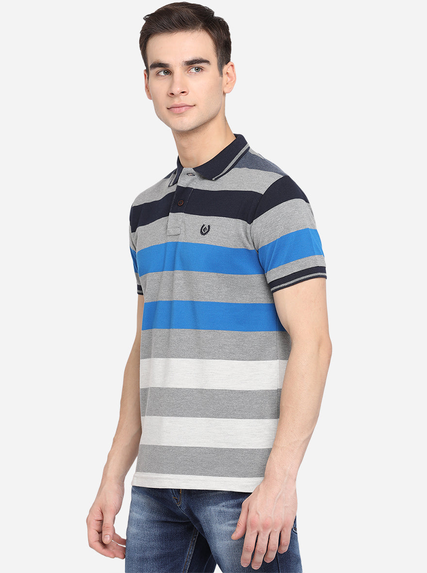 Neutral Grey Striped Slim Fit Polo T-Shirt | Greenfibre