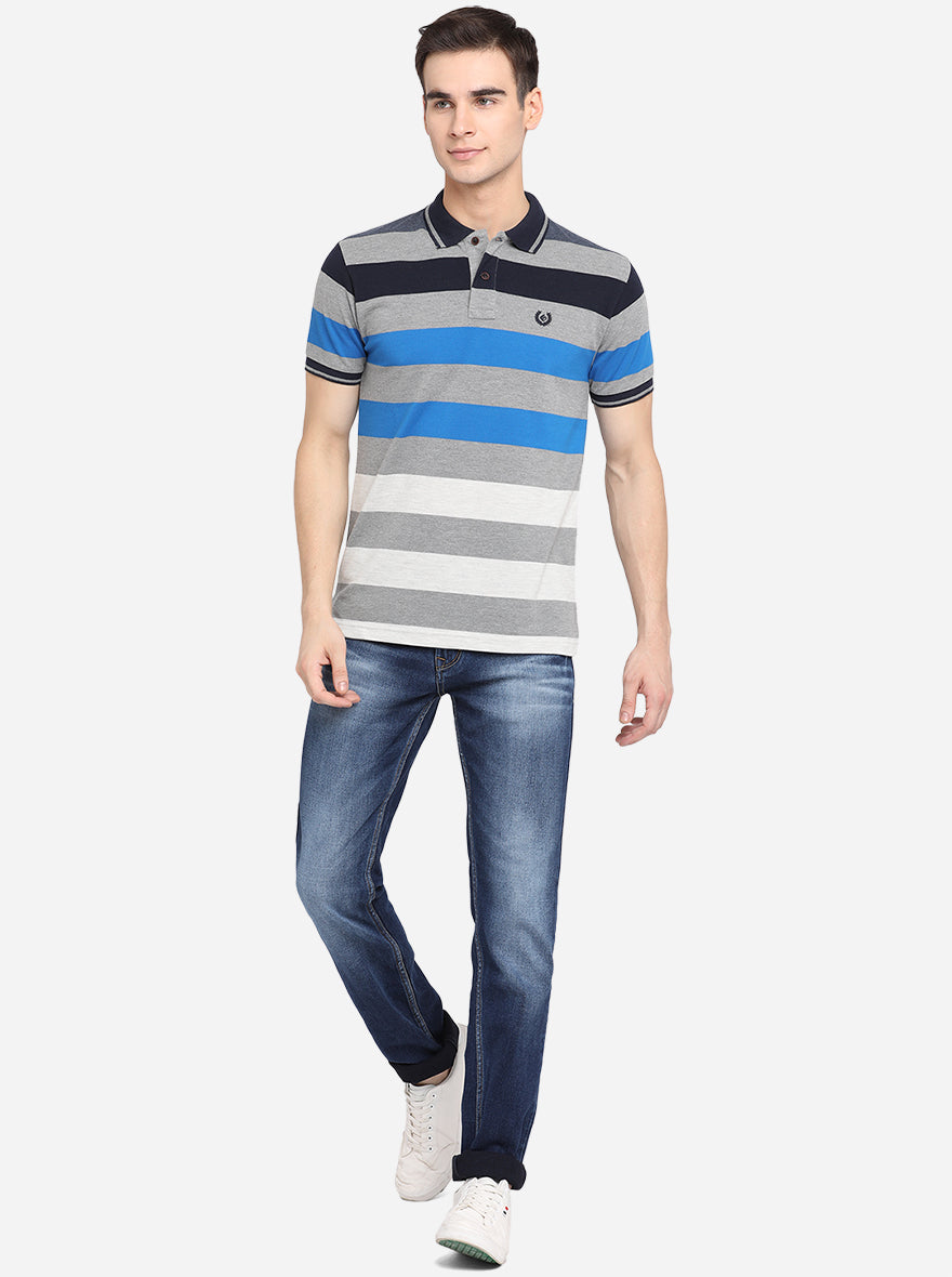 Details: Looking for stylish date outfit? Get your hands on this stunning Neutral Grey Polo T-shirt from the latest collection of JadeBlue Sport. It features a Polo neck, half-sleeves and offers a slim fit. Adorned with a stripe printed pattern, it makes up for a fashionable choice. Crafted with Pure Cotton, it ensures a great comfort and a great breathability during long hours. Perfect for casual wear and weekend wear. Team it with a pair of Blue denim and white sneakers to achieve a cool look.