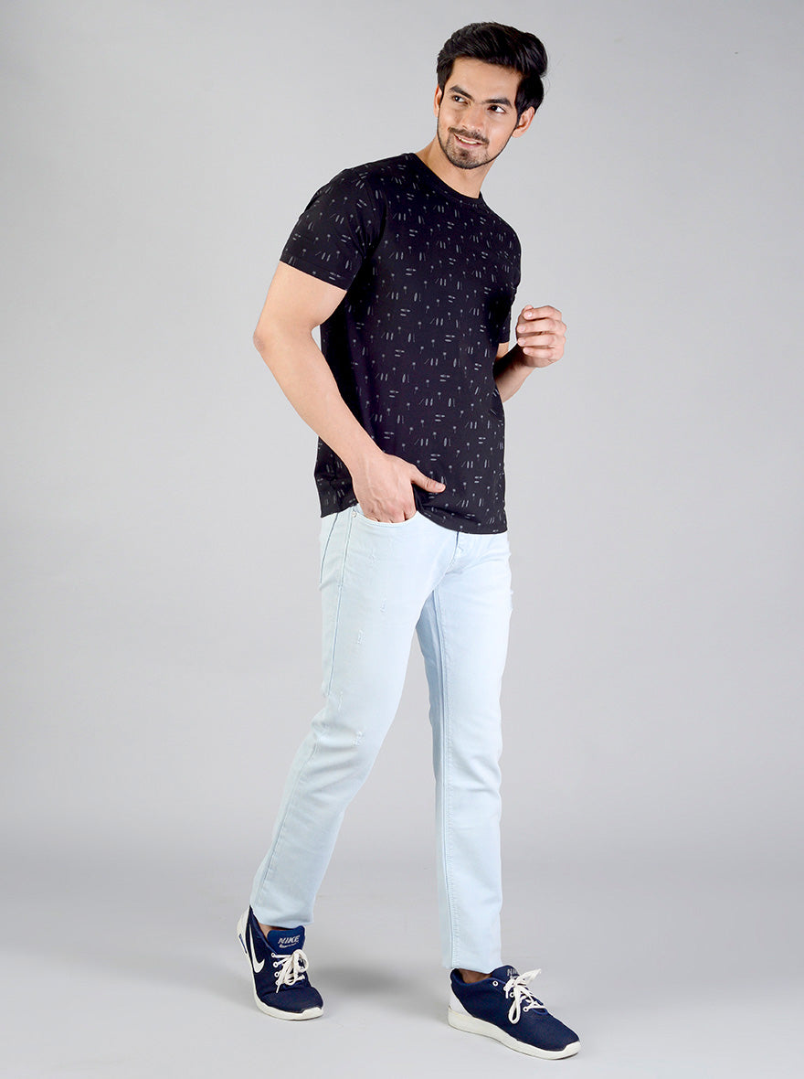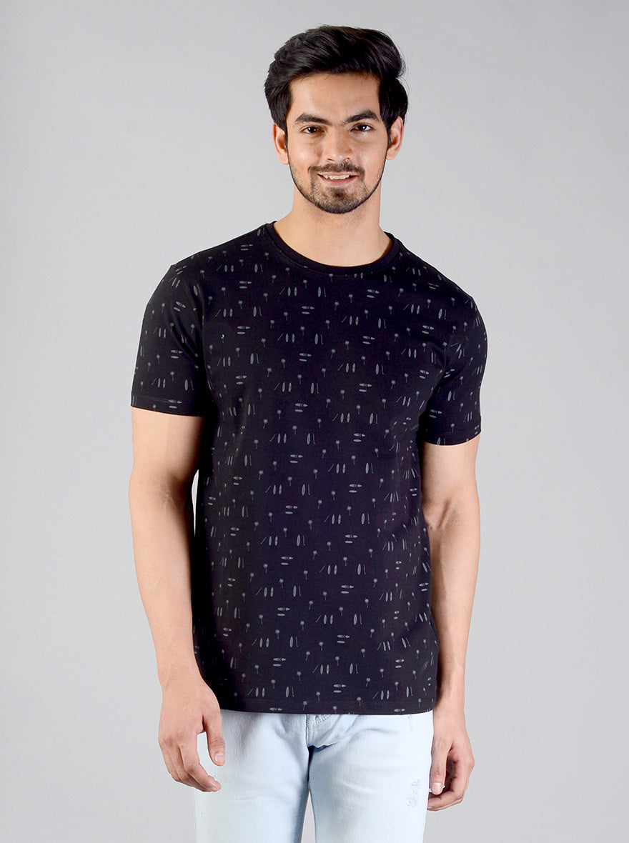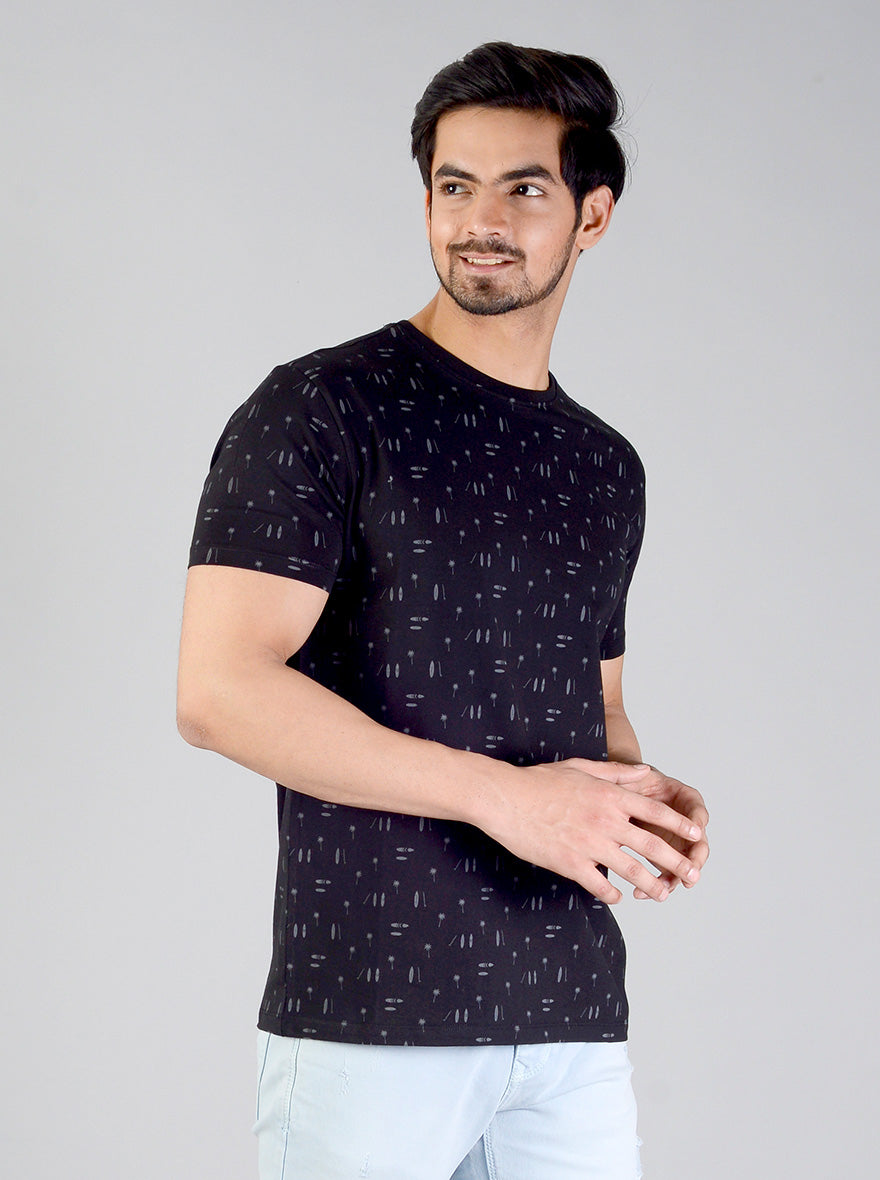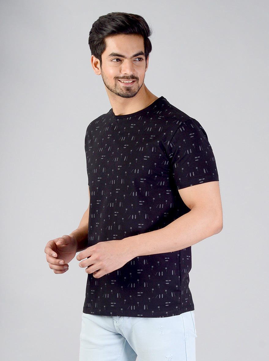 Night Black Printed Slim Fit T-shirt | JadeBlue