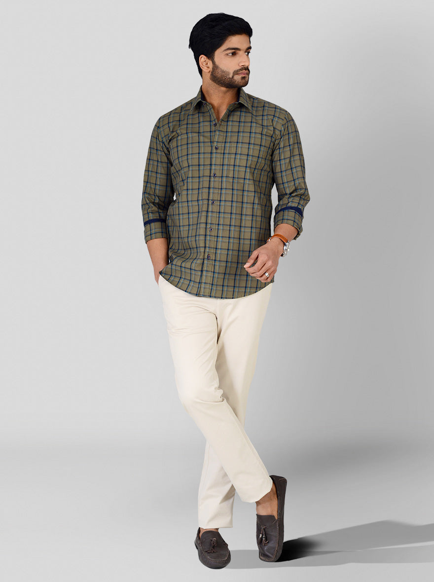 Nile Green Checked Tailored Fit Casual Shirt | JadeBlue