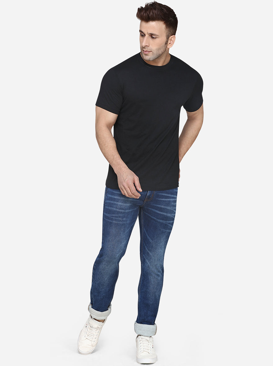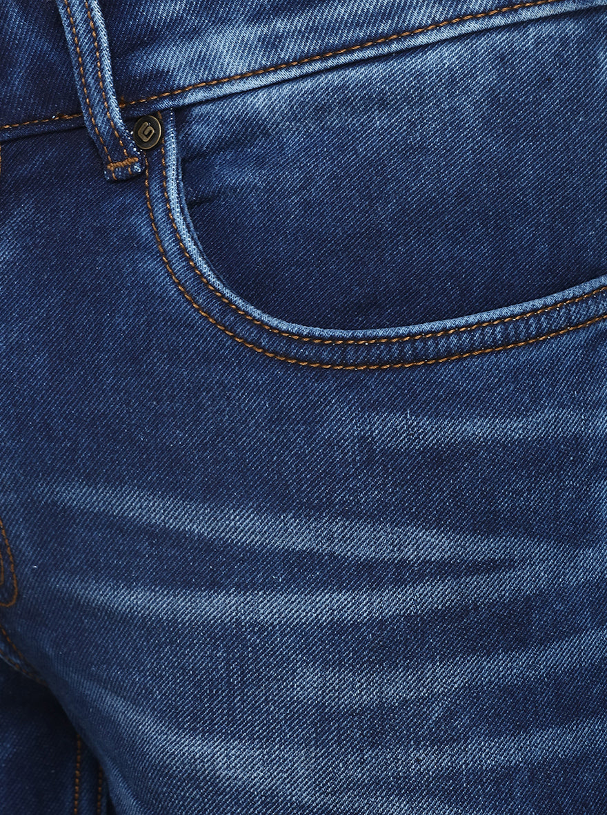 Details: Upgrade your jeans collection by adding this comfy pair of Ocean Blue jeans to it. Made to perfection, this Narrow Fit jeans is tailored with all the essential features.Flaunt different looks each day by donning this pair of Ocean Blue jeans. It has been stitched using high quality of Cotton Stretch fabric, which offers great comfort. The wide range of basic features lend a meaningful touch to this pair. This trendy pair of Washed Narrow Fit Men's jeans is a must-have piece. This pair of Cotton Stretch men's jeans is stitched by incorporating basic features like belt loops, zip fly, single button closure & 4 pockets.