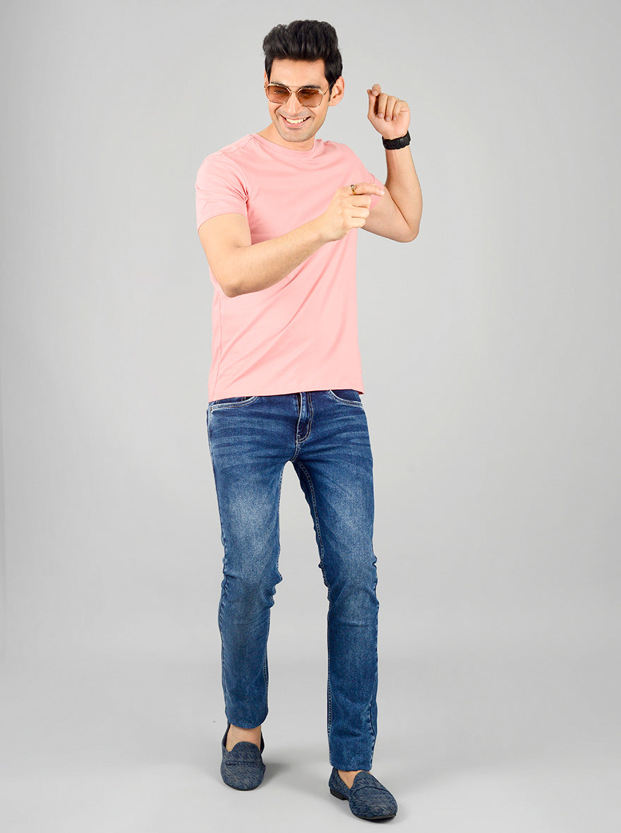 Details: This pair of trendy blue jeans by Greenfibre will let you achieve a captivating casual look. Made from cotton lycra fabric, this pair of narrow fit jeans features belt loops, single button closure, zip fly and 4 pockets.