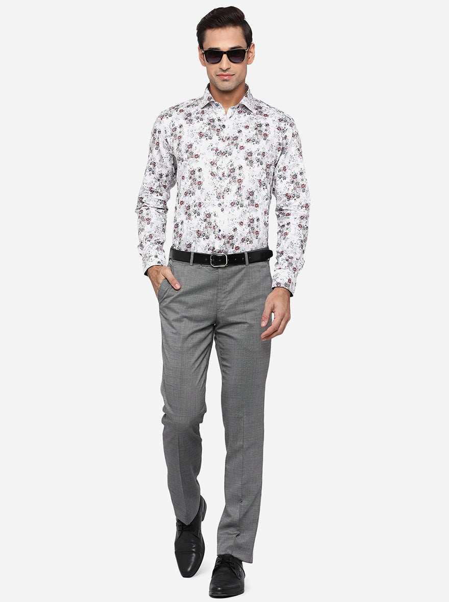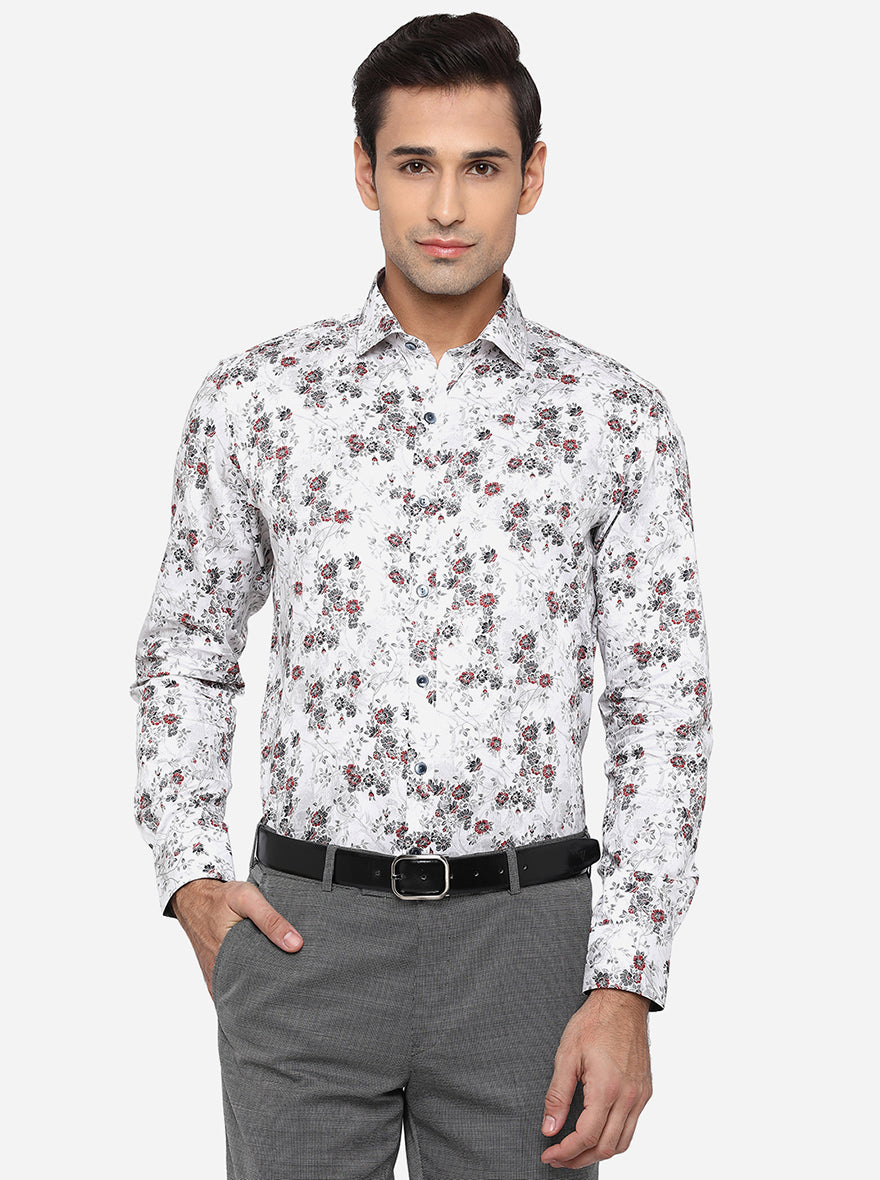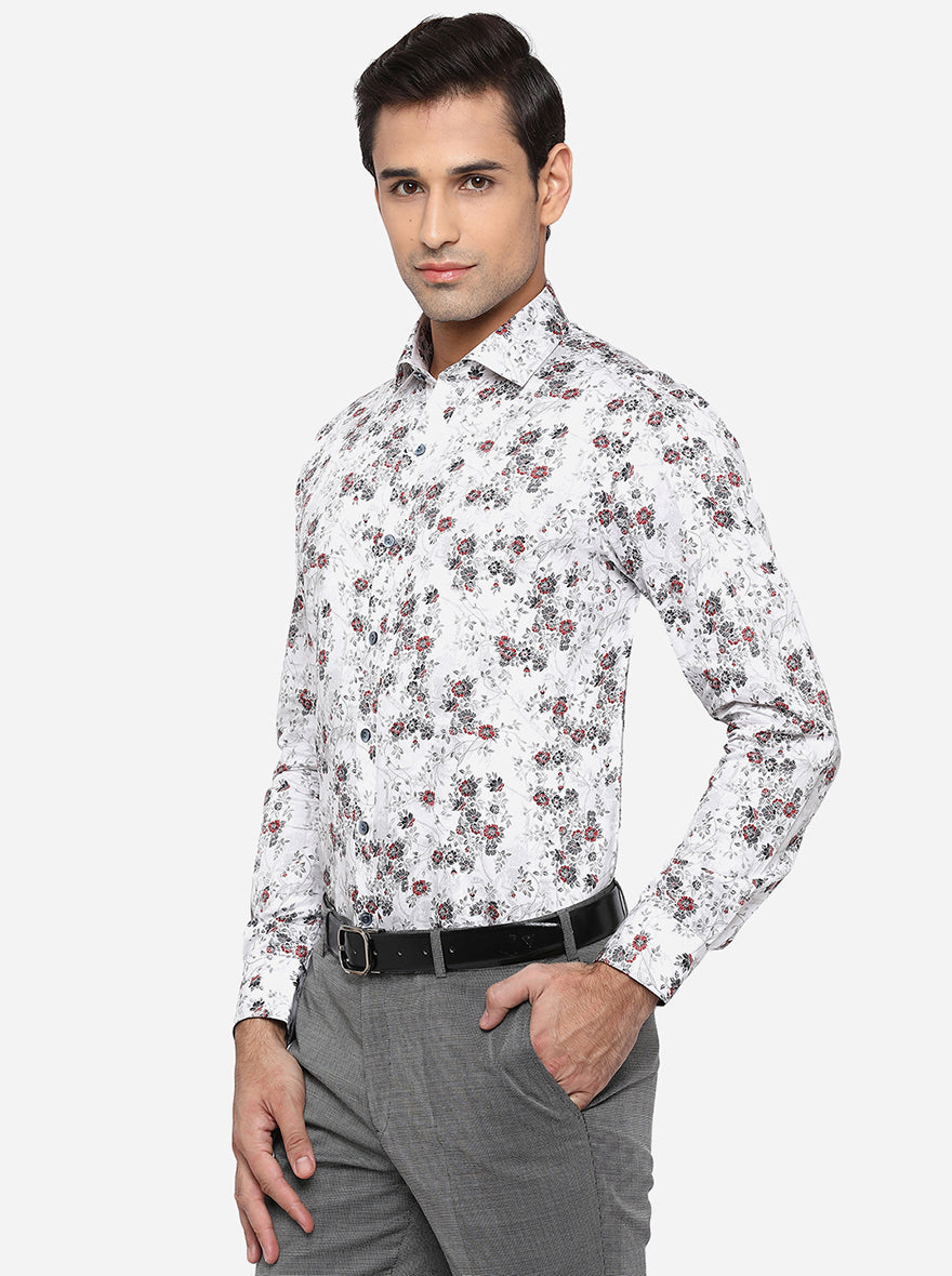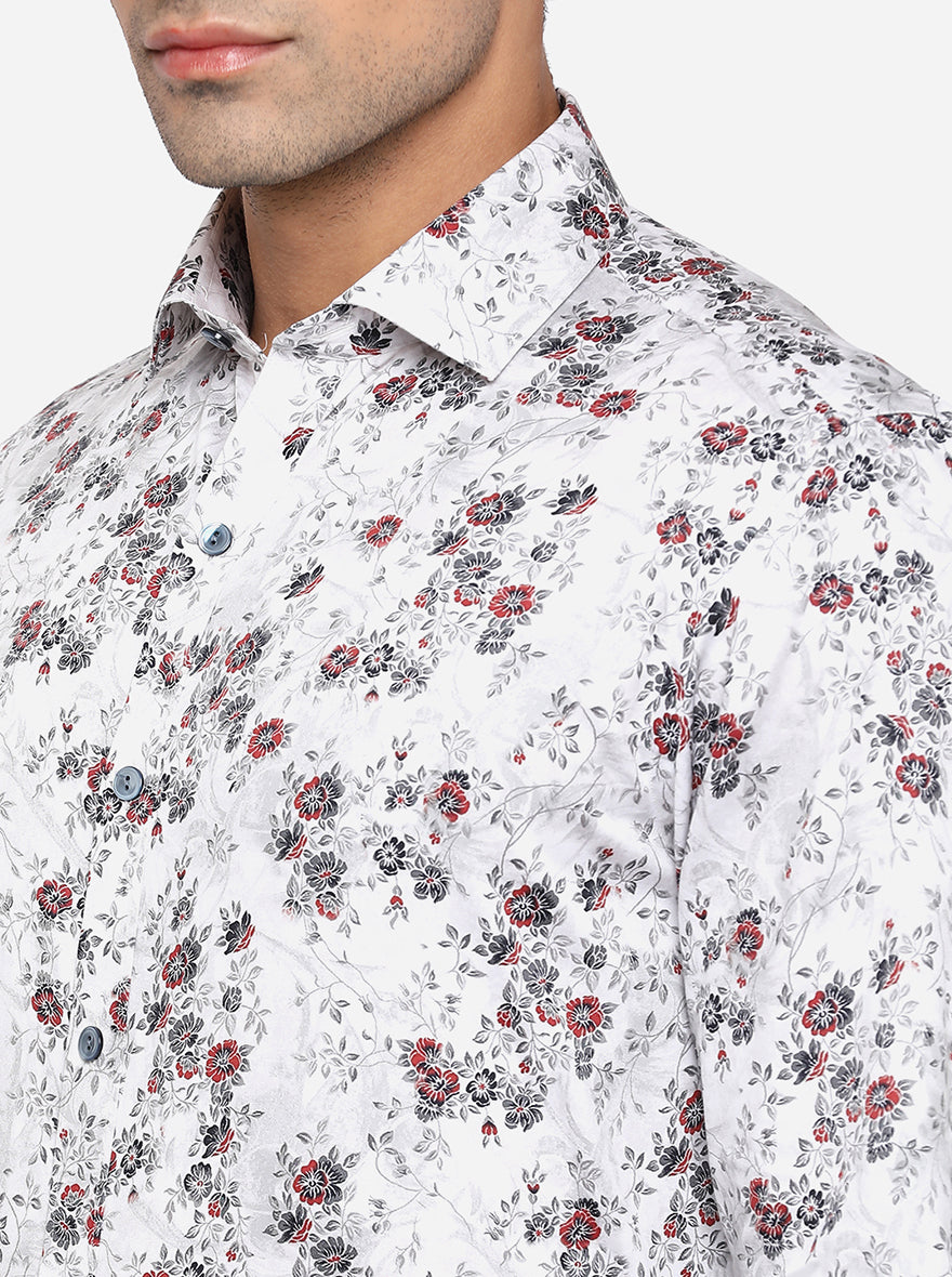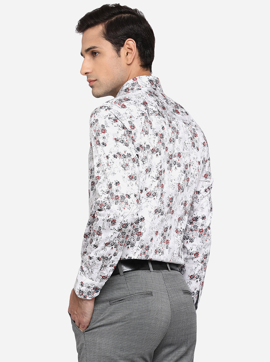 Off-White & Red Printed Slim Fit Party Wear Shirt | Wyre