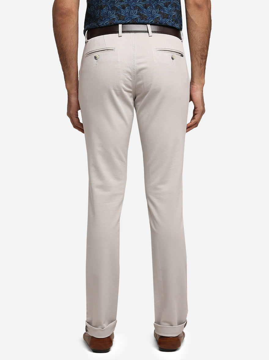 Off-White Solid Super Slim Fit Casual Trouser | Greenfibre