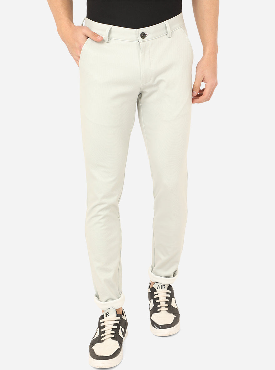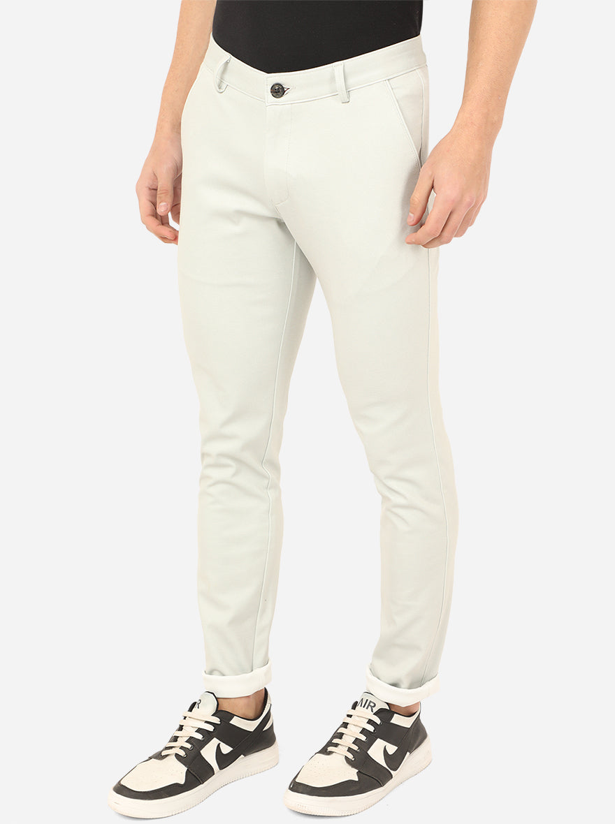 Off-White Solid Venice Fit Casual Trouser | JadeBlue