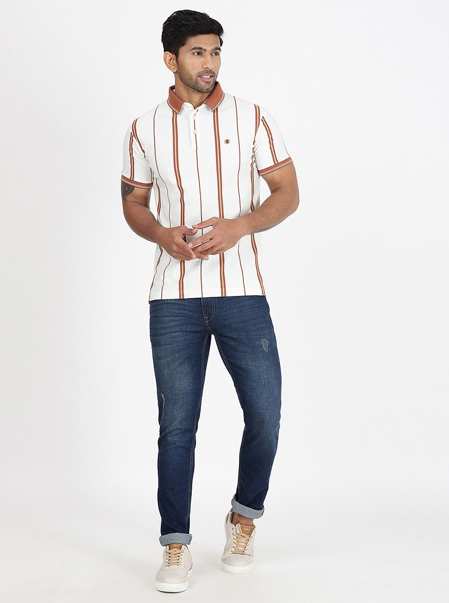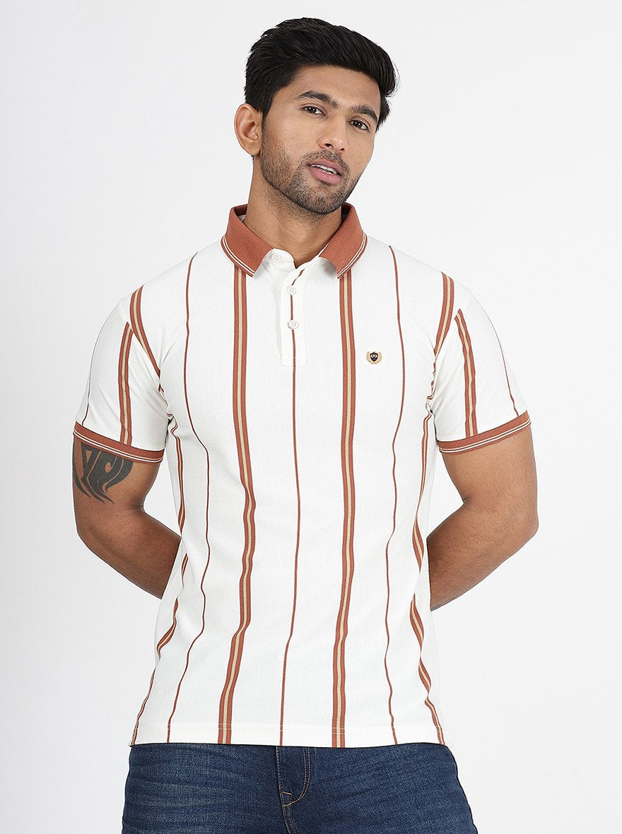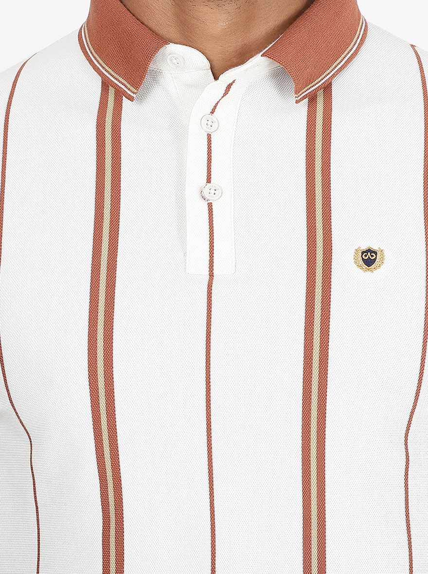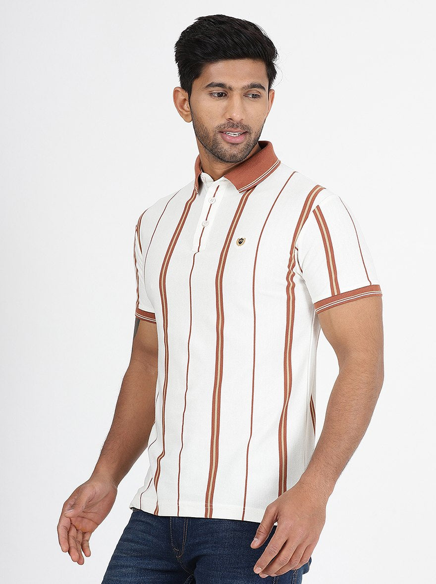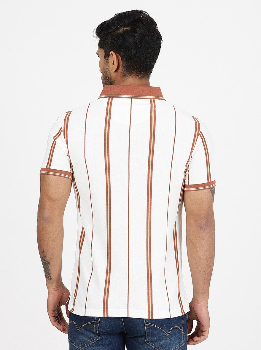 Off White Striped Slim Fit Polo T-Shirt | JadeBlue