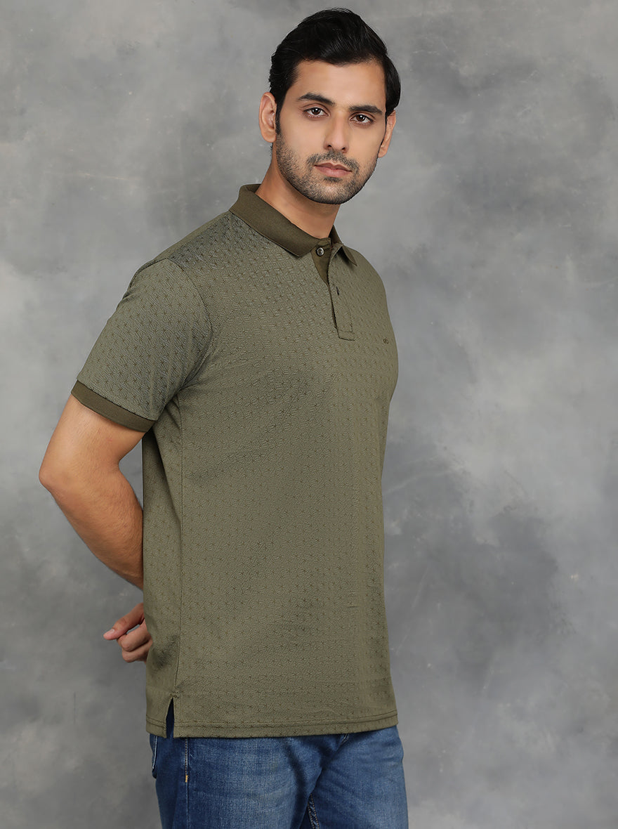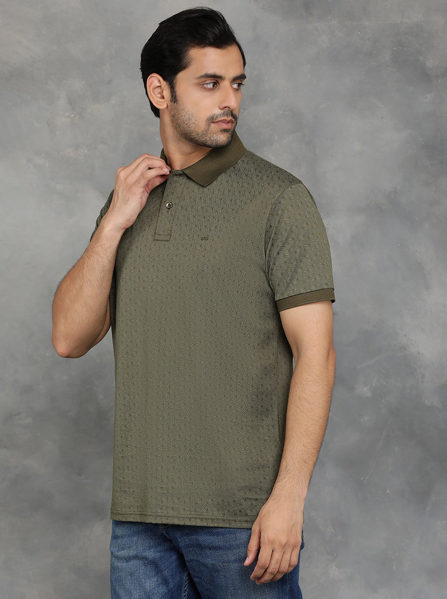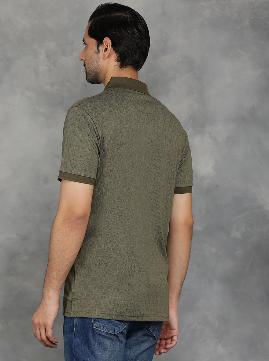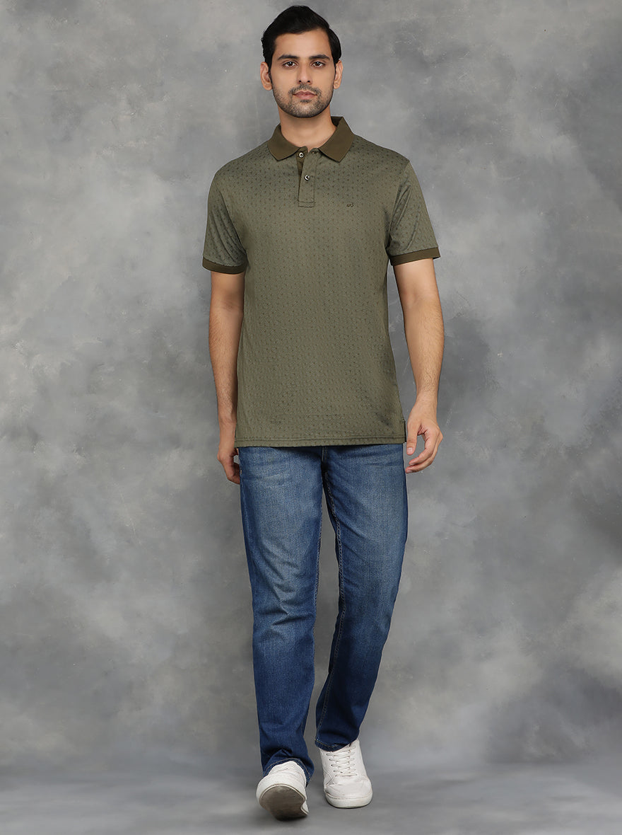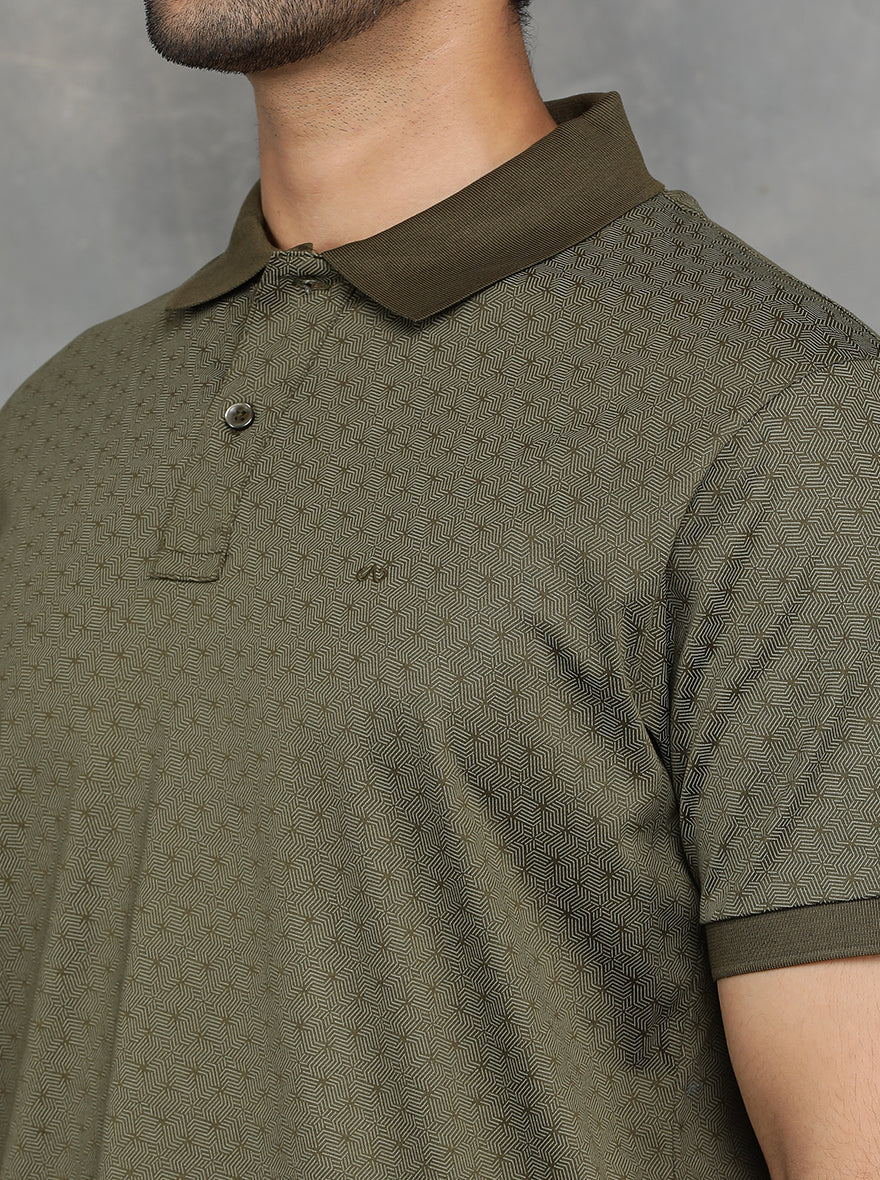 Olive Green Printed Regular Fit Polo T-Shirt | JadeBlue