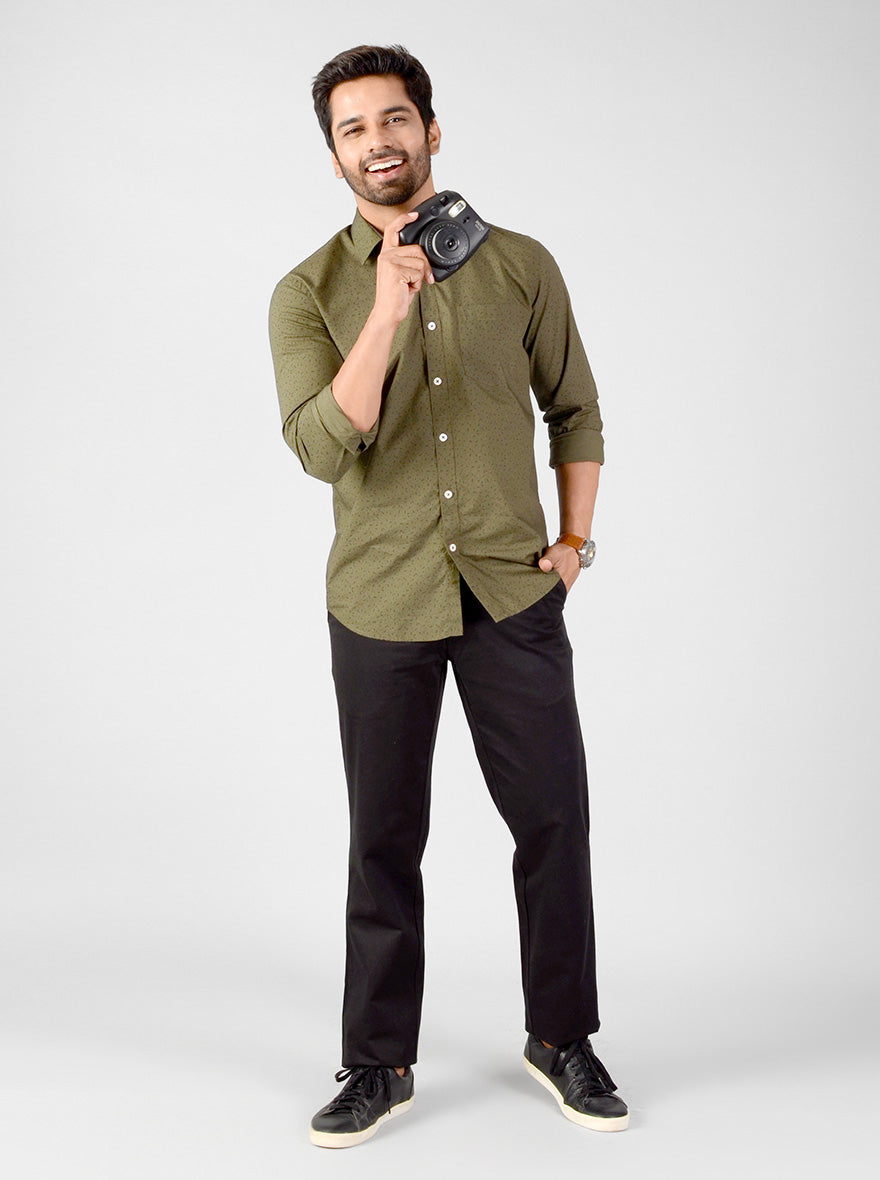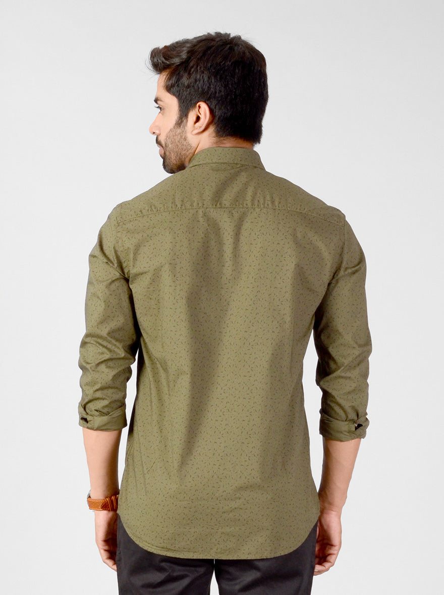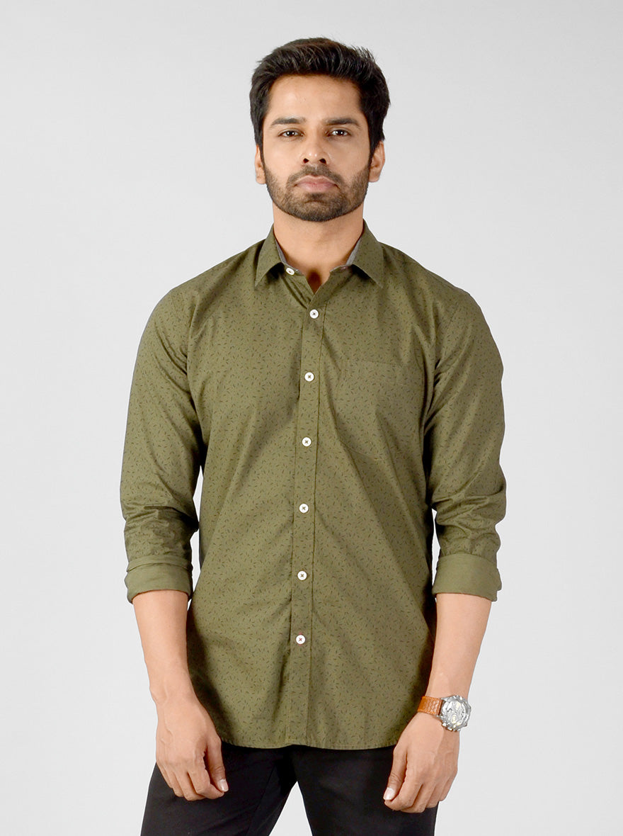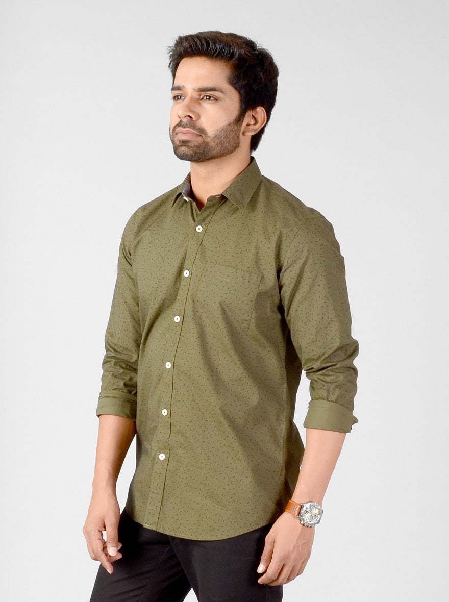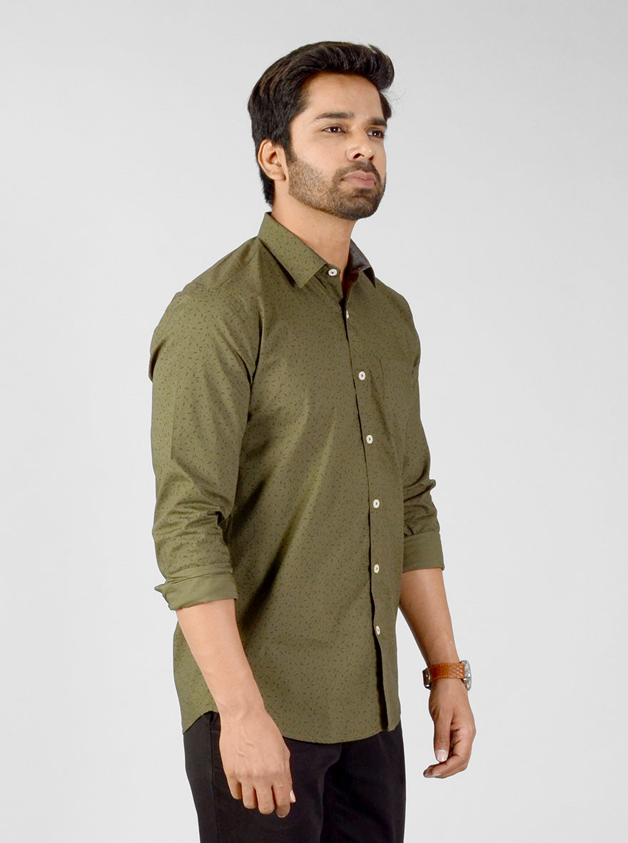 Olive Green Printed Smart Fit Casual Shirt | Greenfibre