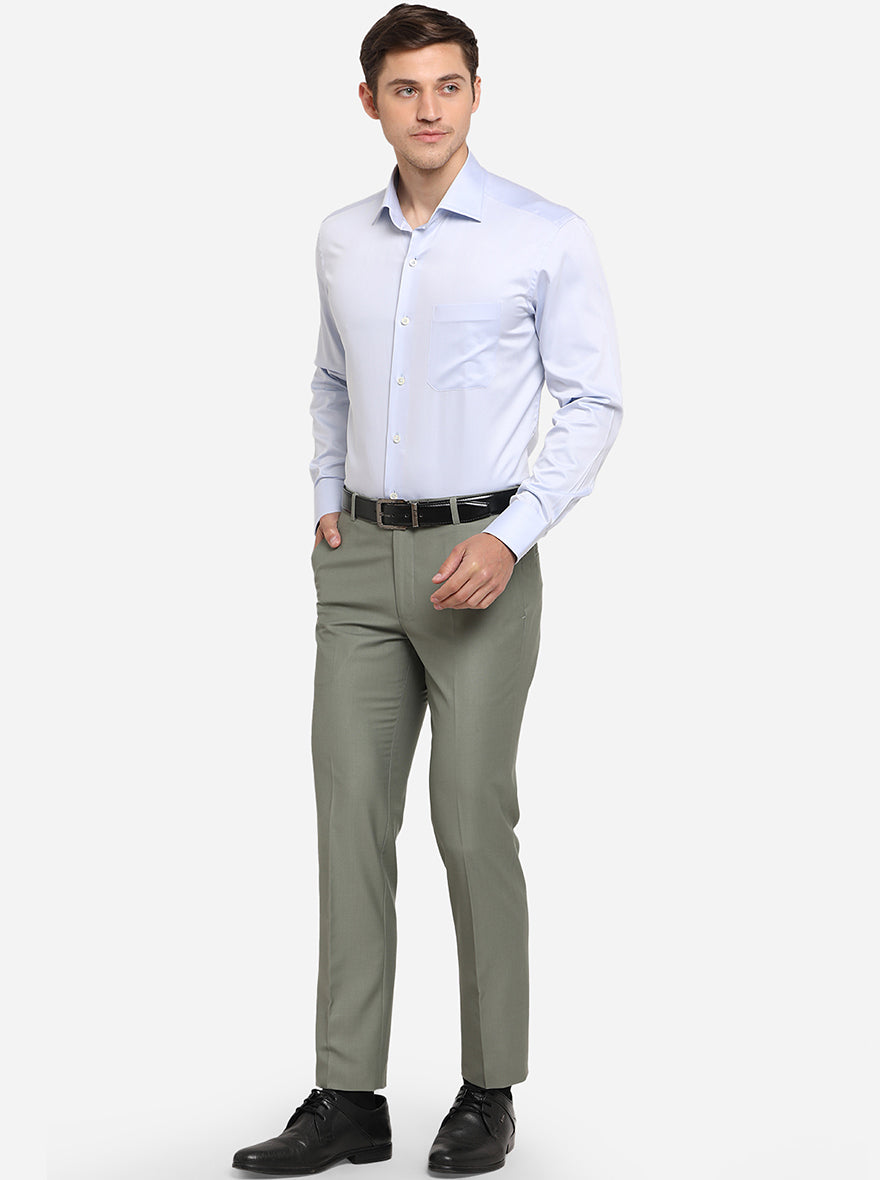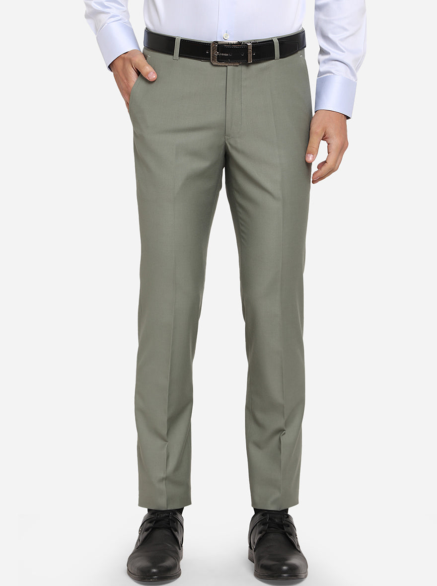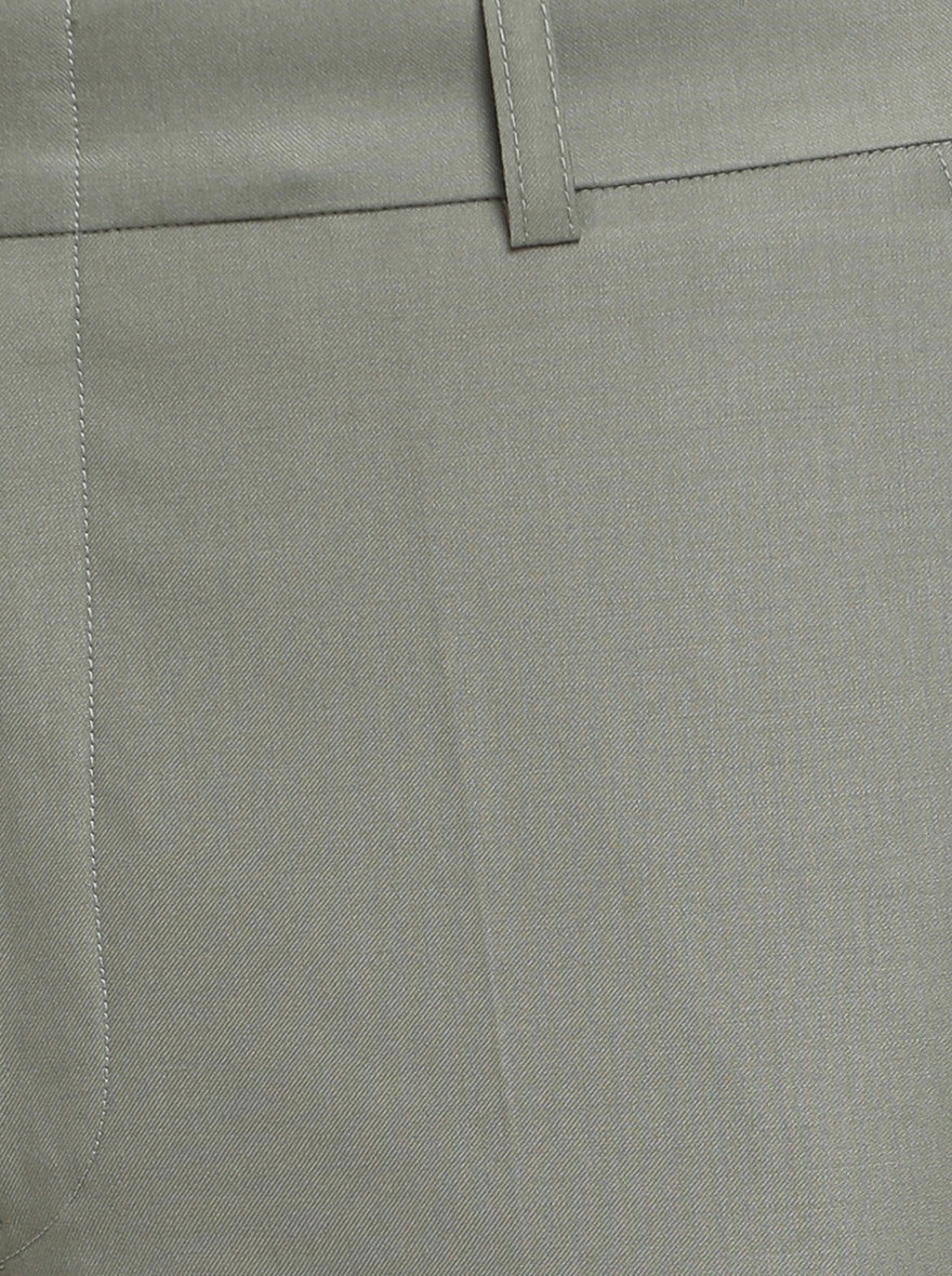 Olive Green Self Design Slim Fit Formal Trouser | Metal