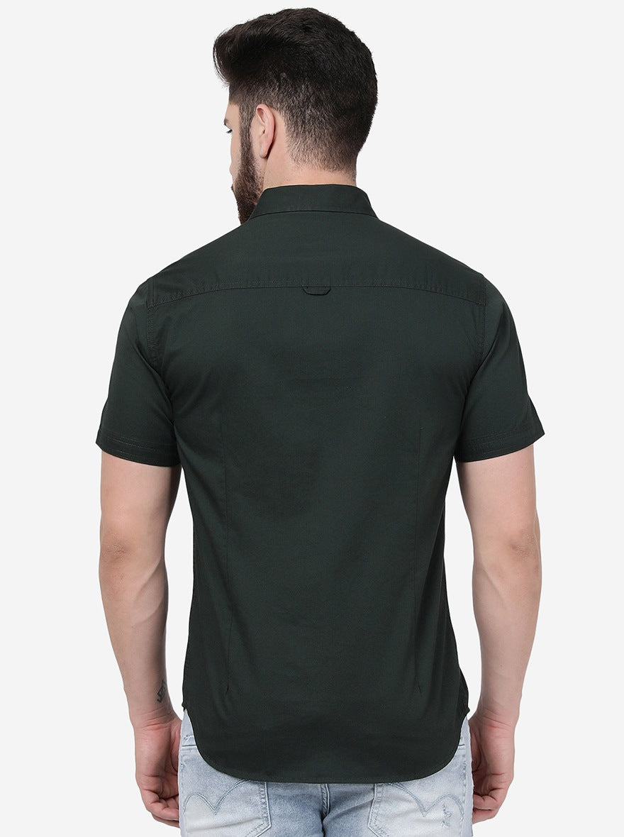 Olive Green Solid Slim Fit Casual Shirt | Greenfibre