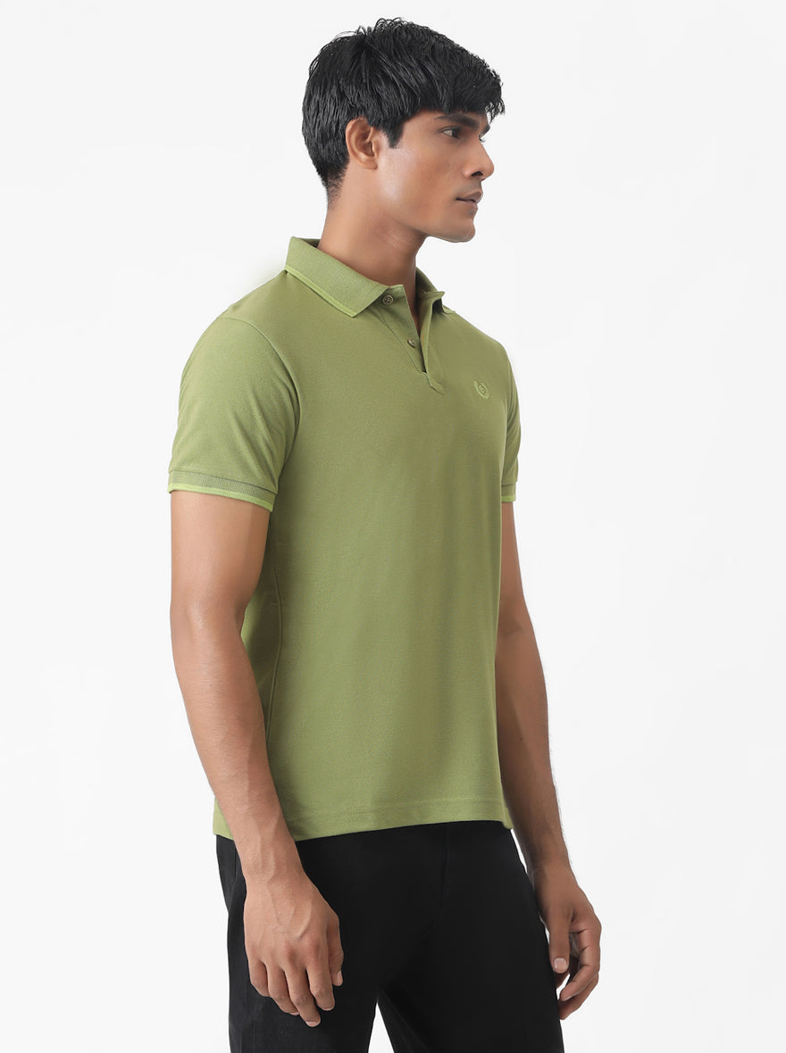 Olive Green Solid Slim Fit Polo T-Shirt | Greenfibre