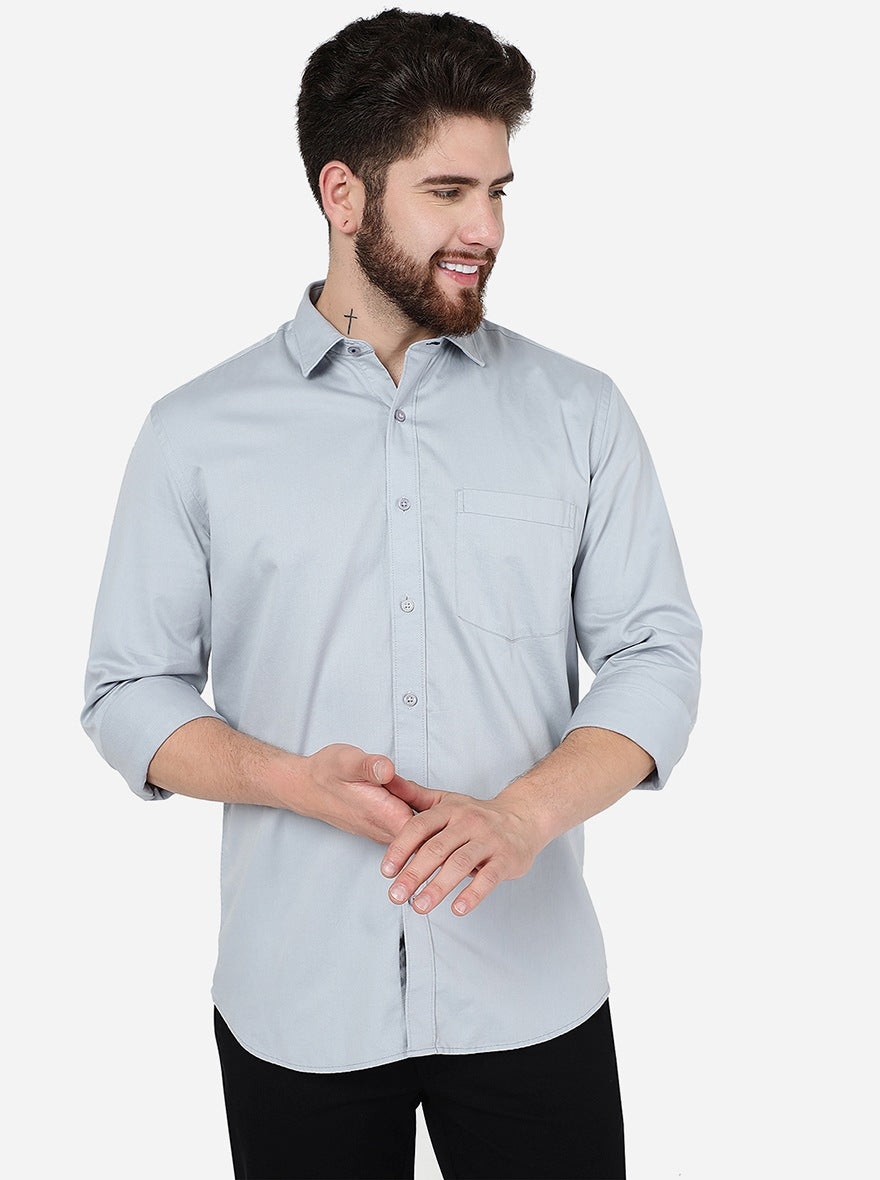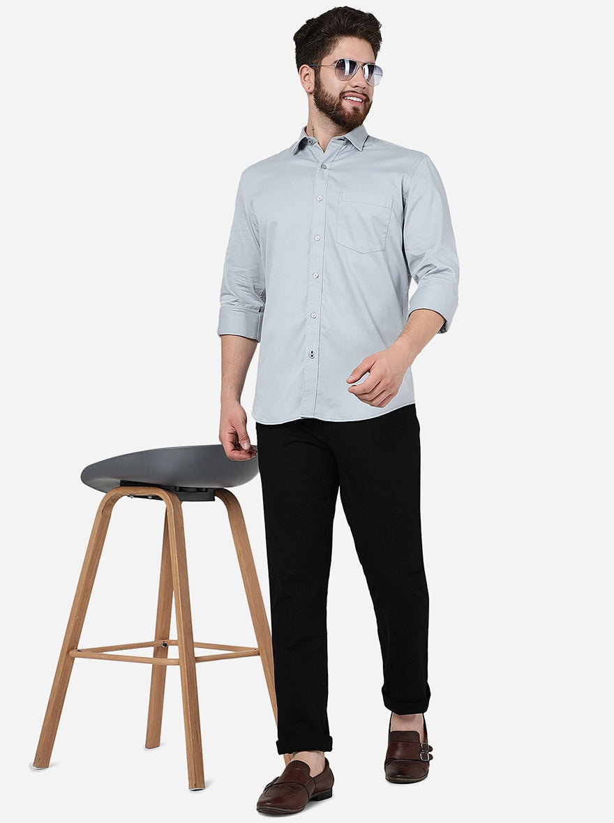 Limestone Grey Solid Slim Fit Semi Casual Shirt | JadeBlue