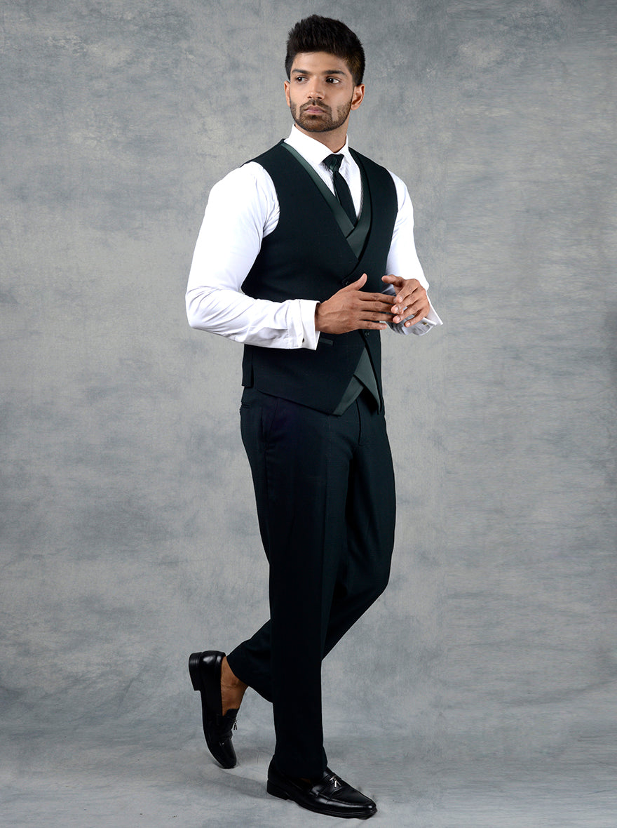 Details: Get yourself the smart gentleman look by dressing up in this Olive Green five piece Suit from the latest collection of JadeBlue. It includes a white shirt, waistcoat, jacket, pant and a matching tie along with it. It is adorned with a self-textured pattern, making up for a versatile choice. It is perfect for formal events and wedding functions. Crafted with premium quality Terry Rayon, it assures a great fit and a great comfort all day long. Tag it with a pair of Black oxford shoes to complete the attire like a pro.