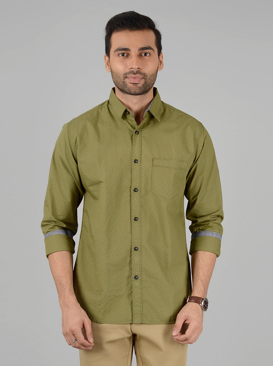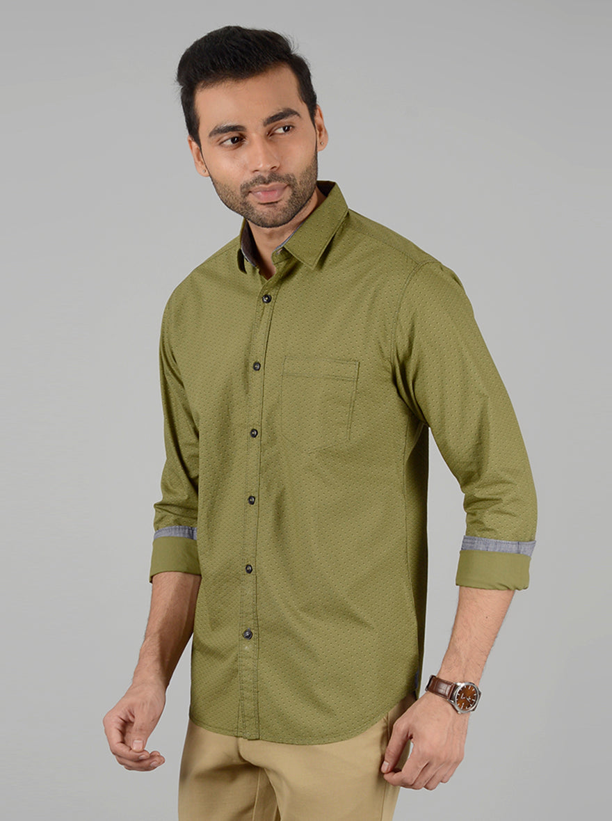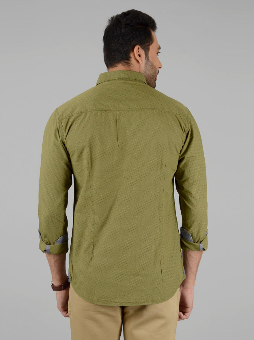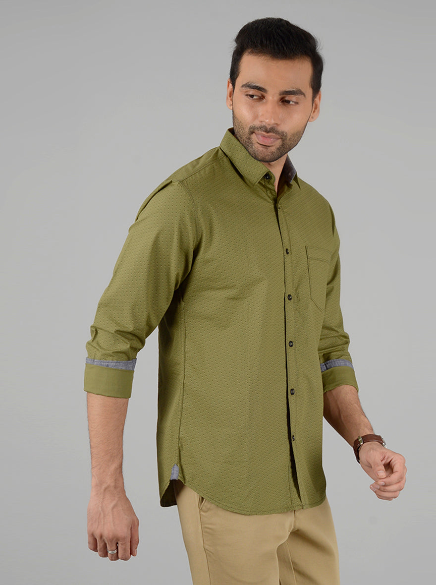 Olive Printed Slim Fit Casual Shirt | Greenfibre