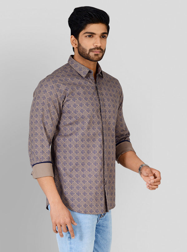 Opal Grey Printed Slim Fit Casual Shirt | JadeBlue
